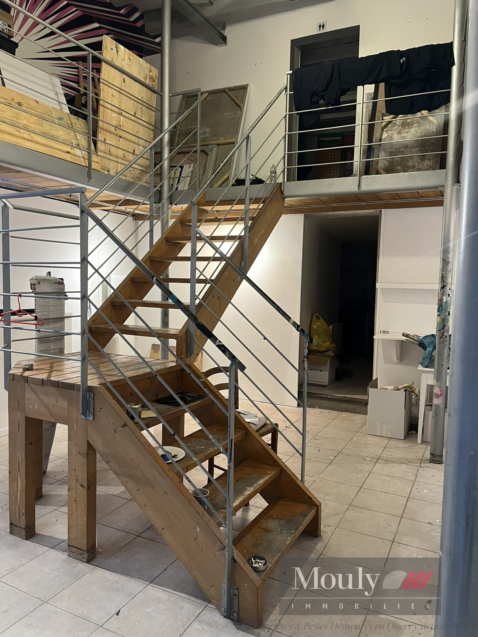 À l’étage, une mezzanine avec coursives, un espace bureau et une chambre accompagnée de sa salle d’eau composent un ensemble fonctionnel et lumineux.