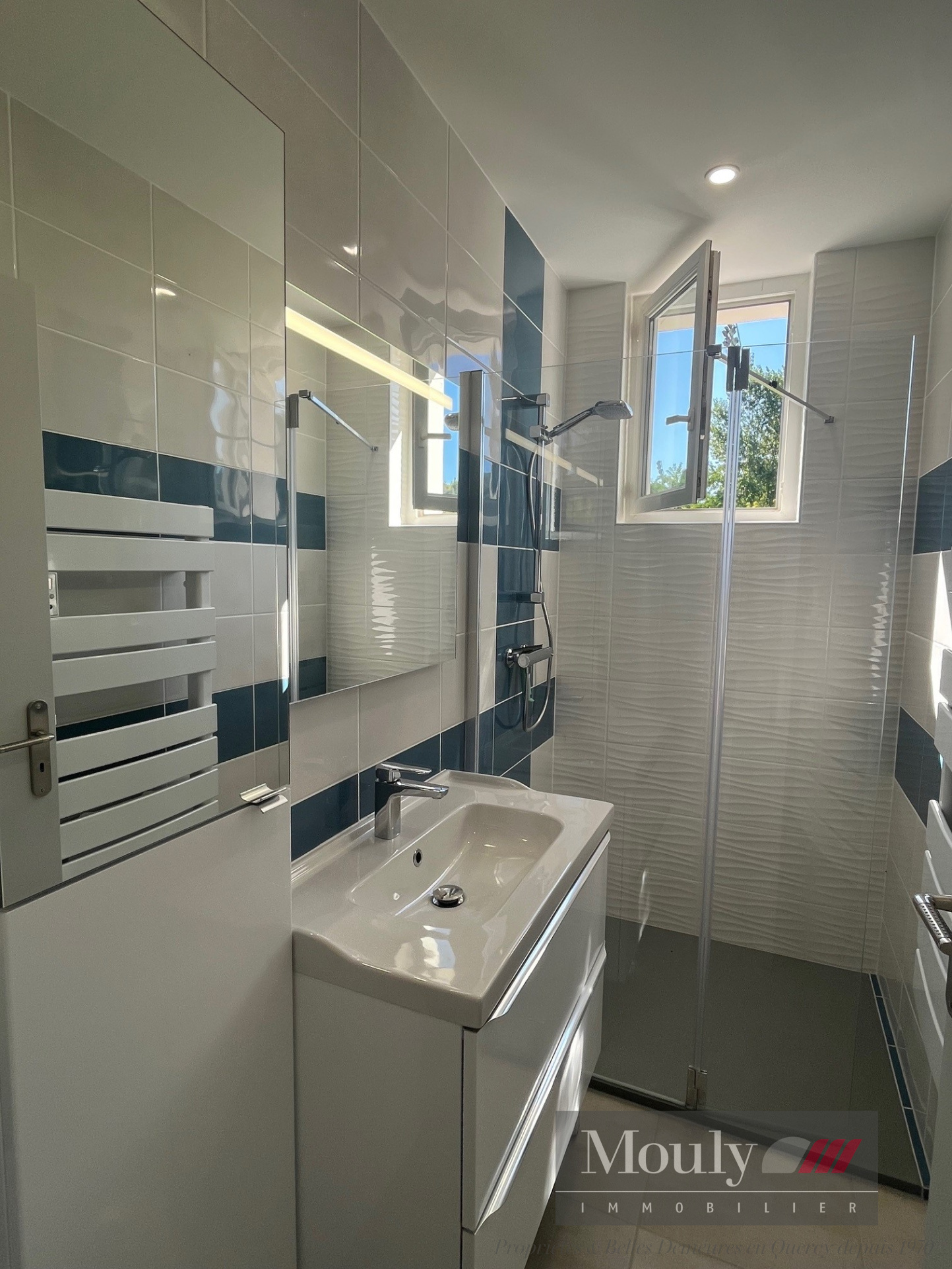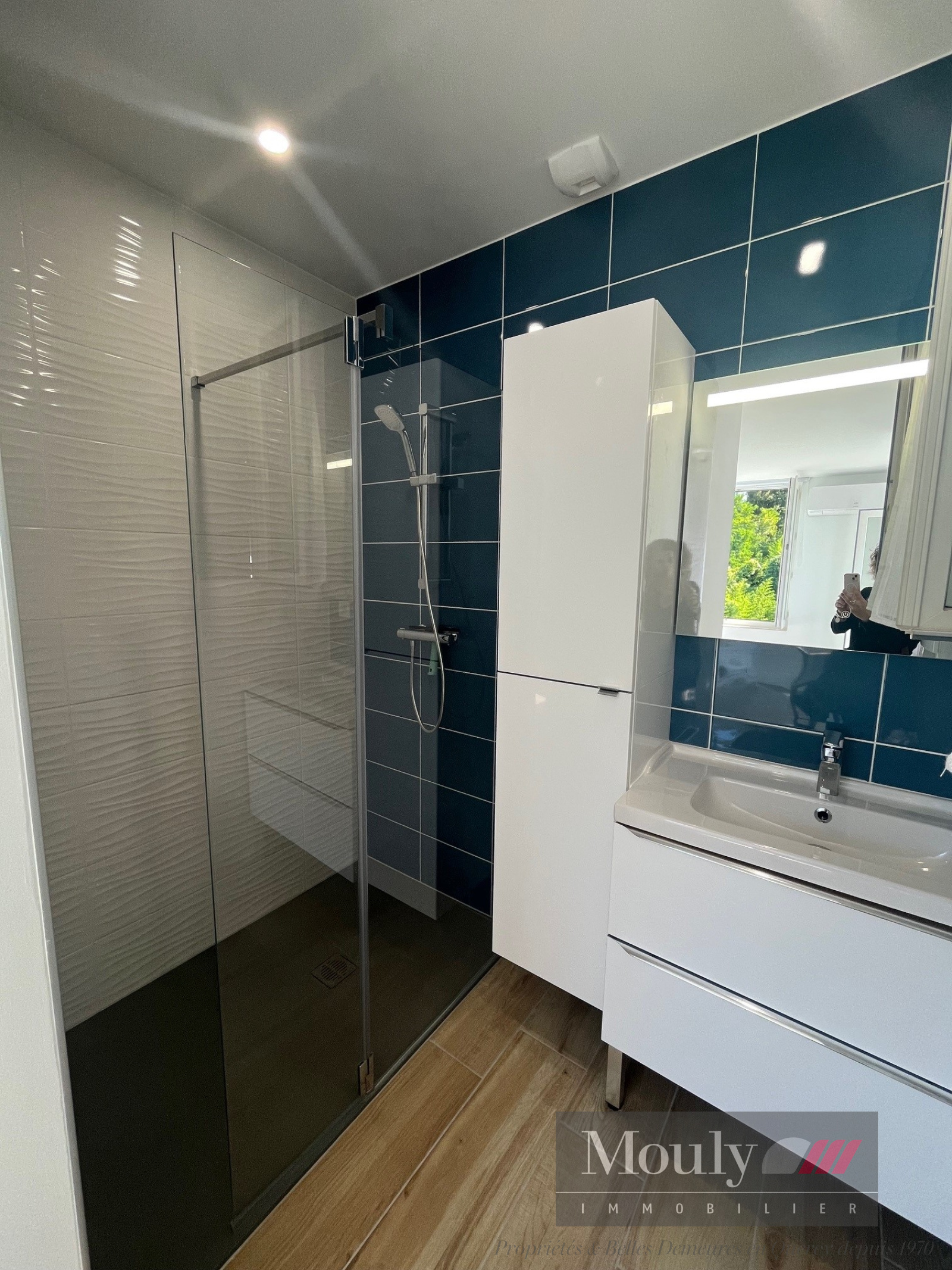 Entrée sur salon/.salle à manger avec cuisine ouverte entièrement équipée; 1 wc séparé, 1 chambre, 1 chambre avec balcon et salle d'eau, 1 salle d'eau.
