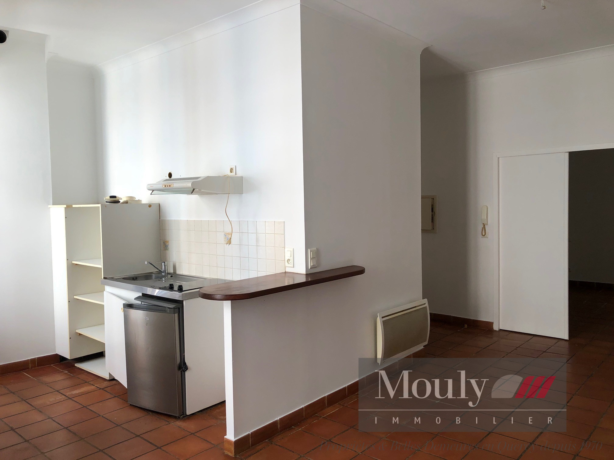 Pièce principale avec coin cuisine ( plaque, hotte, frigo) et balcon -1 chambre avec placard -Salle d'eau avec wc.