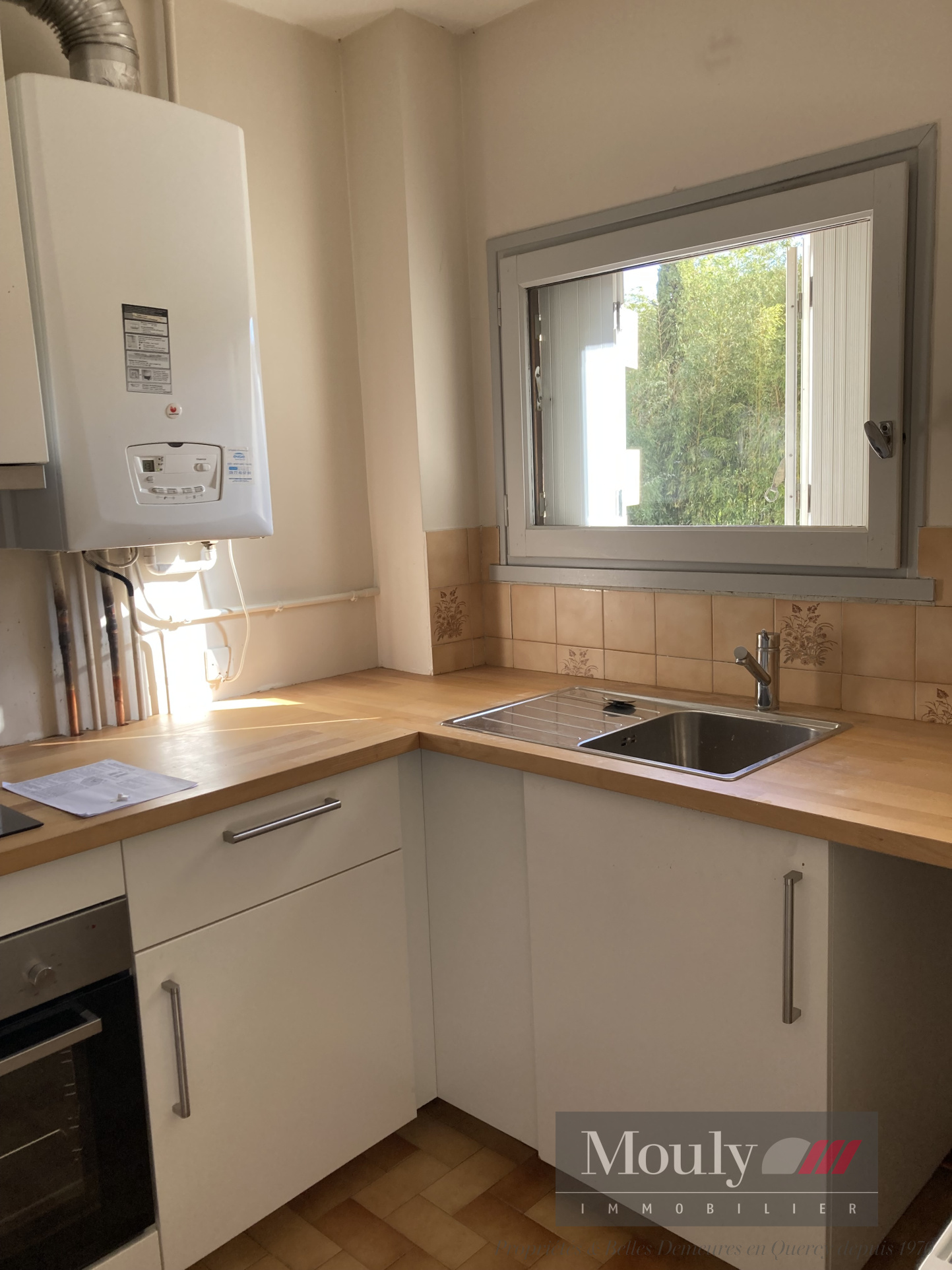 Appartement situé en 1er étage d'une résidence du centre-ville avec ascenseur, composé d'une entrée avec placard, une chambre, un séjour, une cuisine séparée aménagée et équipée d'un réfrigérateur, une plaque de cuisson vitrocéramique deux feux, un four, une hotte, éléments hauts et bas), une salle de bain avec wc.