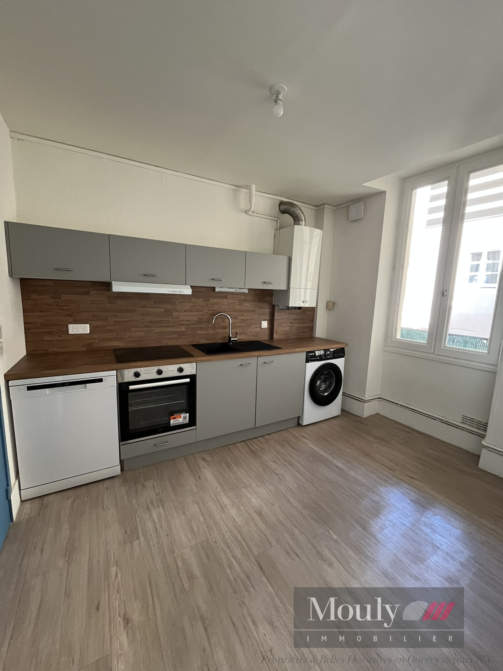 Appartement situé au 2ème étage d’un immeuble calme en plein centre-ville, composé d’un couloir à l’entrée desservant une cuisine neuve et louée équipée (plaque de cuisson, four, lave-linge et lave-vaisselle), un coin rangement ainsi qu’un séjour lumineux.