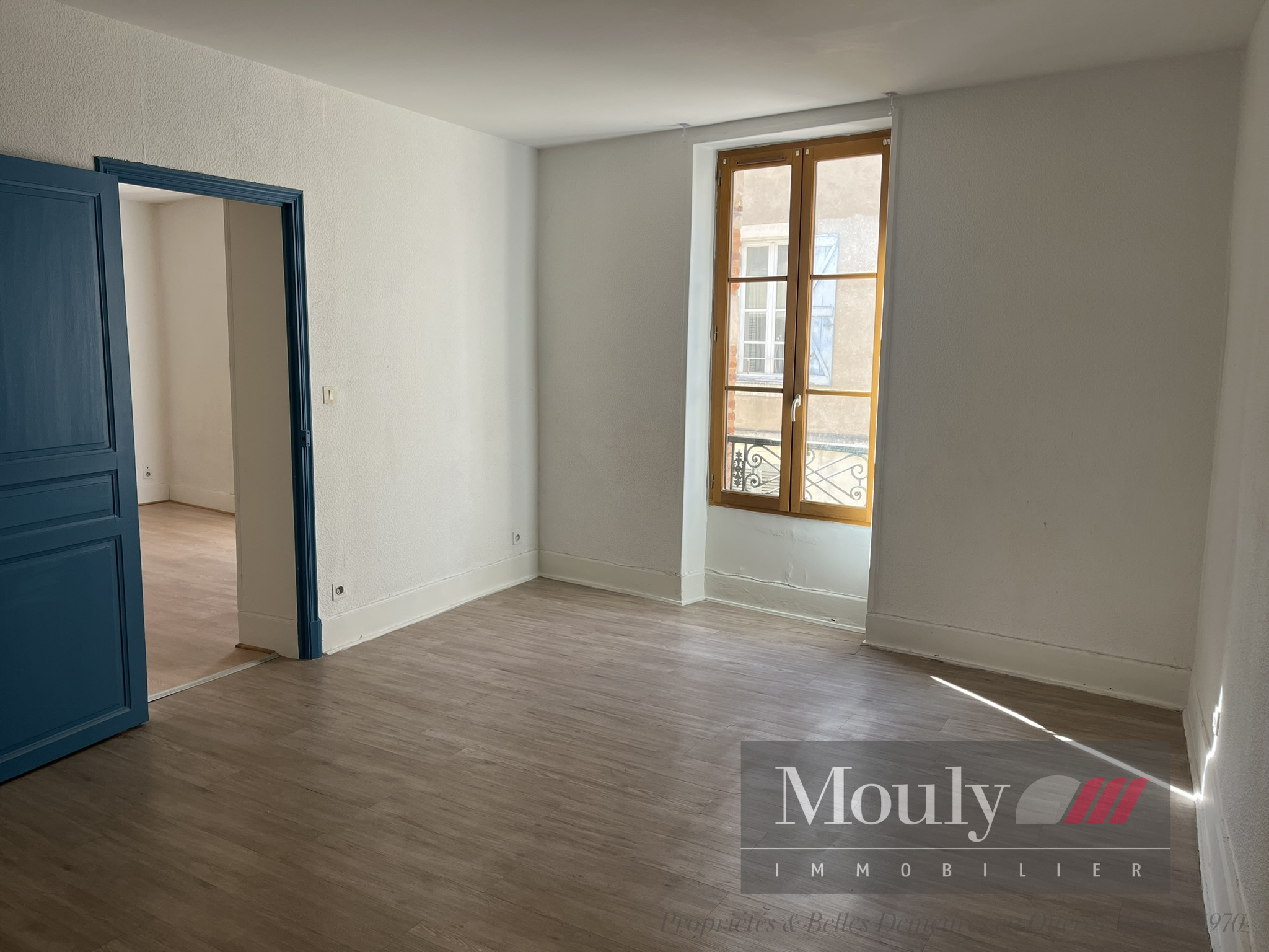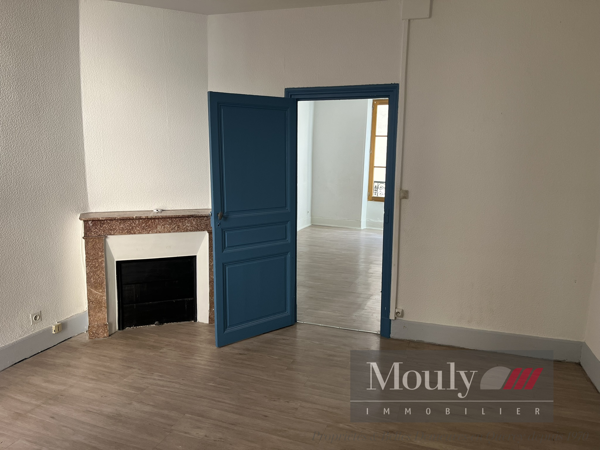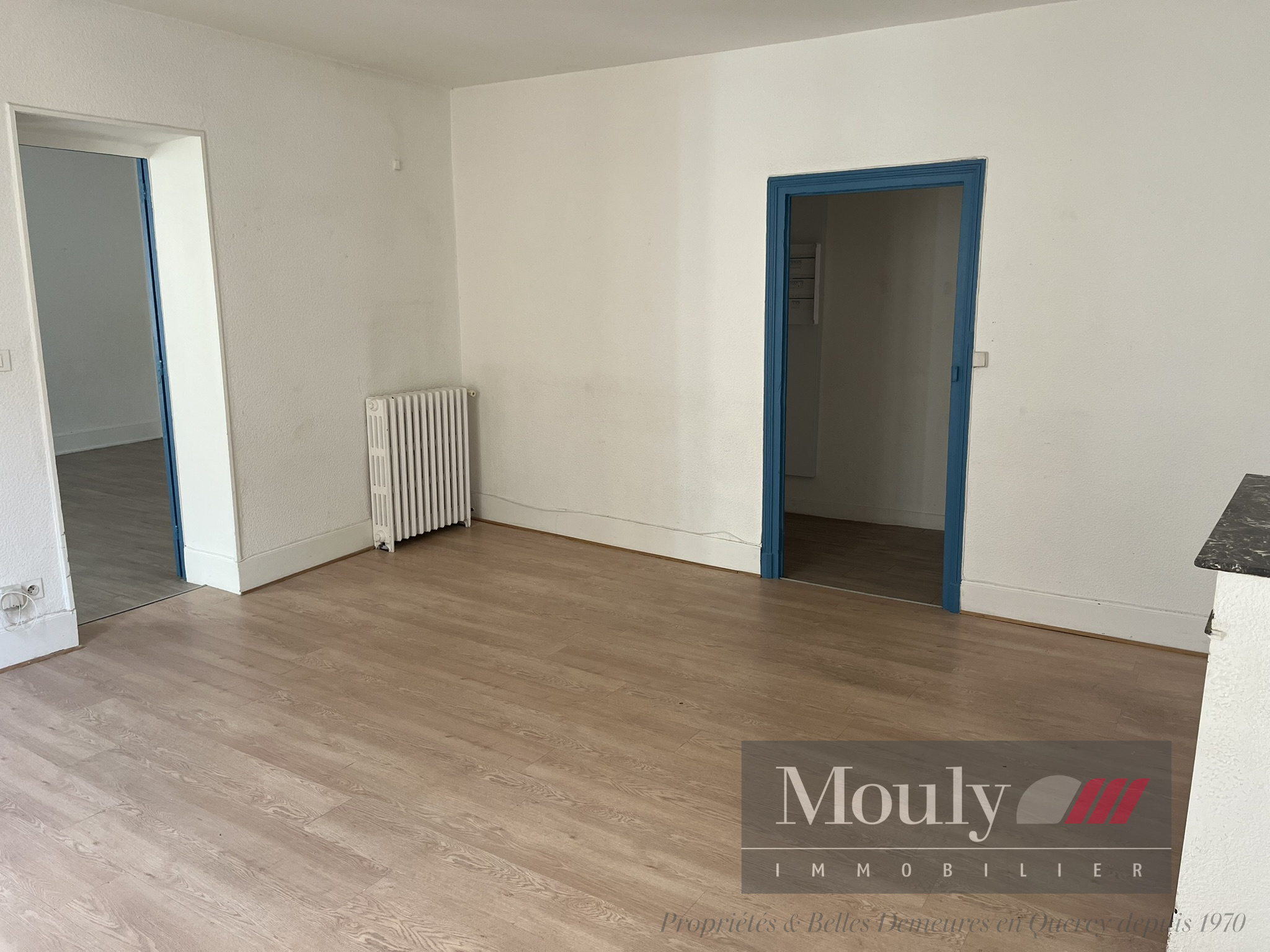 L’appartement dispose de deux chambres communicantes, dont une avec salle d’eau, offrant un espace de vie fonctionnel et modulable.