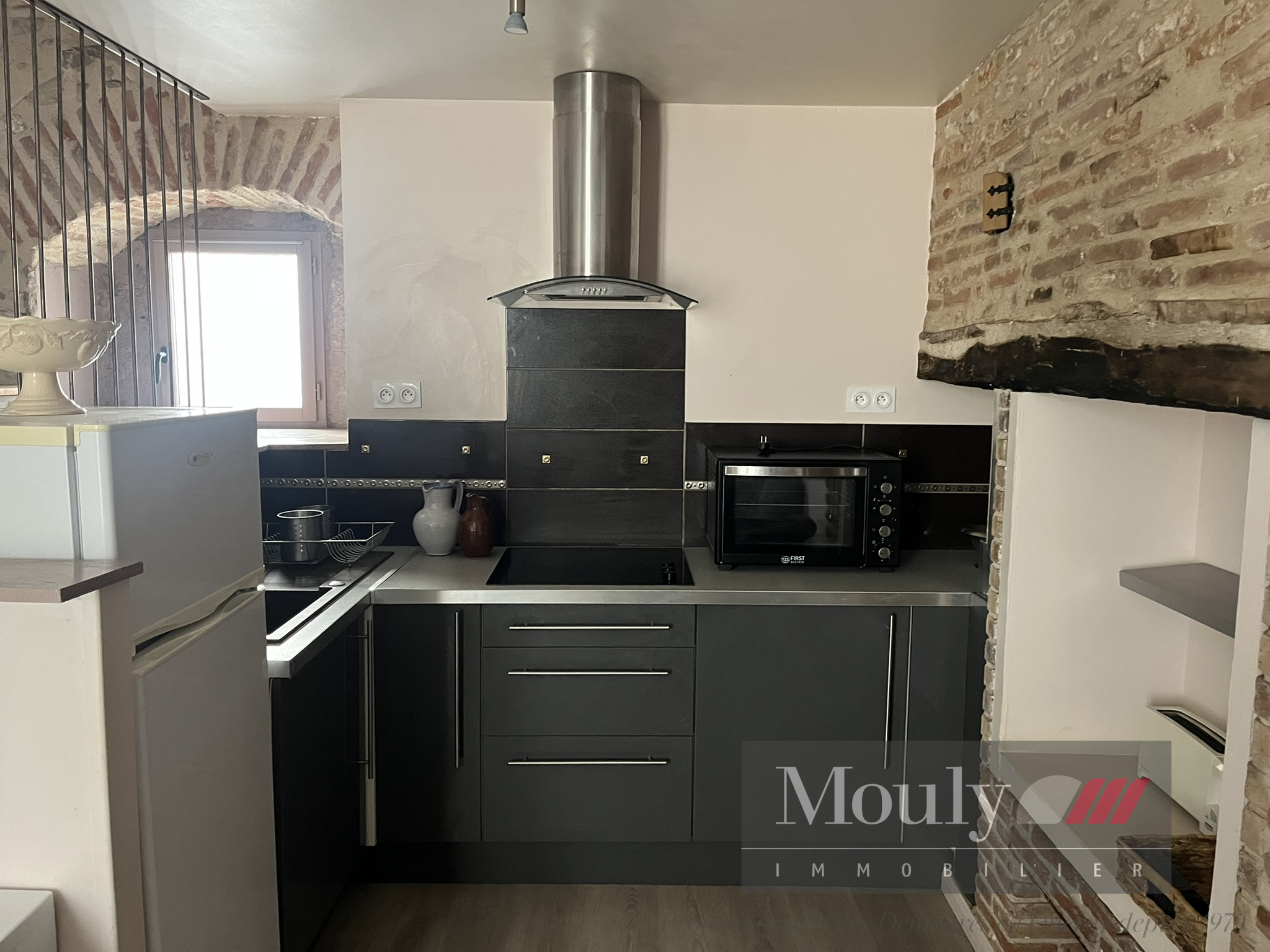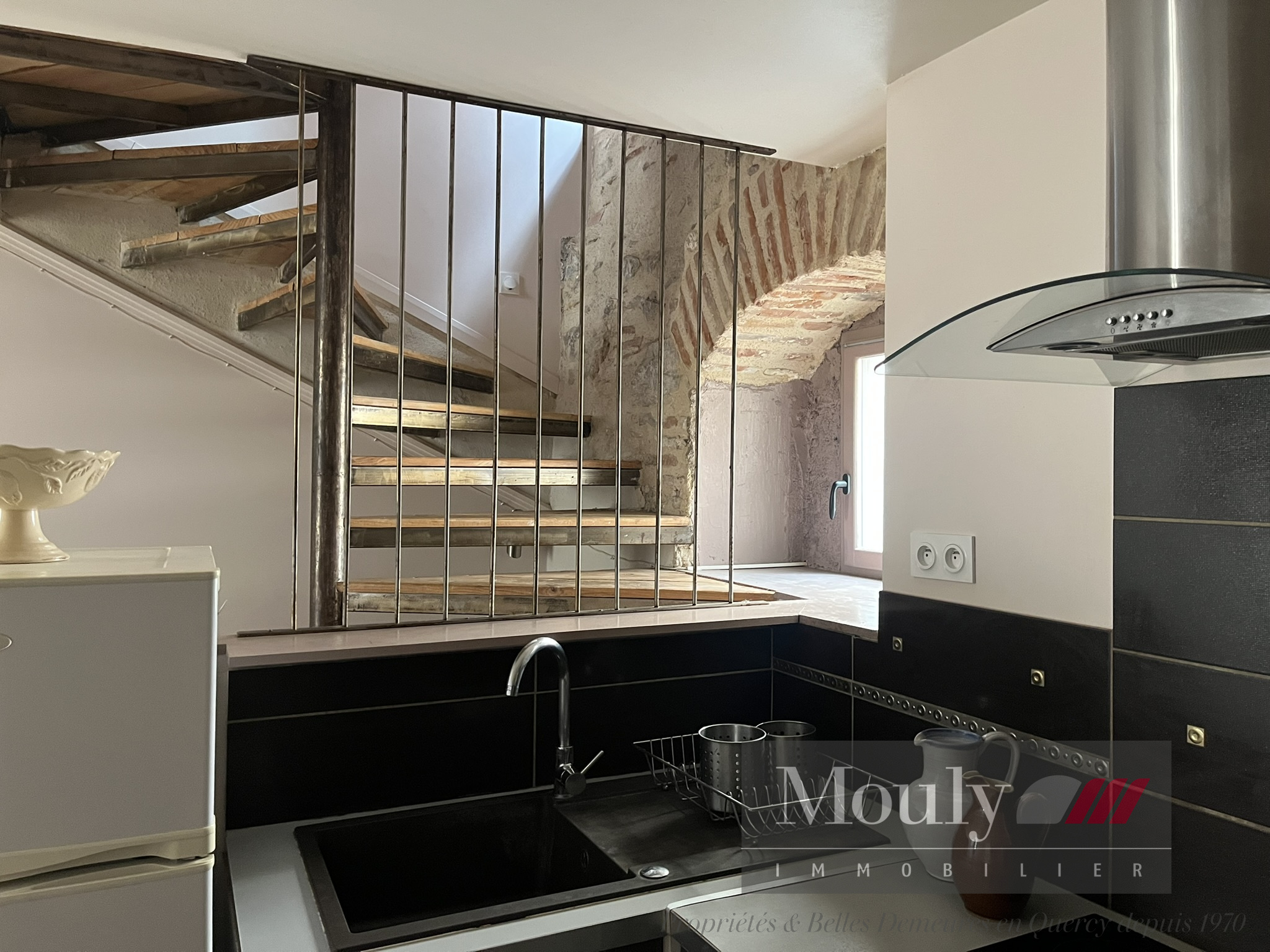 au premier étage d'un coin cuisine équipé et d'un salon