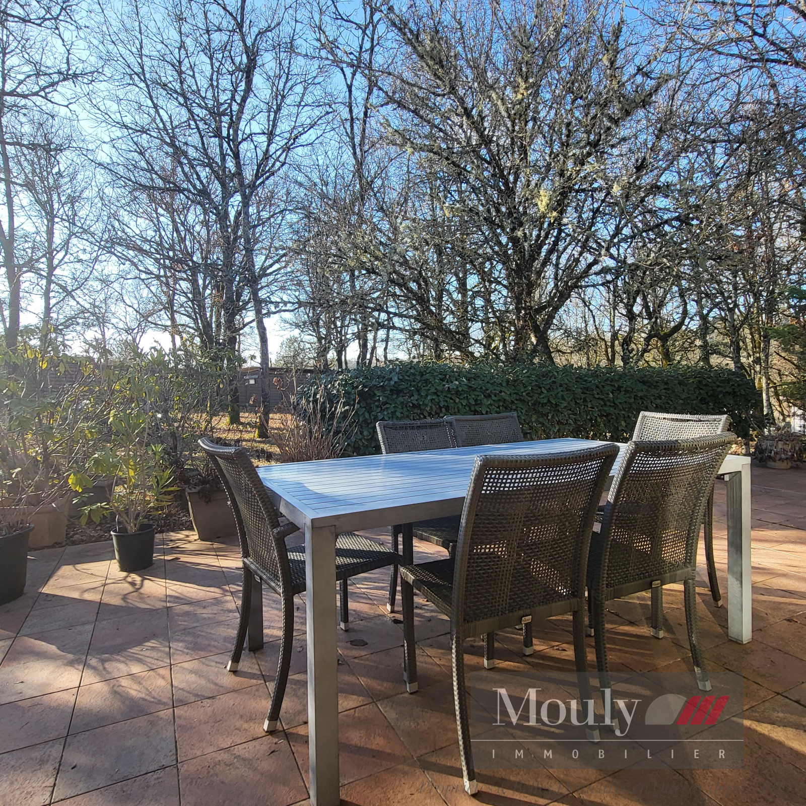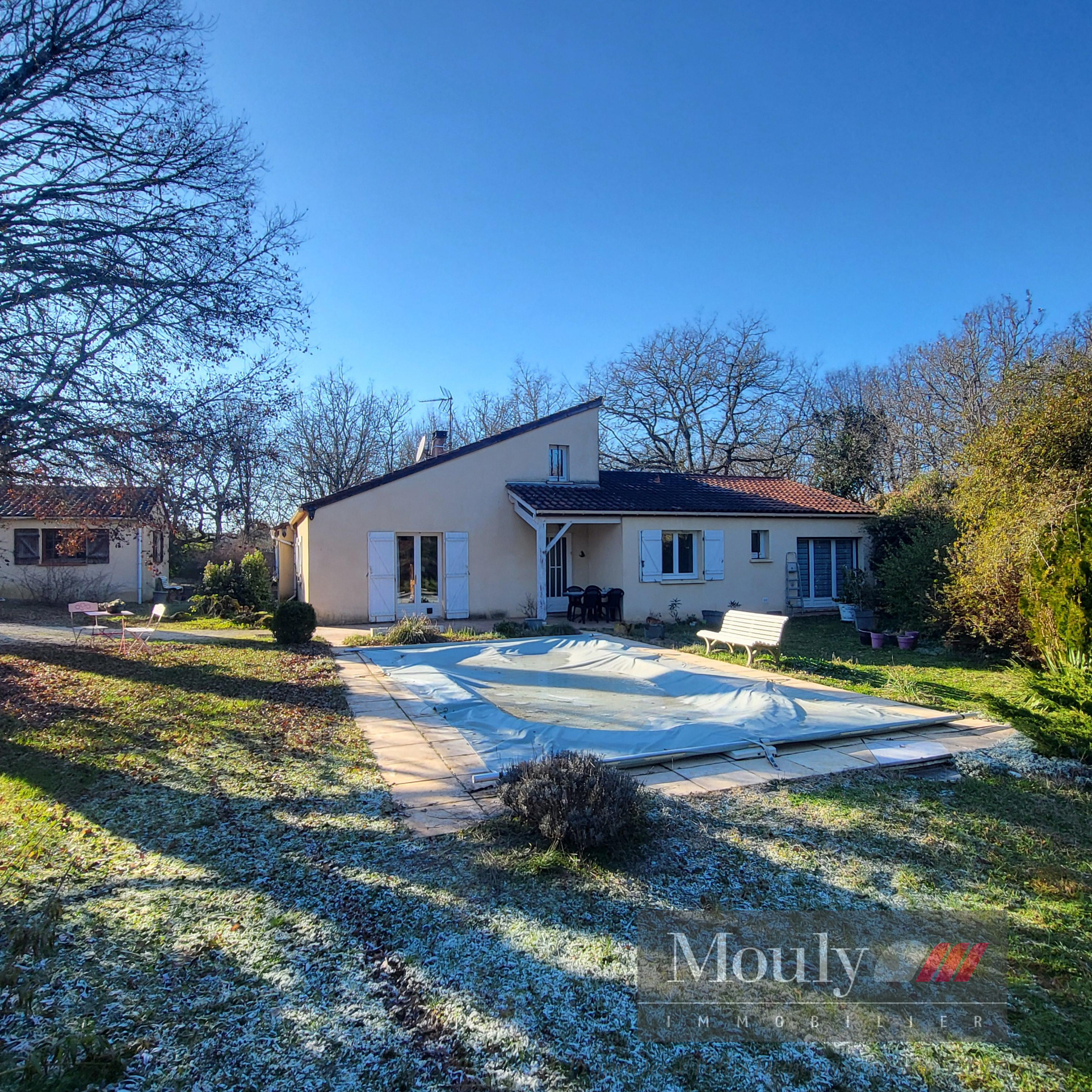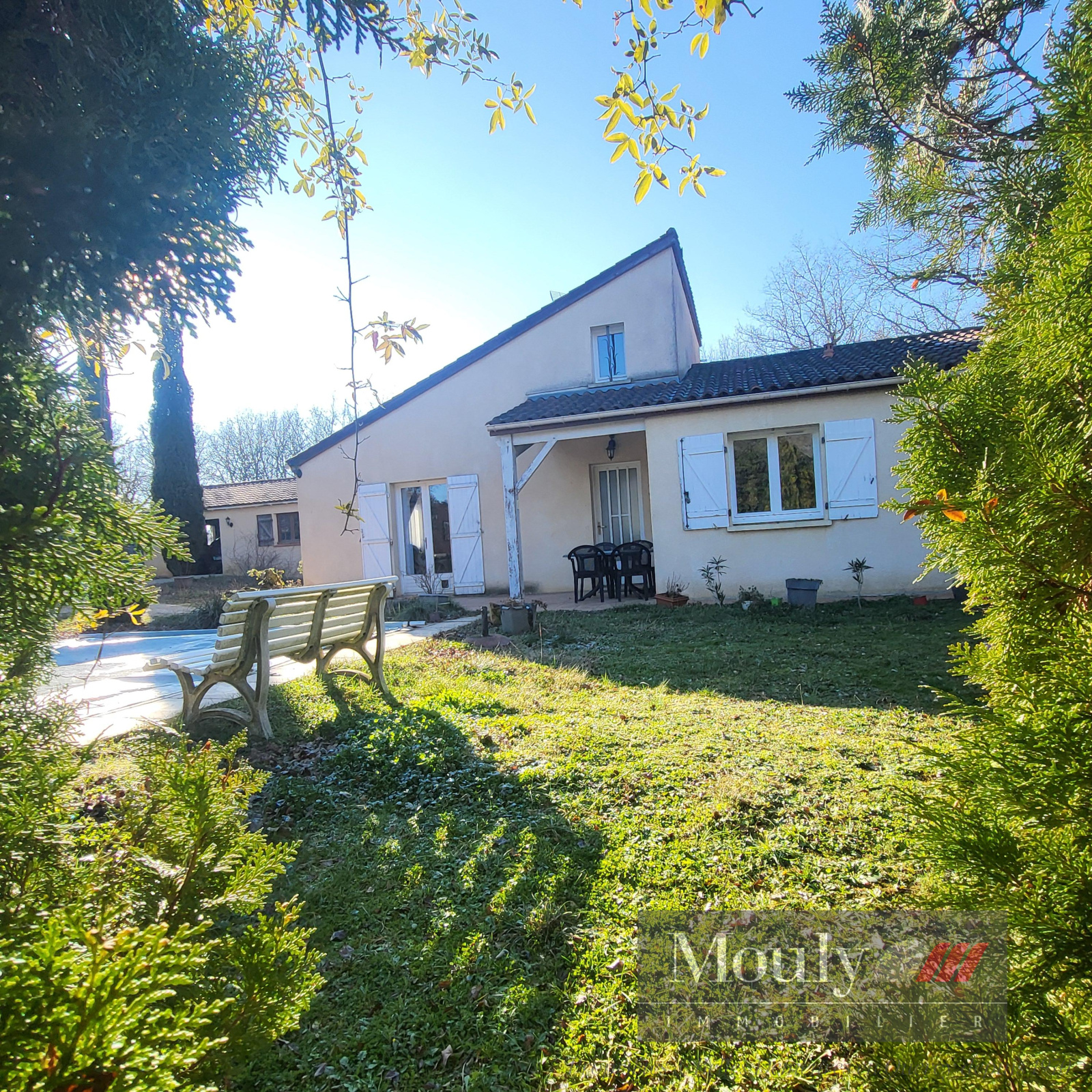 Le terrain est arboré et clos.