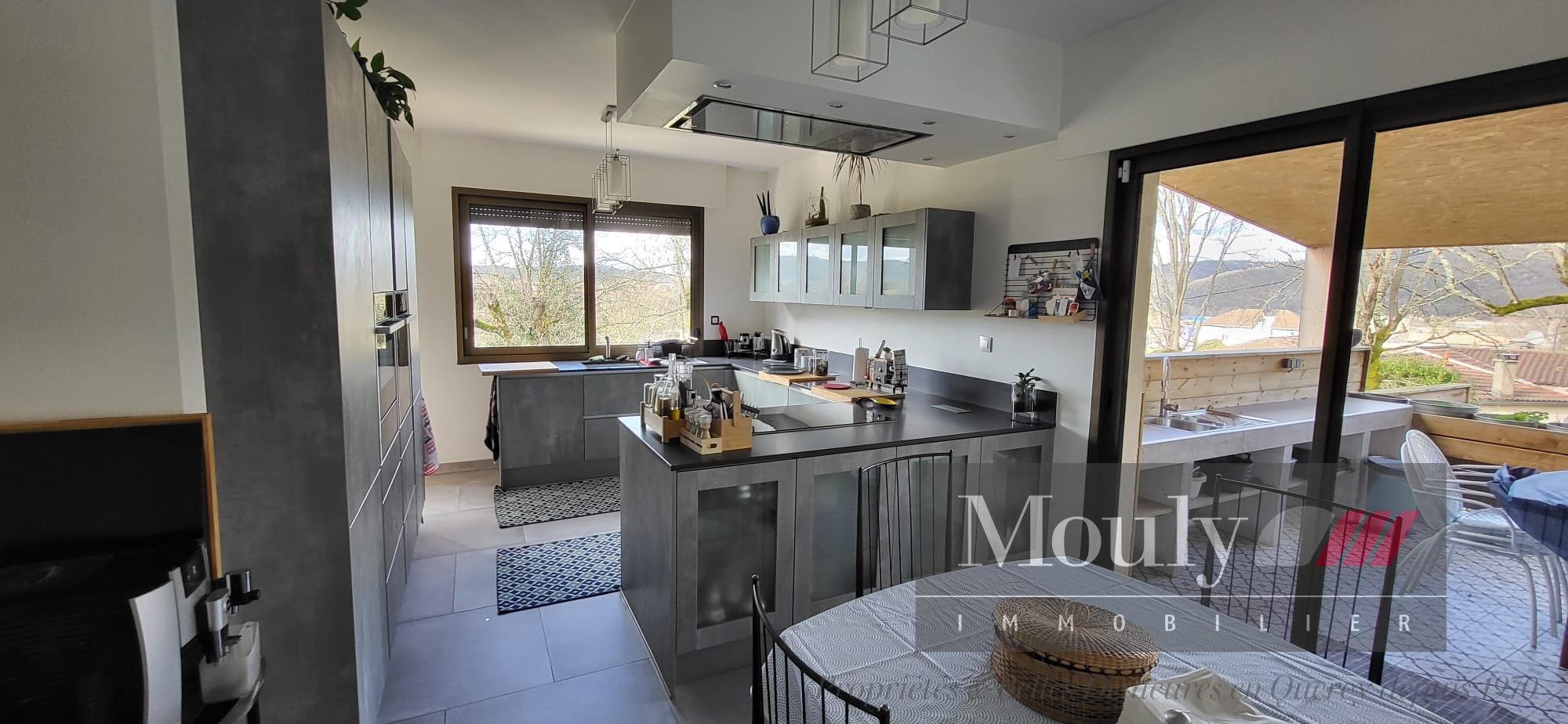Elle donne directement accès à une terrasse aménagée en cuisine d’été.