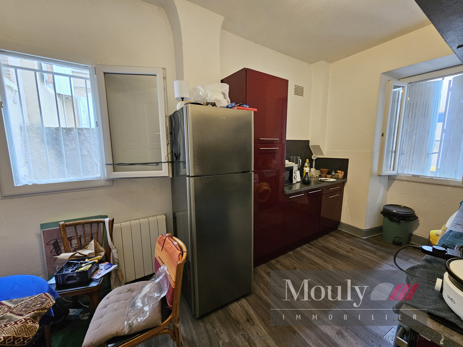 Environ 42m2 habitables, entrée, cuisine séparée aménagée, salon, 1 chambre avec placard, salle d'eau avec wc, chauffage électrique et double vitrage.