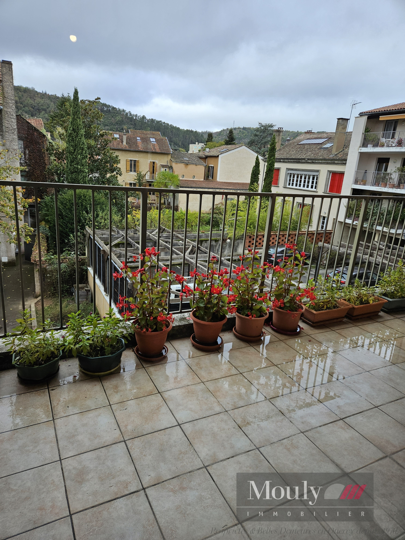 Le séjour donne sur une terrasse de 14m², un balcon est accessible par les deux chambres de l'autre coté de l'appartement.