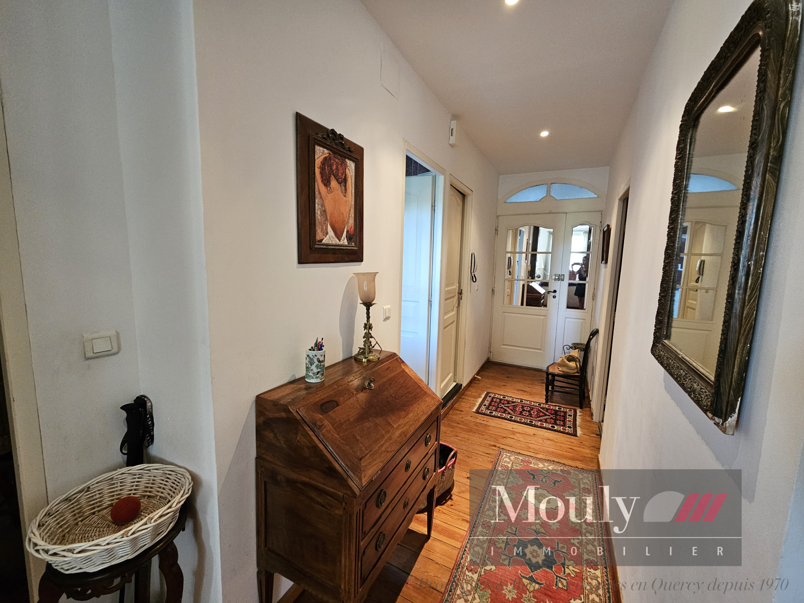 Entrée, grand salon/salle à manger avec cheminée, cuisine séparée, 3 chambres, salle de bains ( bain+ douche), wc, cave et grenier, chauffage individuel au gaz de ville ( chaudière neuve) et double vitrage.