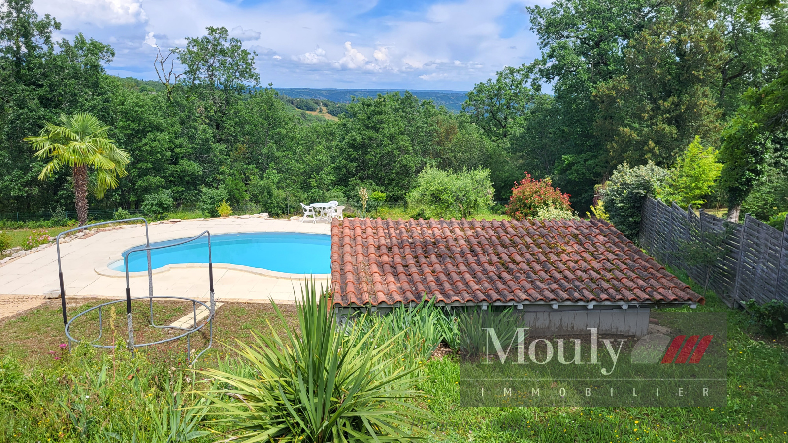 Piscine (liner neuf) avec pool house.