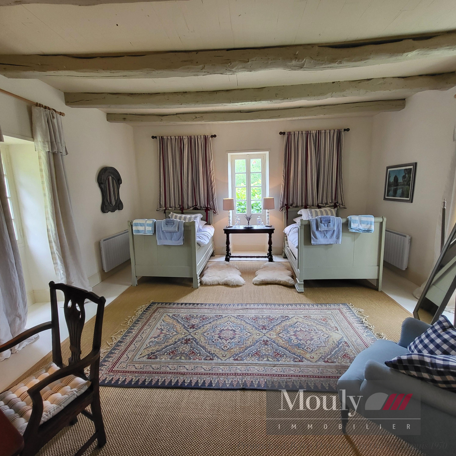 Une maison d'amis très bien restaurée comprend une grande terrasse, une cuisine équipée, un salon, une salle à manger et une bibliothèque, ainsi que trois chambres avec salles d'eau et une chambre sous mansarde.