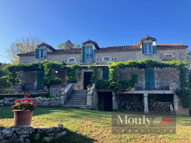 Située dans le parc régional des Causses du Quercy, cette propriété entourée de 28 hectares sur une surface habitable de 450m² offre un cadre de vie paisible et isolé. La maison principale a été restaurée il y a vingt ans. Elle comprend un rez-de-chaussée de 150 m² avec un hall spacieux équipée d’un chauffage au sol, une grande pièce de vie avec cuisine équipée, une salle à manger et un salon avec cheminée. À l'étage, une suite parentale de 35 m² avec salle de bains et terrasse privative, ainsi que trois autres chambres avec salles de bains.