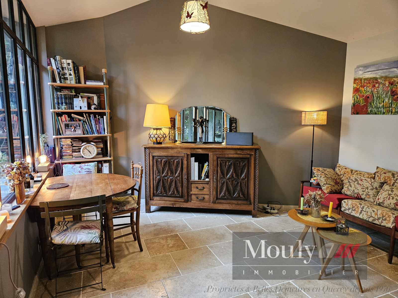 A 10 minutes à pieds du centre ville de Cahors, cette propriété de 153m² vous réserve un intérieur composé de 6 pièces dont 3 chambres, une en rez-de-chaussée avec salle d'eau et wc.
