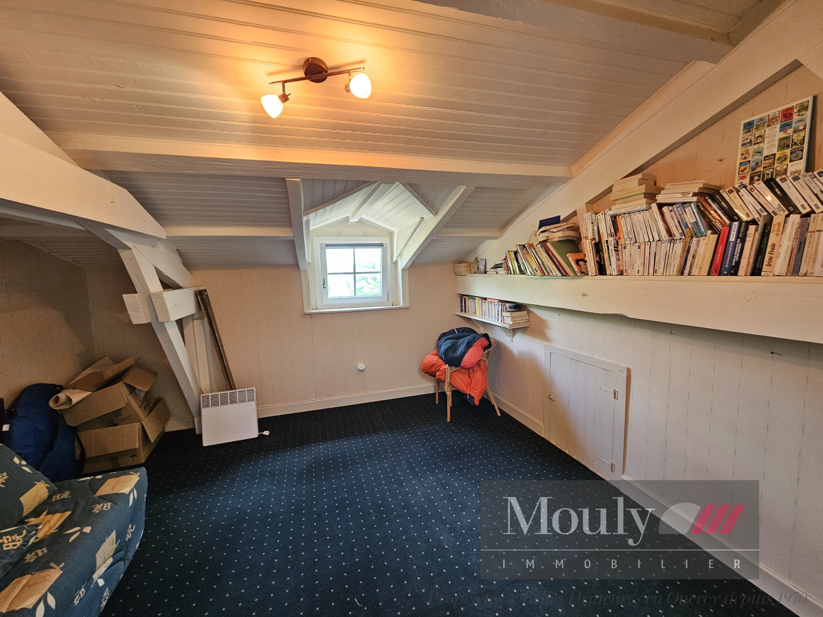 Maison sur sous-sol comprenant: En rez de terrasse: deux chambres avec placards, cuisine séparée, salle à manger/salon avec cheminée, salle de bains ( bain +douche), wc. Sous les combles: deux chambres supplémentaires et cabinet de toilette.