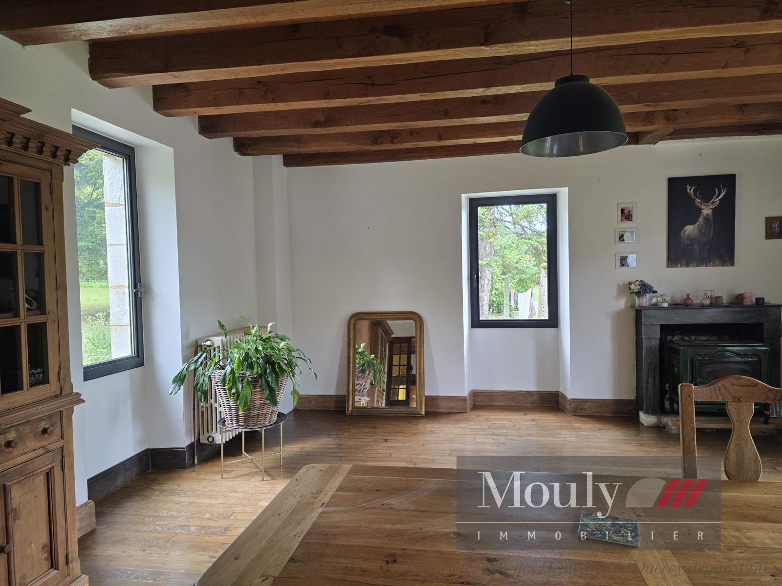 Séjour-salon avec cheminée + cuisine équipée pouvant être accessible de plain pieds - également 2 chambres + 1 sdb.