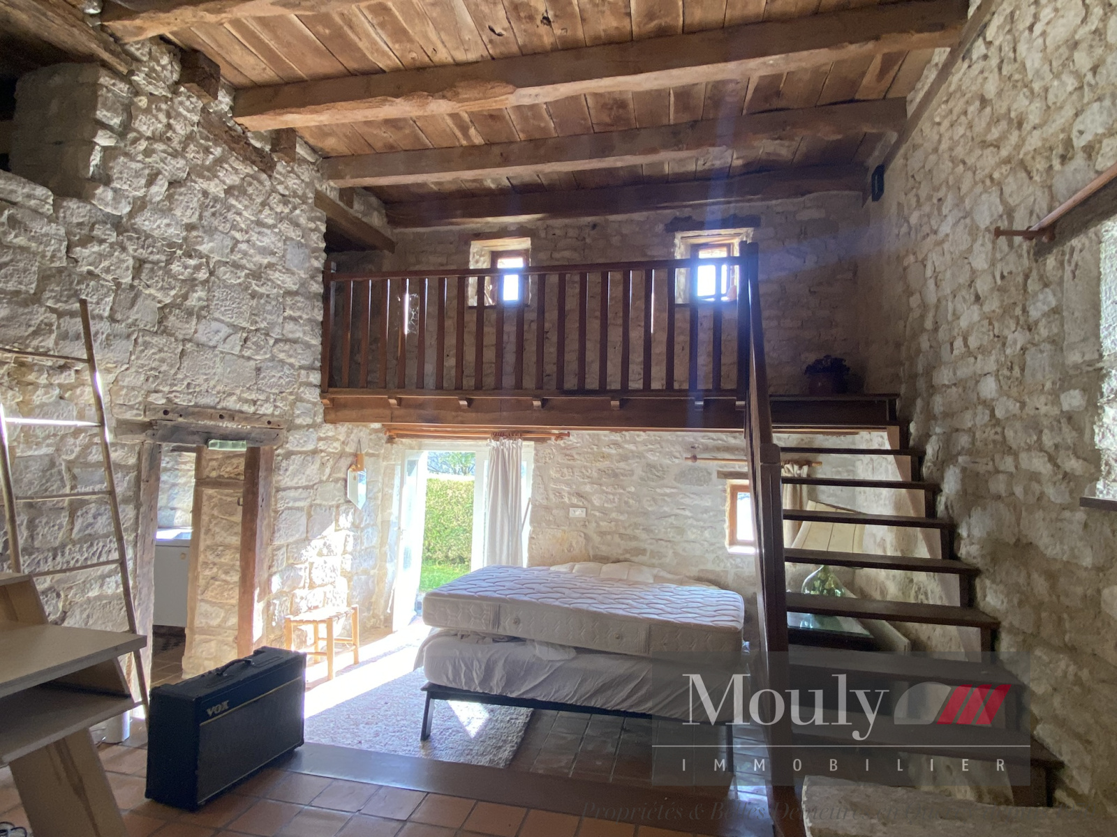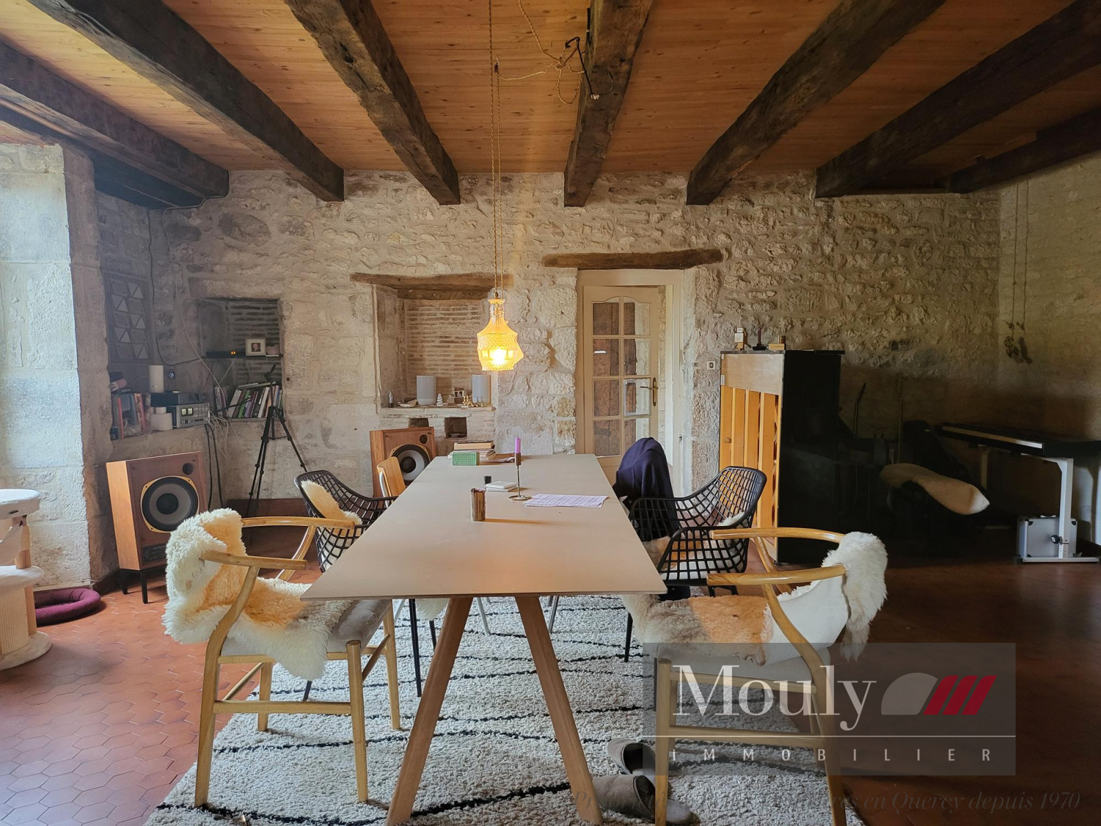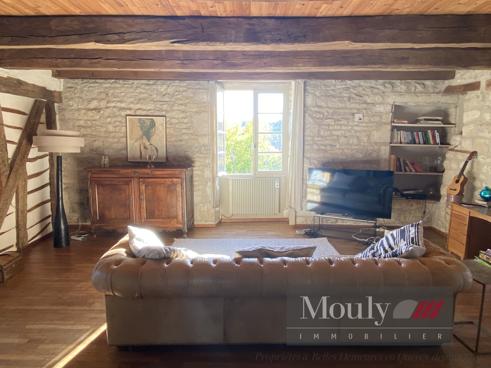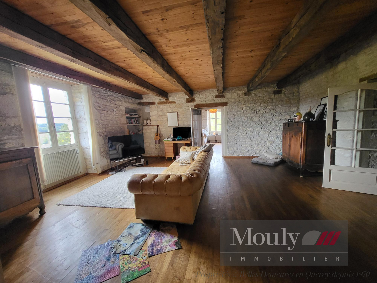 Grande pièce à vivre séjour/salon avec cheminée à l'étage (nombreux éléments anciens préservés).