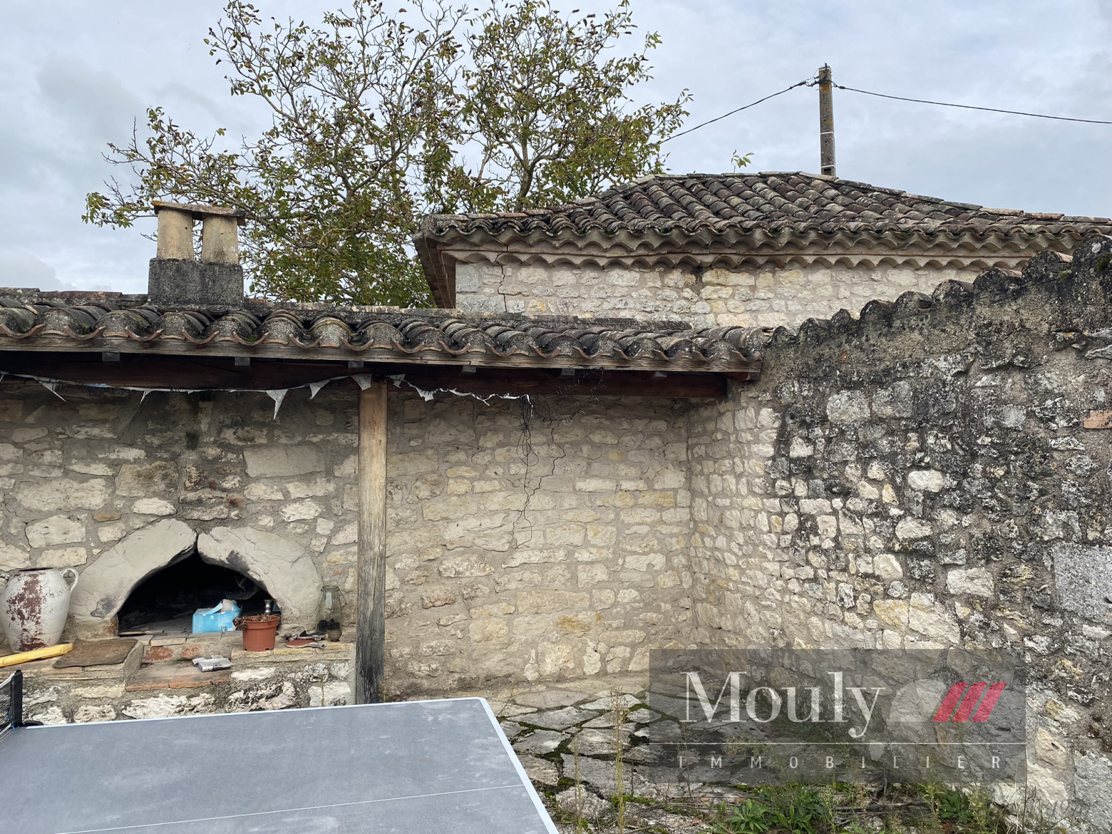 Four à pain avec une belle terrasse entourée de murets en pierre donnant côté piscine.