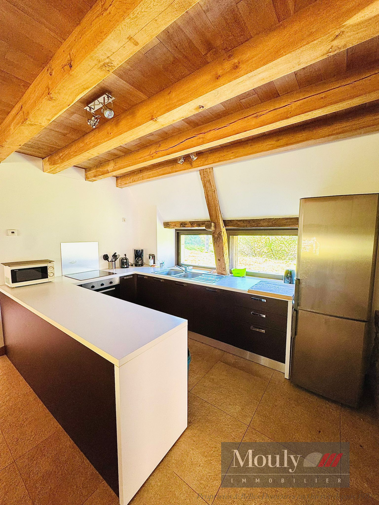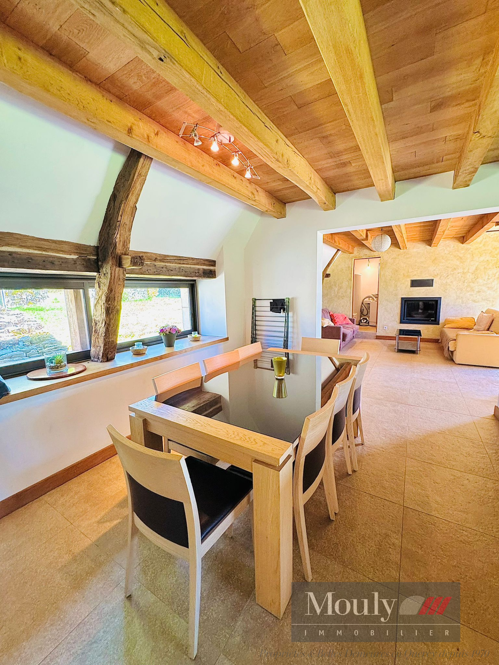 La batisse principale d'environ 120 m² est composée d'une cuisine ouverte sur salon / salle à manger avec cheminée, 3 chambres et 2 salles de bains. Le chauffage est électrique au sol et équipé de clim réversible.