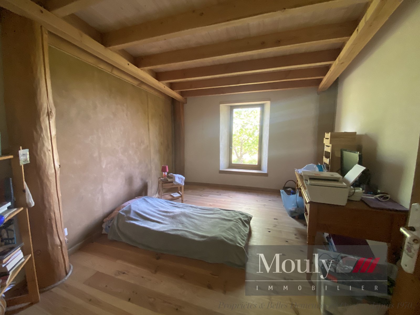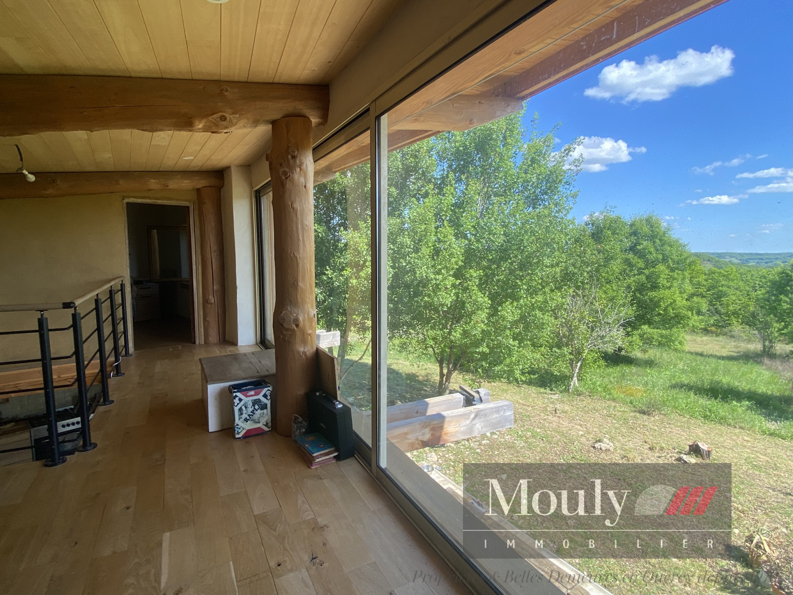 A l'étage, une mezzanine centrale pouvant servir d'espace bureau ou petit salon avec une porte fenêtre prête à recevoir une terrasse donnant sur la belle nature autour. On trouve 2 chambres de ce côté de l'habitation et un sécond escalier qui mène à deux chambres supplémentaires.