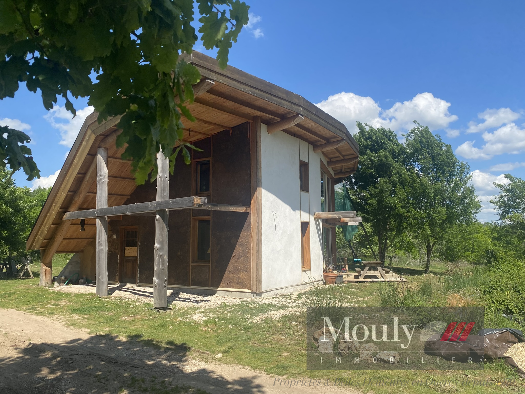 Habitat durable et inspirant, en parfaite symbiose avec un environnement naturel vierge. Le projet s'inscrit dans une démarche éco-responsable. Vivre autrement, plus simplement, dans le respect total de la nature. Un lieu préservé de toute urbanisation, riche en biodiversité. Maison construite en fuste, murs en terre crue, chanvre et paille, toiture à végétaliser. Design bioclimatique - surface optimisée, orientation favorable pour bénéficier de la lumière naturelle, inertie thermique après finitions. Intégration paysagère- aucune coupe d'arbre majeure.