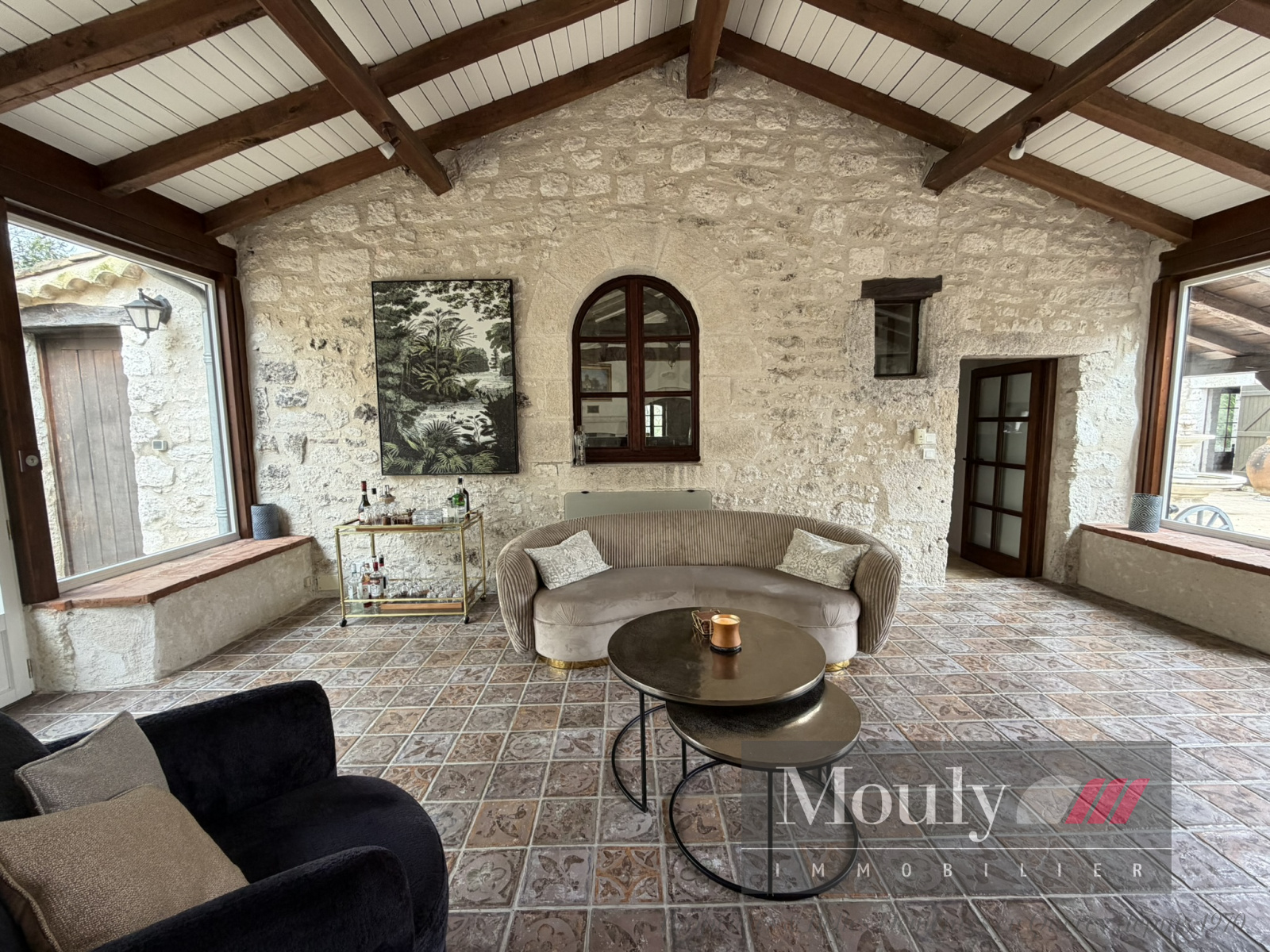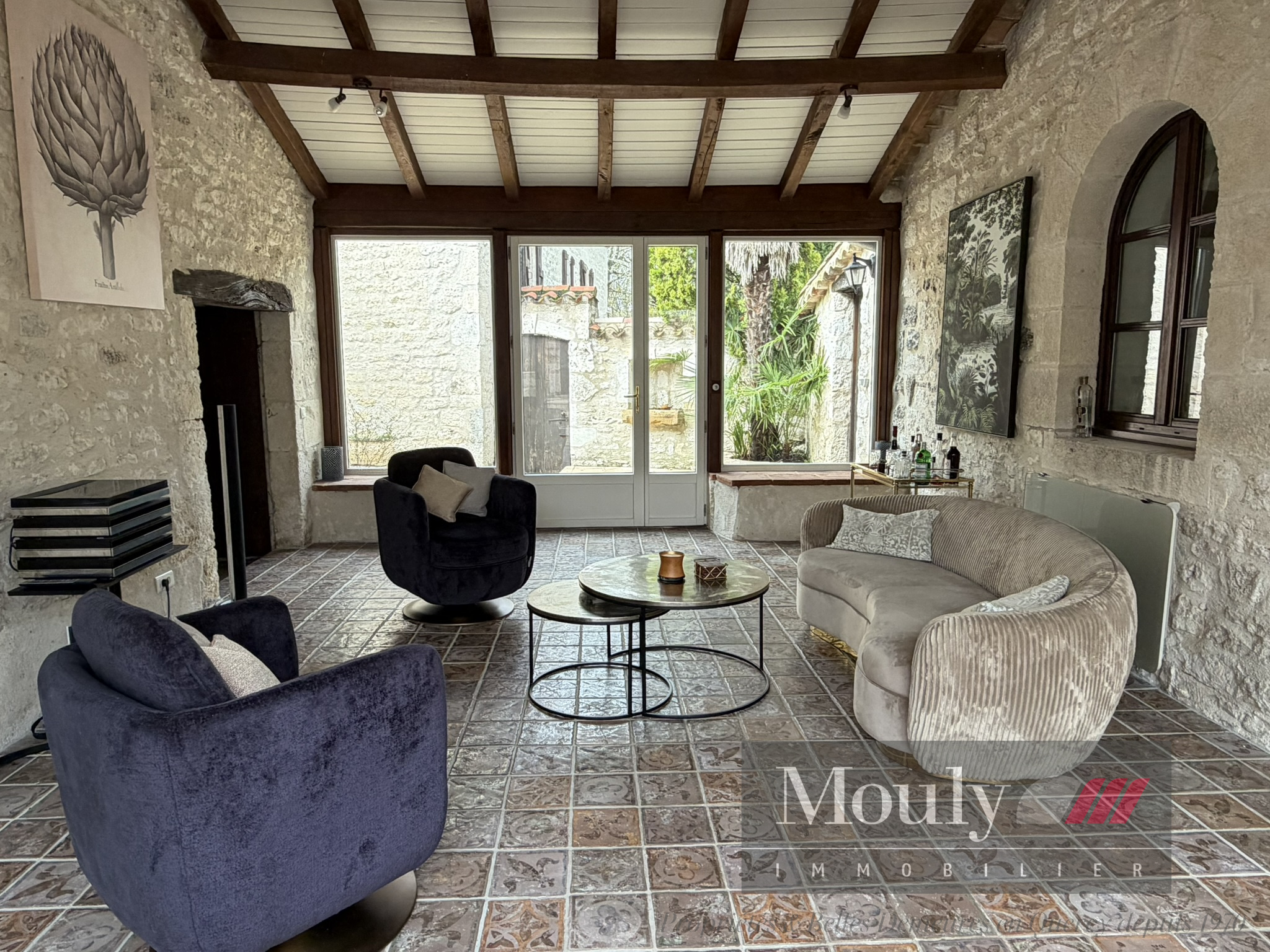 Implantée sur un terrain arboré avec vues sur la campagne environnante, la propriété invite à la détente : jardin paysager, terrasses ensoleillés, espaces ombragés propices aux longues soirées d'été.