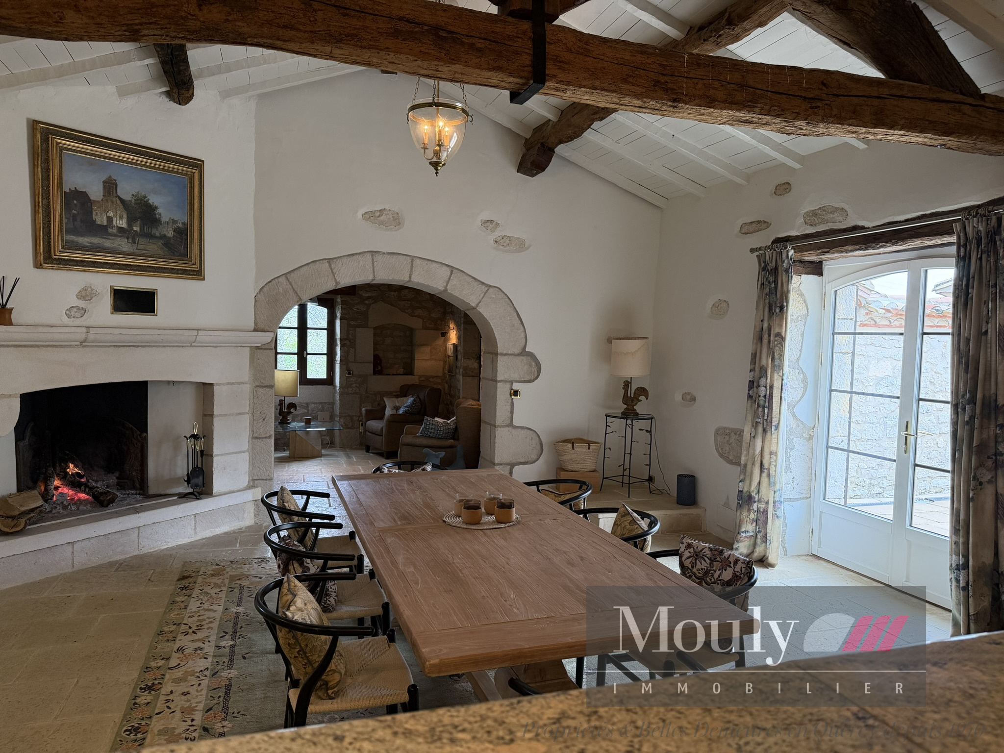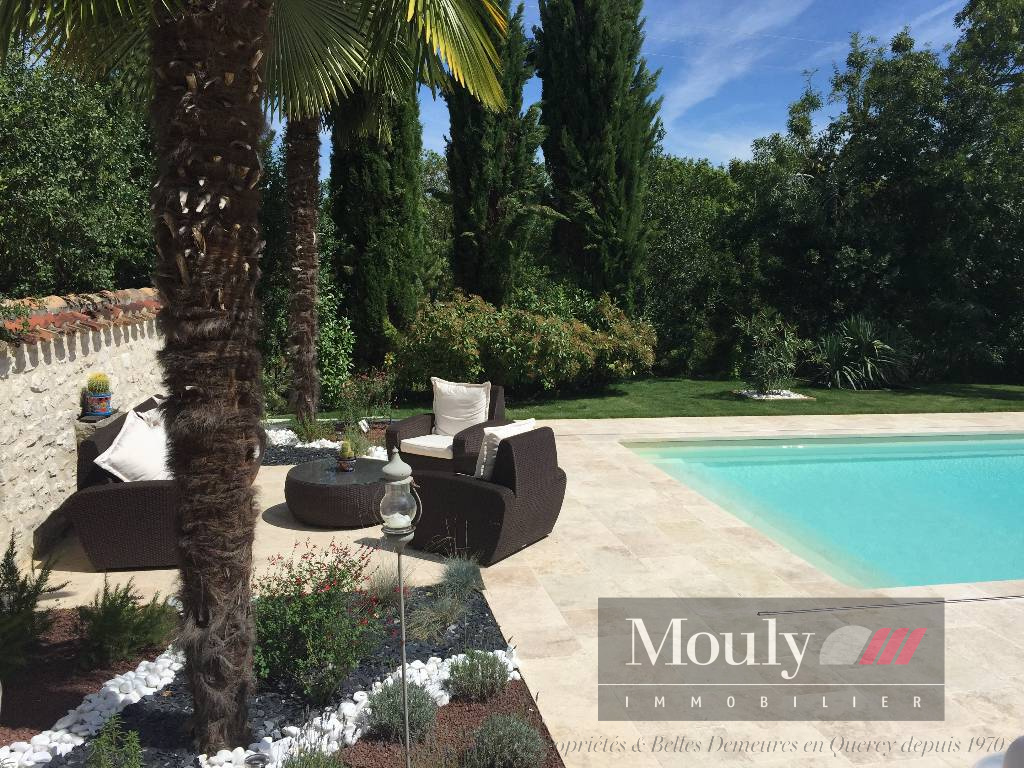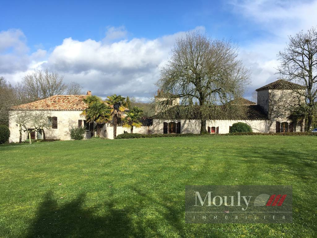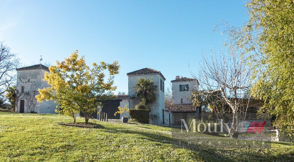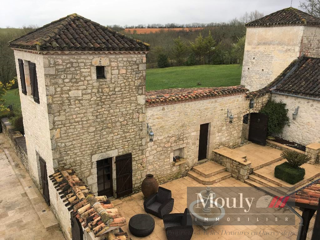 Nichée au fond d'un chemin, dans les paysages vallonnés du Quercy Blanc, derrière un portail électrique, cette somptueuse propriété de caractère conjugue authenticité, élégance et art de vivre à la campagne. La vie s'organise autour d'un corps principal flanqué de trois tours majestueuses qui lui confèrent une allure rare et intemporelle. Les volumes généreux de la maison principale, les hauteurs sous plafonds et les éléments anciens préservés - charpente apparente, belles poutres, cheminées en pierre, témoignent de son histoire et son caractère. La maison principale propose des belles pièces de réception, une entrée exceptionnelle baignée de lumière, une cuisine haut de gamme ouverte sur la salle à manger, un séjour cozy donnant accès à un pigeonnier avec salle d'eau et chambre. Chambre principale en suite comprenant deux dressings, une salle de bain et une salle d'eau.