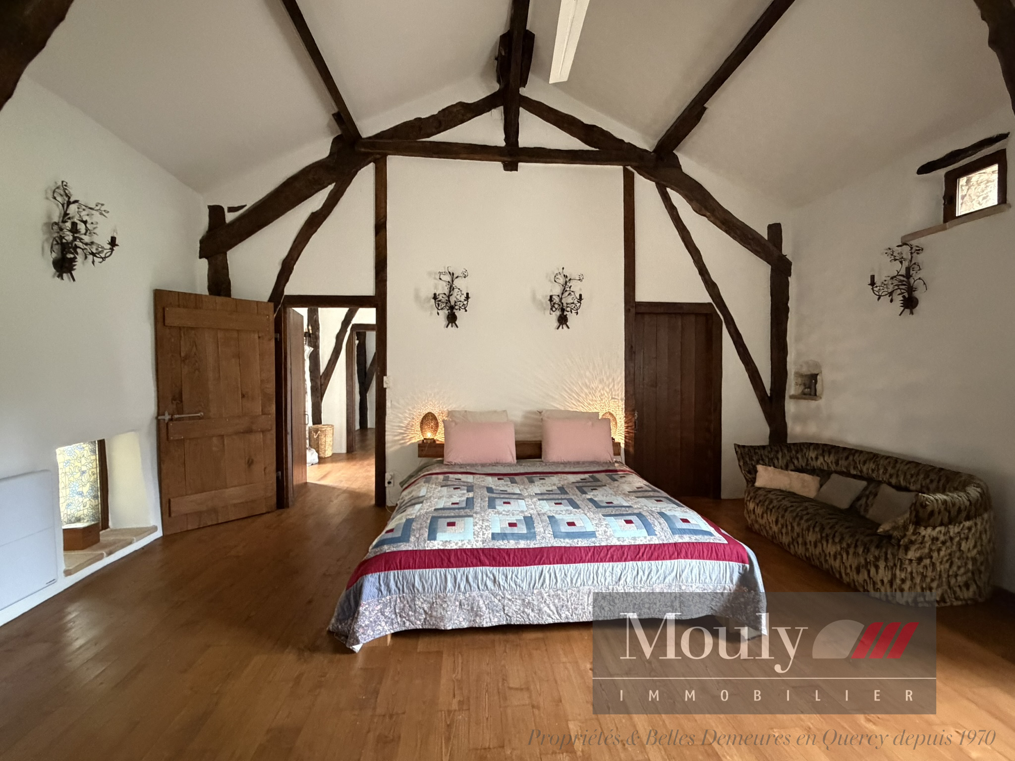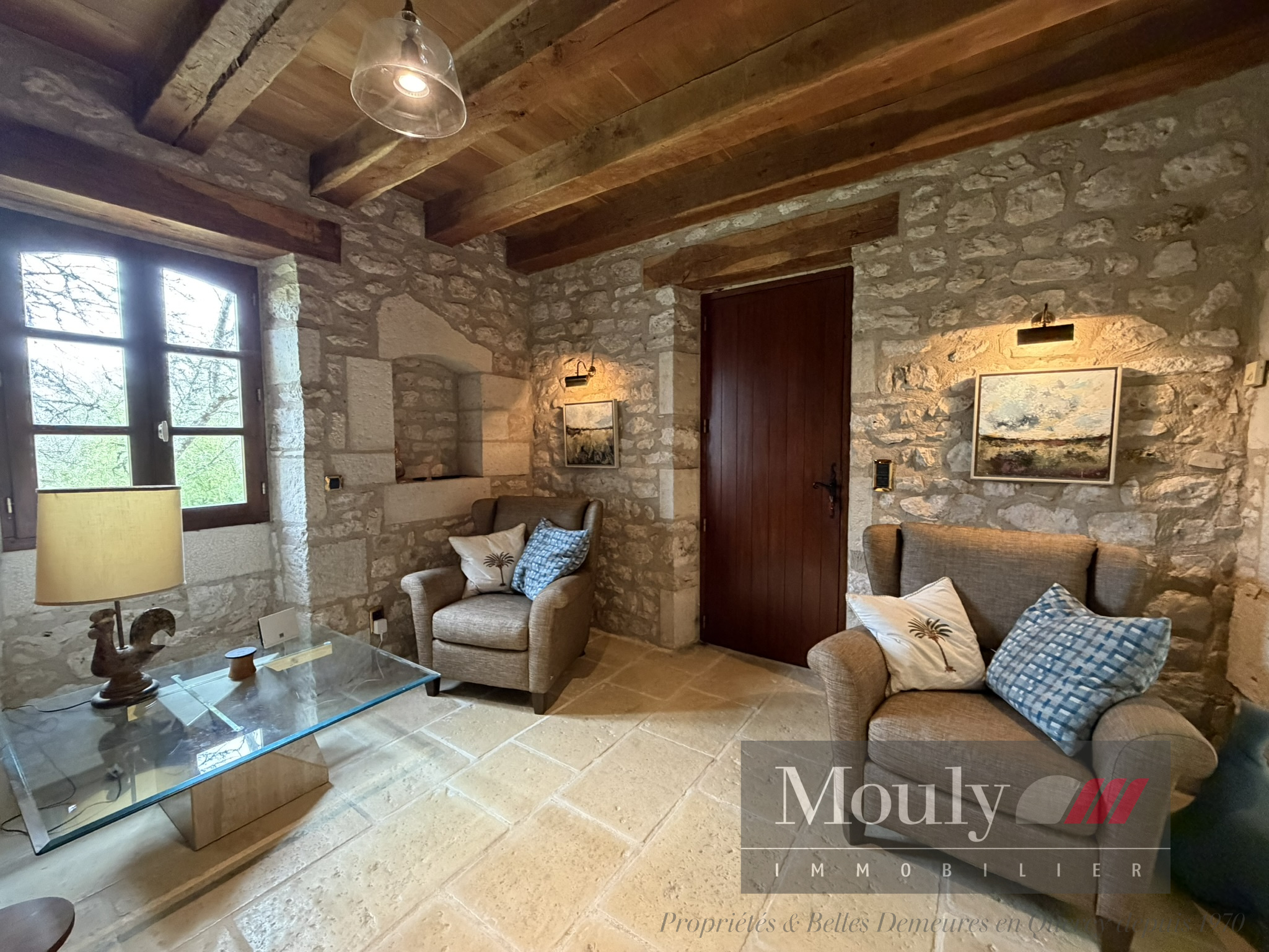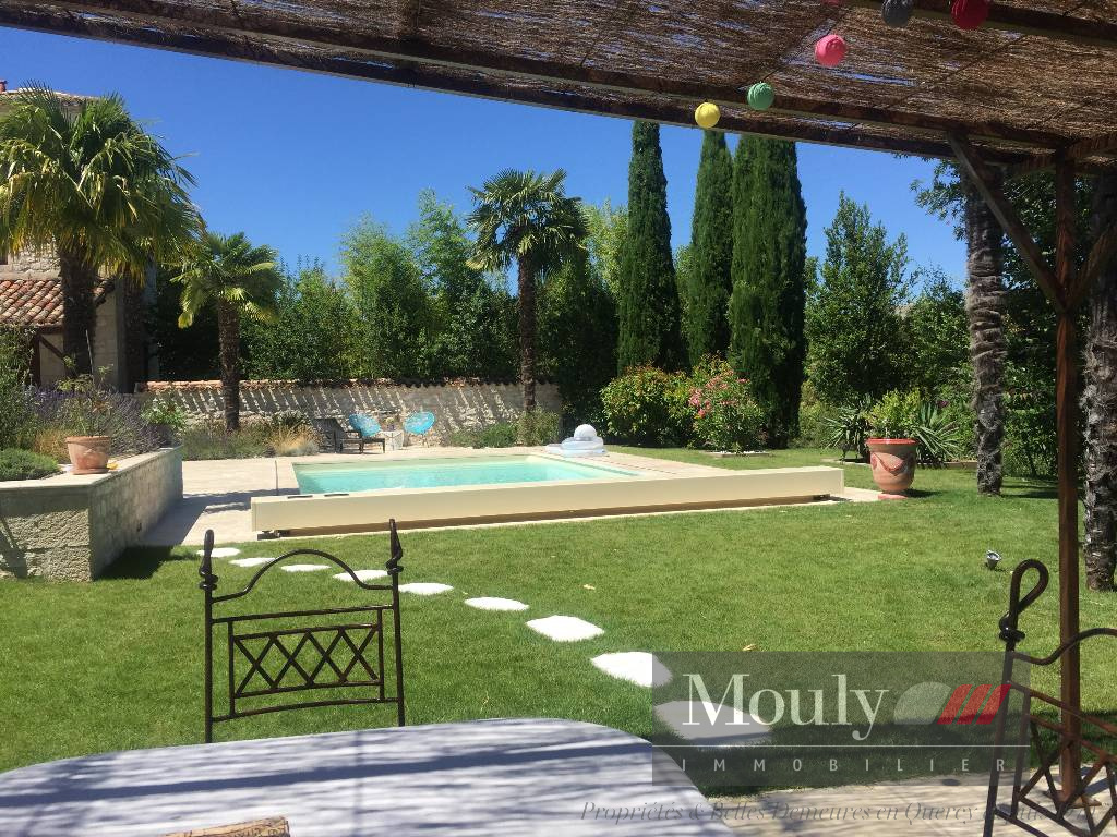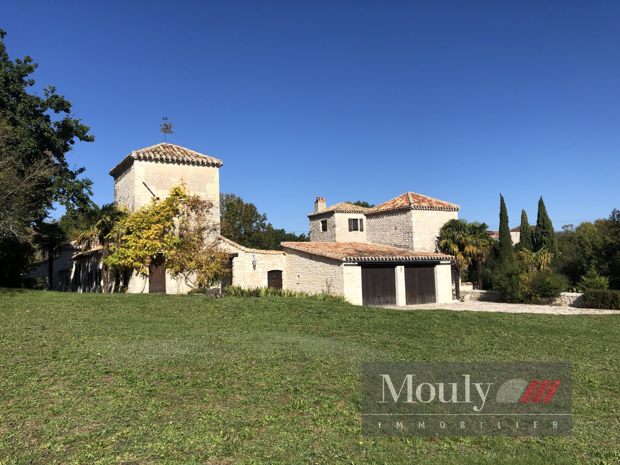 Nichée au fond d'un chemin, dans les paysages vallonnés du Quercy Blanc, derrière un portail électrique, cette somptueuse propriété de caractère conjugue authenticité, élégance et art de vivre à la campagne. La vie s'organise autour d'un corps principal flanqué de trois tours majestueuses qui lui confèrent une allure rare et intemporelle. Les volumes généreux de la maison principale, les hauteurs sous plafonds et les éléments anciens préservés - charpente apparente, belles poutres, cheminées en pierre, témoignent de son histoire et son caractère. La maison principale propose des belles pièces de réception, une entrée exceptionnelle baignée de lumière, une cuisine haut de gamme ouverte sur la salle à manger, un séjour cozy donnant accès à un pigeonnier avec salle d'eau et chambre. Chambre principale en suite comprenant deux dressings, une salle de bain et une salle d'eau.