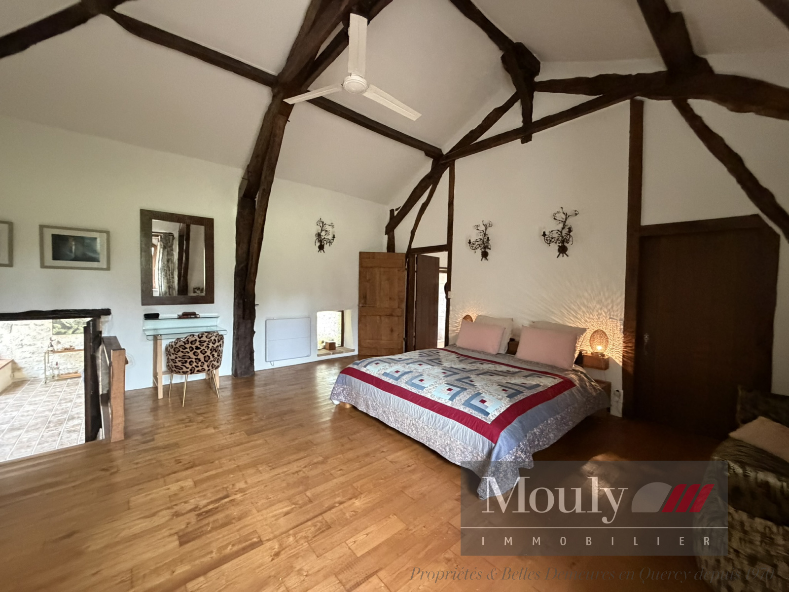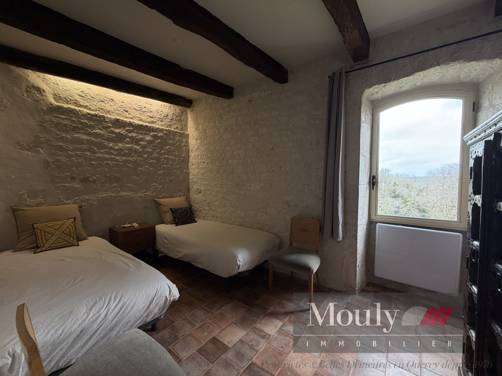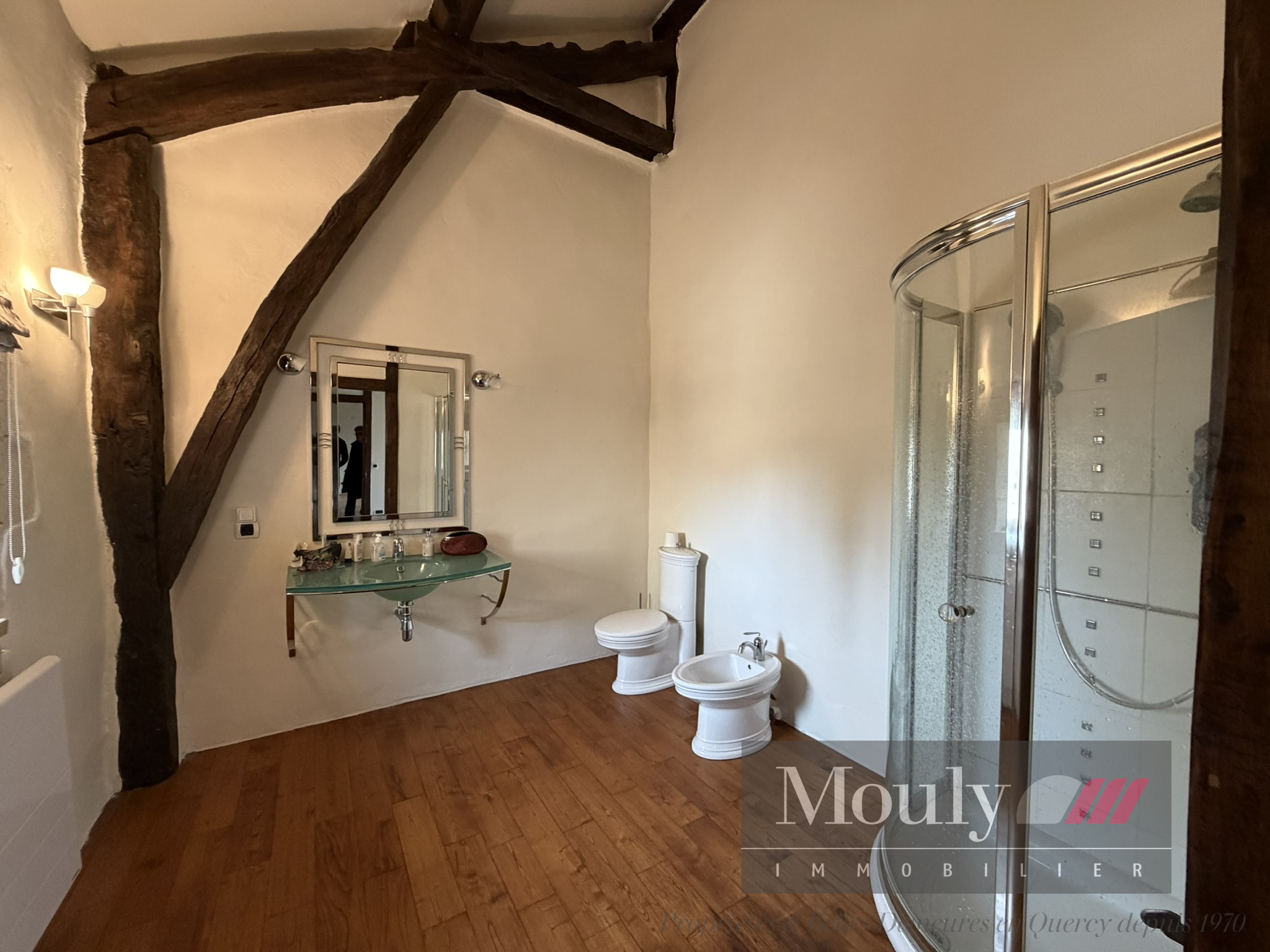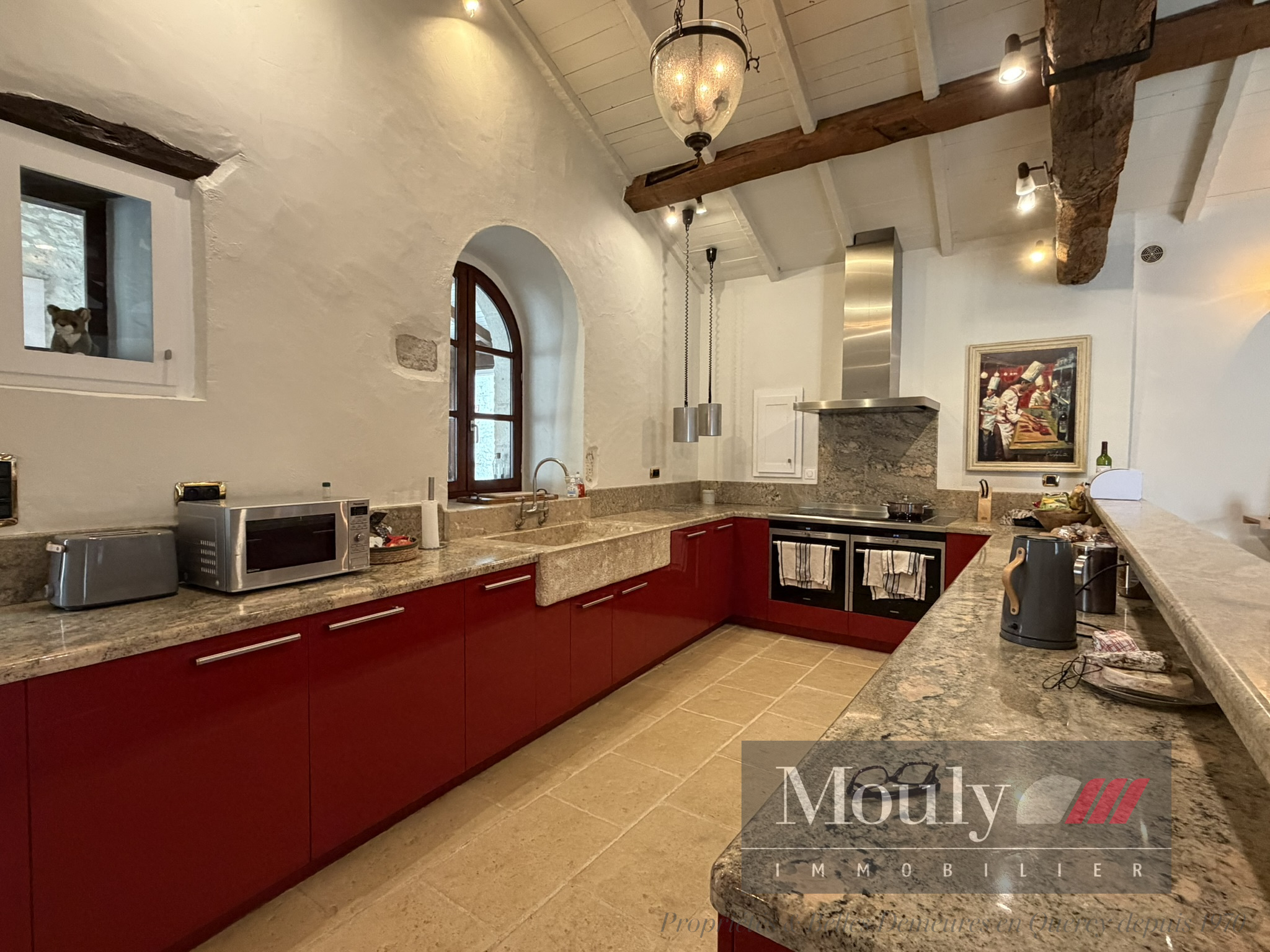 Nichée au fond d'un chemin, dans les paysages vallonnés du Quercy Blanc, derrière un portail électrique, cette somptueuse propriété de caractère conjugue authenticité, élégance et art de vivre à la campagne. La vie s'organise autour d'un corps principal flanqué de trois tours majestueuses qui lui confèrent une allure rare et intemporelle. Les volumes généreux de la maison principale, les hauteurs sous plafonds et les éléments anciens préservés - charpente apparente, belles poutres, cheminées en pierre, témoignent de son histoire et son caractère. La maison principale propose des belles pièces de réception, une entrée exceptionnelle baignée de lumière, une cuisine haut de gamme ouverte sur la salle à manger, un séjour cozy donnant accès à un pigeonnier avec salle d'eau et chambre. Chambre principale en suite comprenant deux dressings, une salle de bain et une salle d'eau.