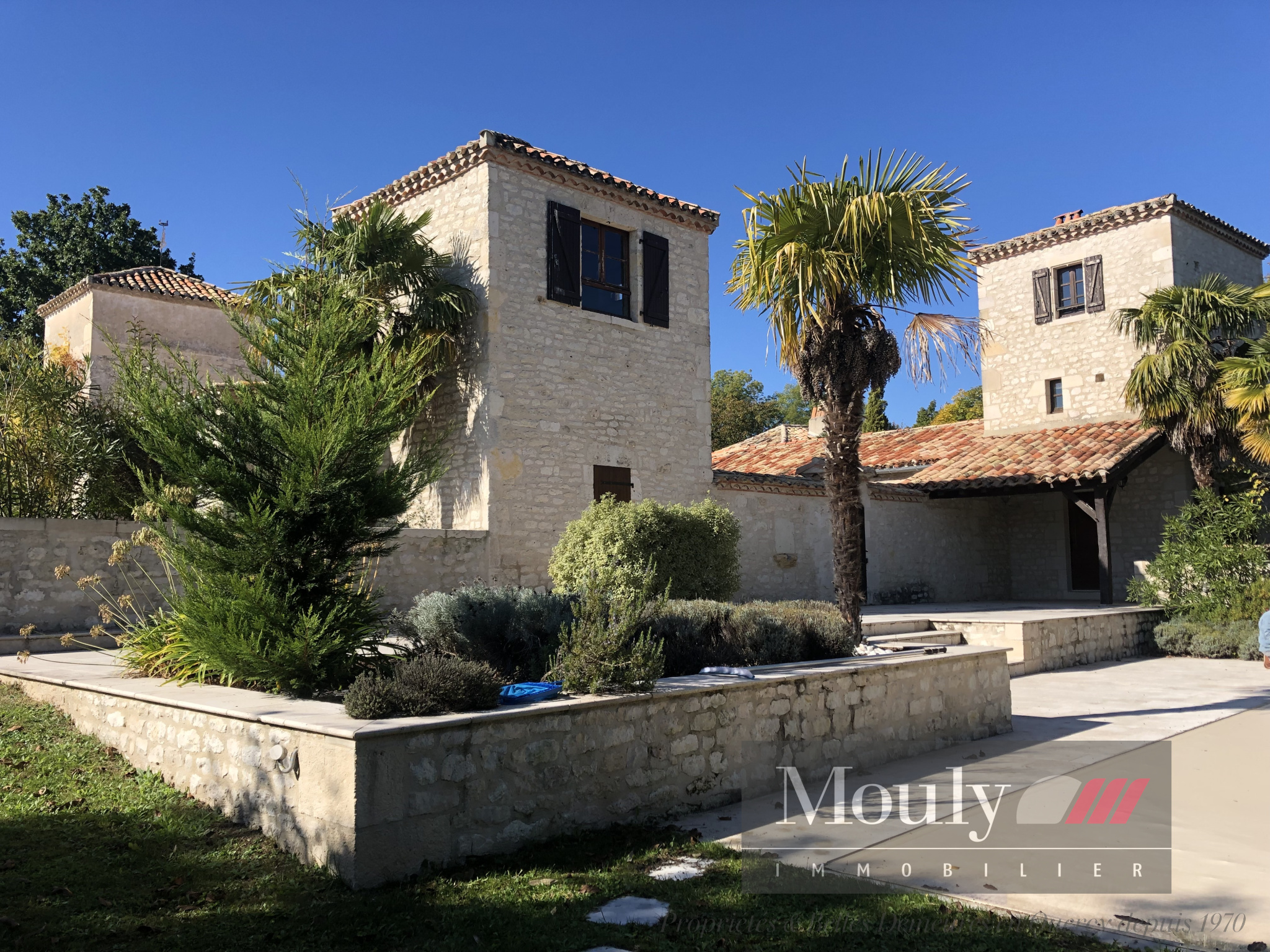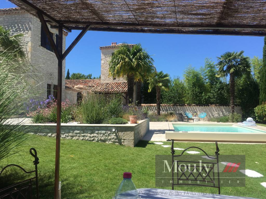 Maison principale avec trois tours aménagés en studios et bureau, une maison d'amis 2 chambres, une belle piscine et un joli jardin à l'abri de tout regard.