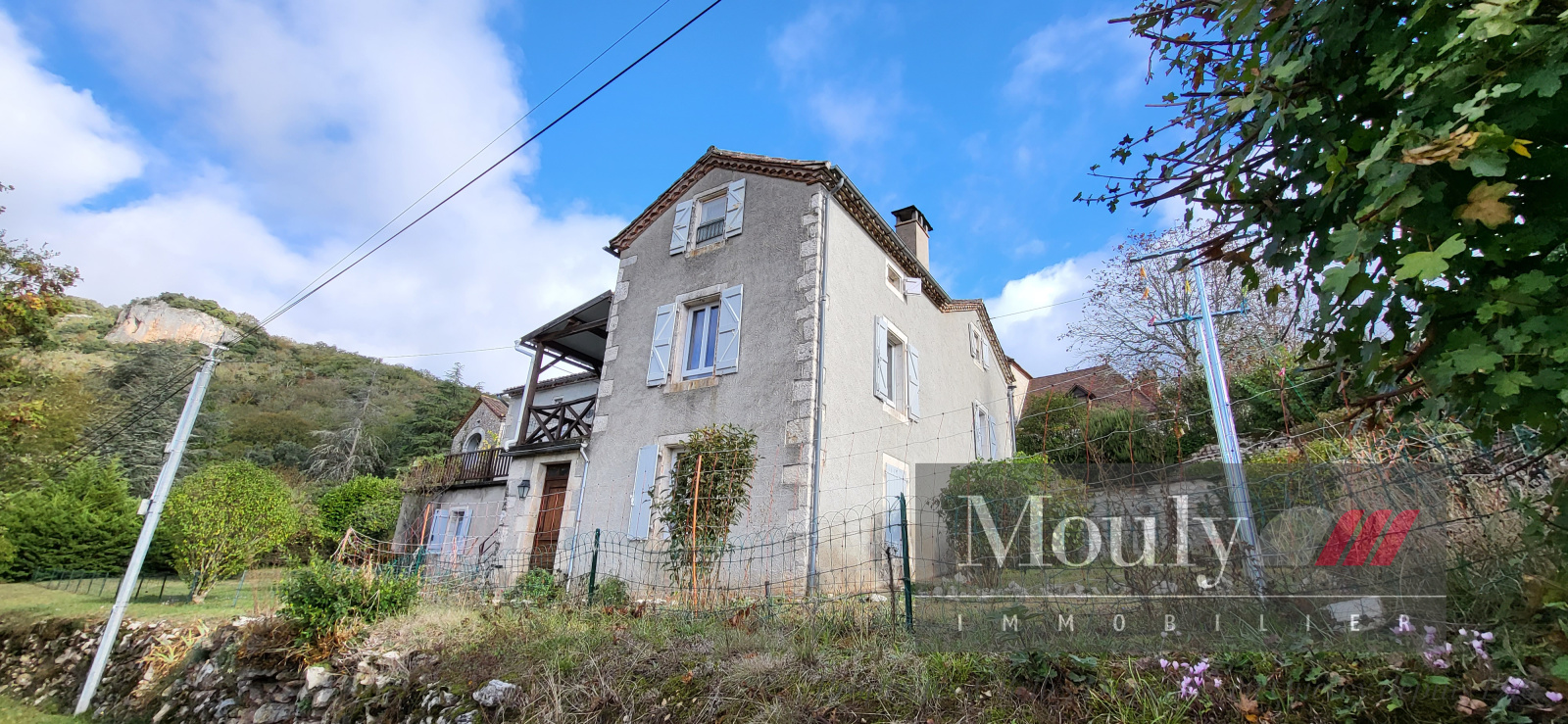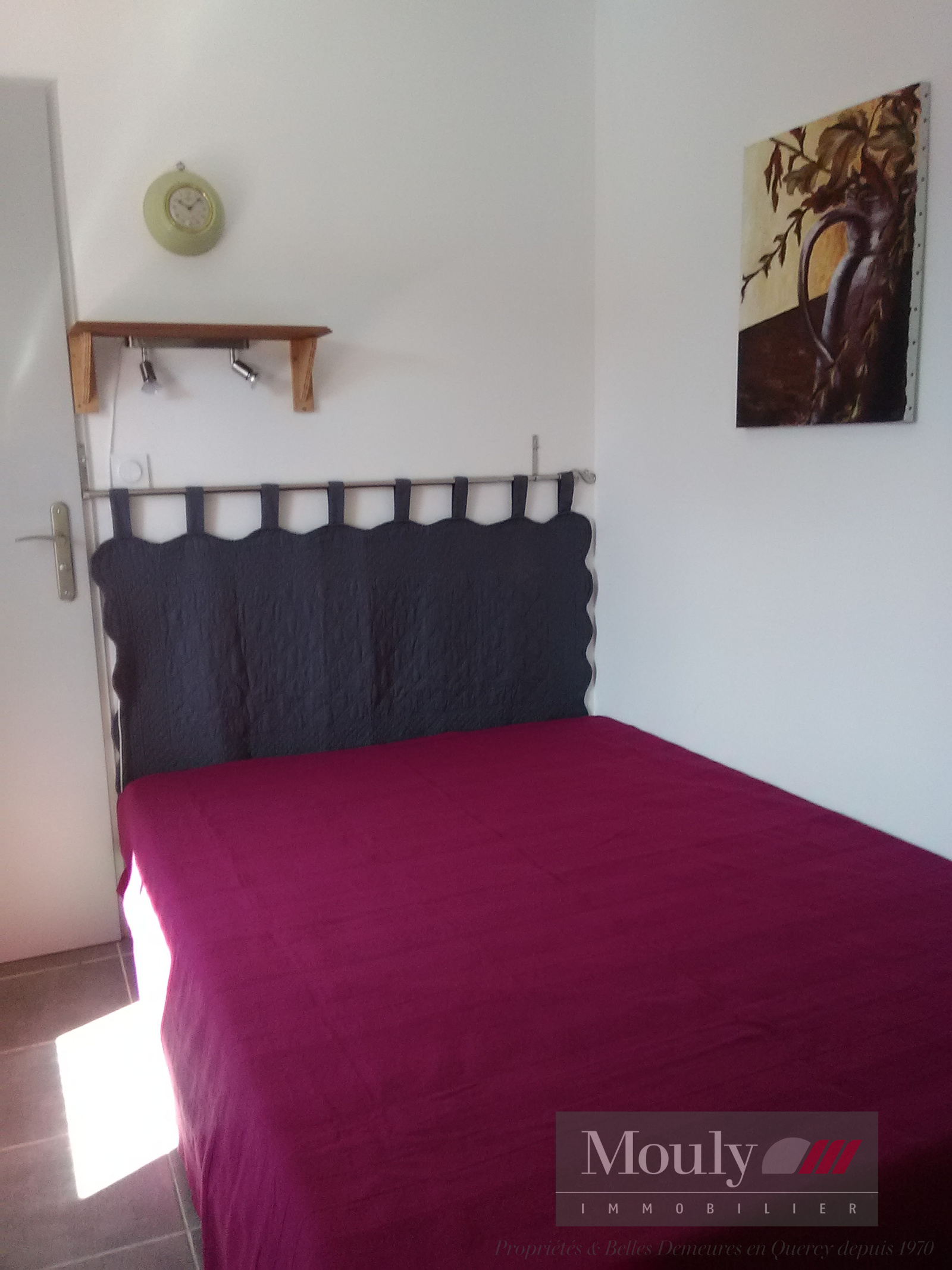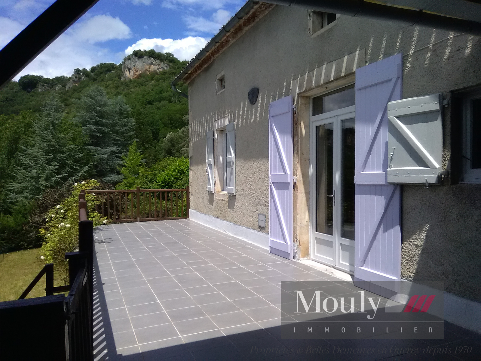 Nombreux placards, 2 caves, chauffage central au fuel, grande terrasse avec vue sur la vallée du Lot et le village, double vitrage récent.