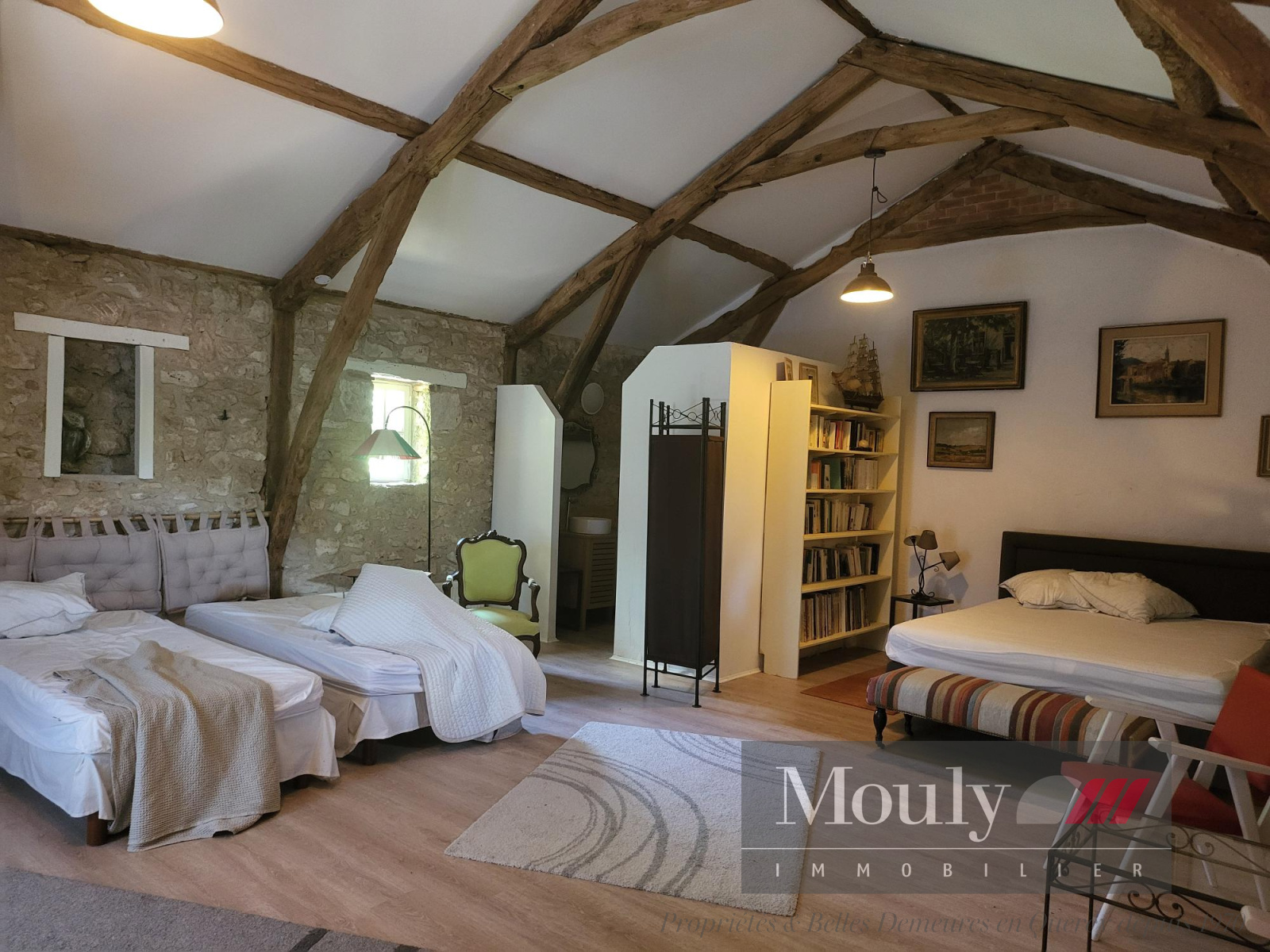 La grange, entièrement réaménagée, offre un bel espace de vie supplémentaire avec un total de 4 chambres. Son volume donne accès à de multiples usages, que ce soit pour des réceptions, ou même un atelier. À côté de la grange, l'ancien four à pain, magnifiquement rénové, est devenu un lieu convivial et unique, parfait pour des repas en famille ou des moments de détente.