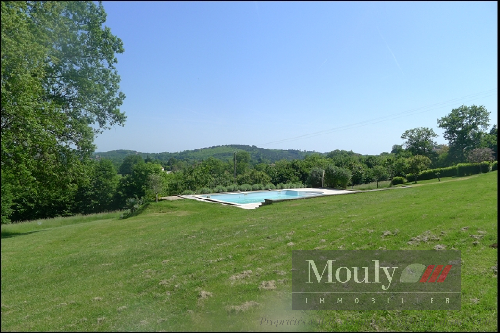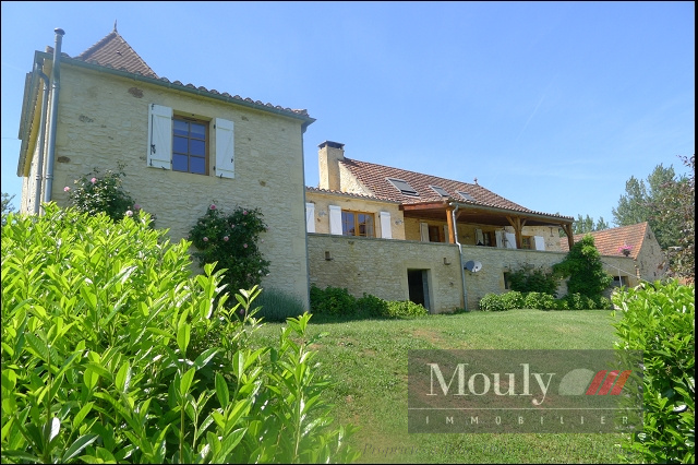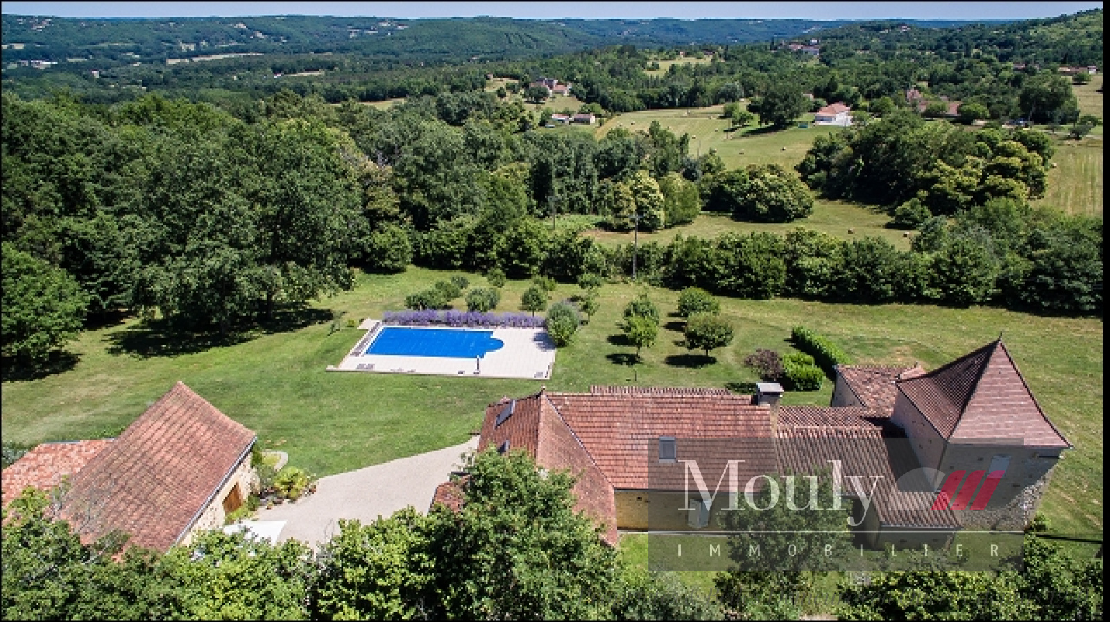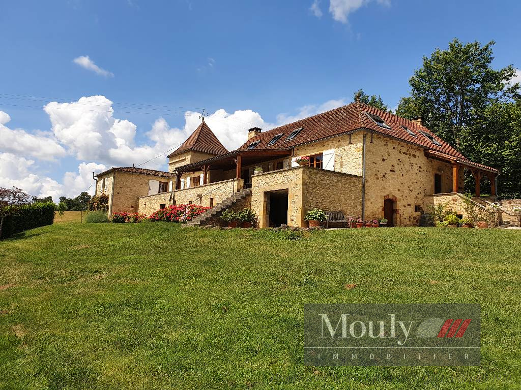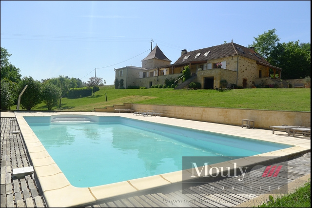 Au coeur de la campagne Périgourdine et proche d un joli village pitoresque , vous y trouverez toutes commodités et commerces à quelques kilomètres. Bâtie sur un site remarquable de 11,8 hectares, cette demeure de charme offre tout d'abord un magnifique point de vue et une restauration très soignée. Parc arboré avec belles prairies et bois de chênes, le paradis pour la cueillette de champignons durant la saison.. Beaucoup de charme et d'authenticité - Description : La maison principale en pierre vous séduira par ses généreux volumes (380 m² habitables) et sa restauration haut de gamme. La résidence se compose de 9 pièces principales avec cinq chambres dont une chambre principale de 25 m² type suite parentale avec dressing et bureau privatif dans le pigeonnier ainsi que 3 salles de bains. La cuisine principale bien équipée avec cheminée s'ouvre sur une belle salle à manger avec accès terrasse surplombant la vallée. Aussi vous trouverez un agréable salon de 50 m² en parquet de chêne avec belle cheminée donnant un accès sur la terrasse. Vous profiterez ainsi d'une superbe vue surplombant la vallée. Excellente exposition Sud, Sud/ouest, la maison bénéficie de plusieurs dépendances dont une grange aménageable, un garage pour plusieurs voitures ou matériel agricole ainsi que d?une serre. La propriété dispose d?un chauffage central au fuel. La piscine de 12m x 6m apporte sa note de fraîcheur à ce bel ensemble. Beaucoup de charme dans ce bel environnement verdoyant.