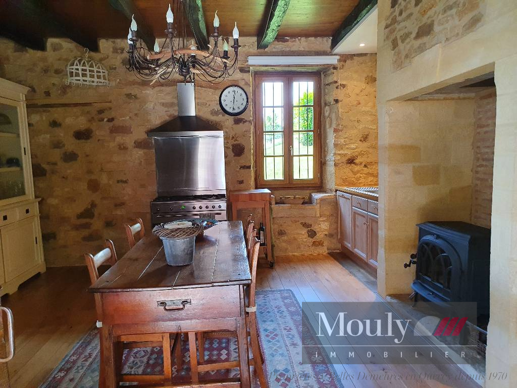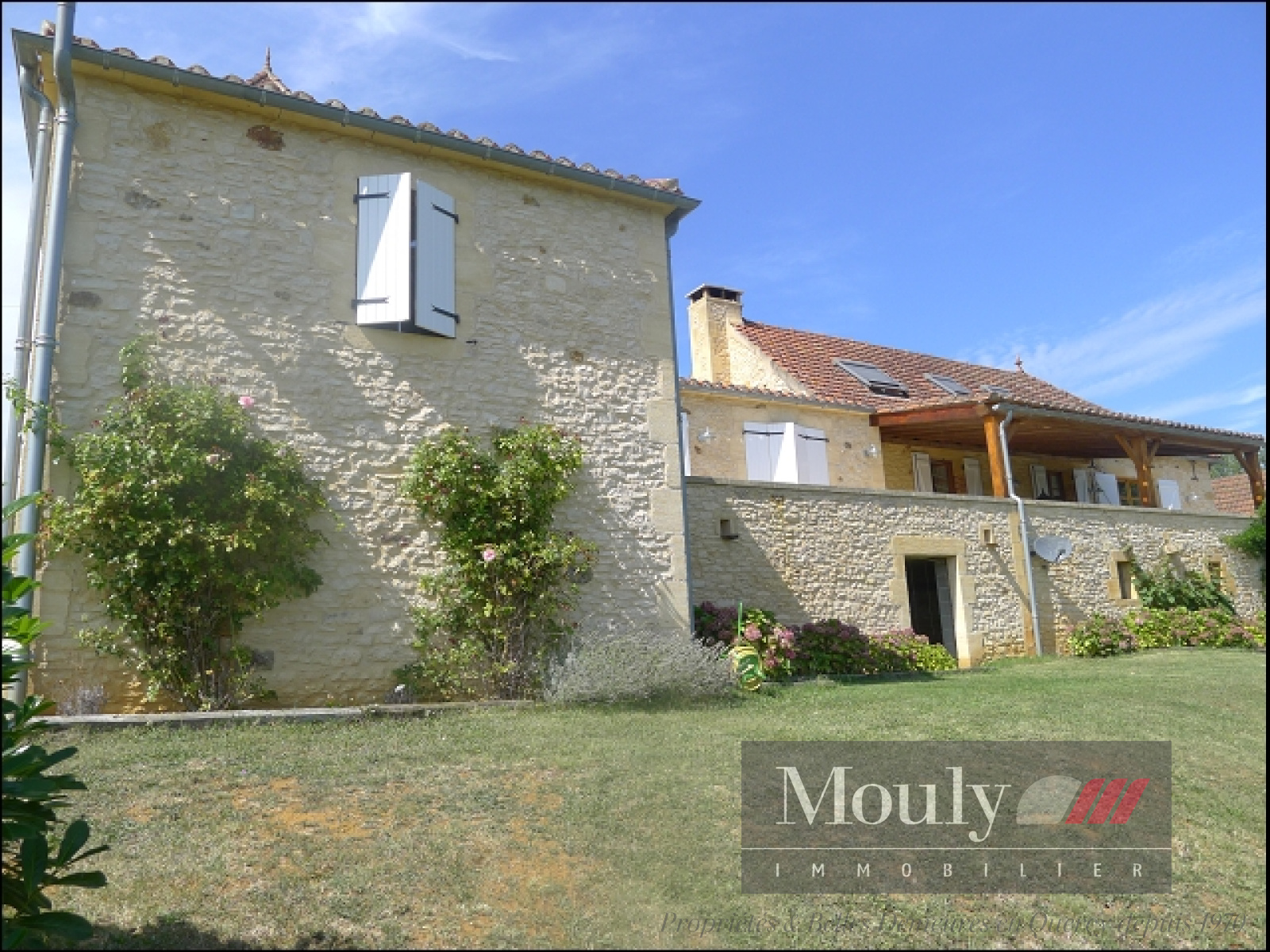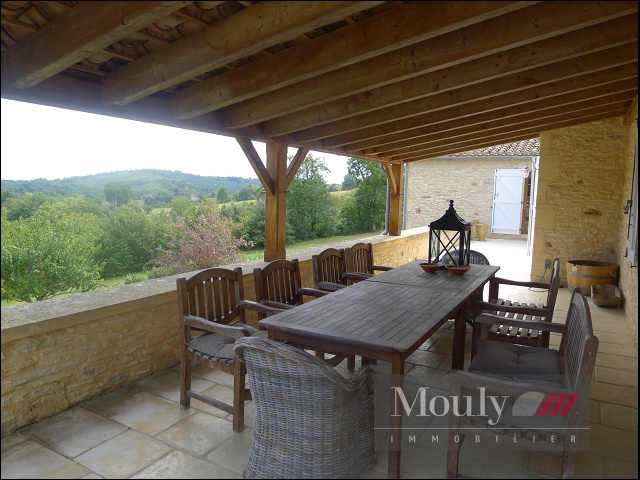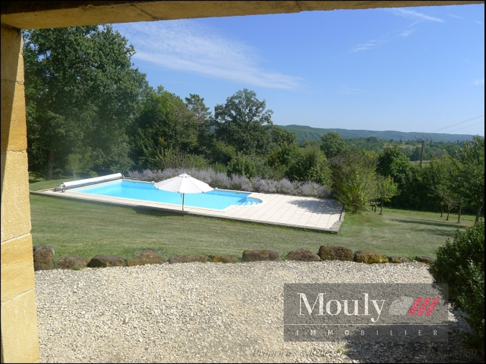 Au coeur de la campagne Périgourdine et proche d un joli village pitoresque , vous y trouverez toutes commodités et commerces à quelques kilomètres. Bâtie sur un site remarquable de 11,8 hectares, cette demeure de charme offre tout d'abord un magnifique point de vue et une restauration très soignée. Parc arboré avec belles prairies et bois de chênes, le paradis pour la cueillette de champignons durant la saison.. Beaucoup de charme et d'authenticité - Description : La maison principale en pierre vous séduira par ses généreux volumes (380 m² habitables) et sa restauration haut de gamme. La résidence se compose de 9 pièces principales avec cinq chambres dont une chambre principale de 25 m² type suite parentale avec dressing et bureau privatif dans le pigeonnier ainsi que 3 salles de bains. La cuisine principale bien équipée avec cheminée s'ouvre sur une belle salle à manger avec accès terrasse surplombant la vallée. Aussi vous trouverez un agréable salon de 50 m² en parquet de chêne avec belle cheminée donnant un accès sur la terrasse. Vous profiterez ainsi d'une superbe vue surplombant la vallée. Excellente exposition Sud, Sud/ouest, la maison bénéficie de plusieurs dépendances dont une grange aménageable, un garage pour plusieurs voitures ou matériel agricole ainsi que d?une serre. La propriété dispose d?un chauffage central au fuel. La piscine de 12m x 6m apporte sa note de fraîcheur à ce bel ensemble. Beaucoup de charme dans ce bel environnement verdoyant.
