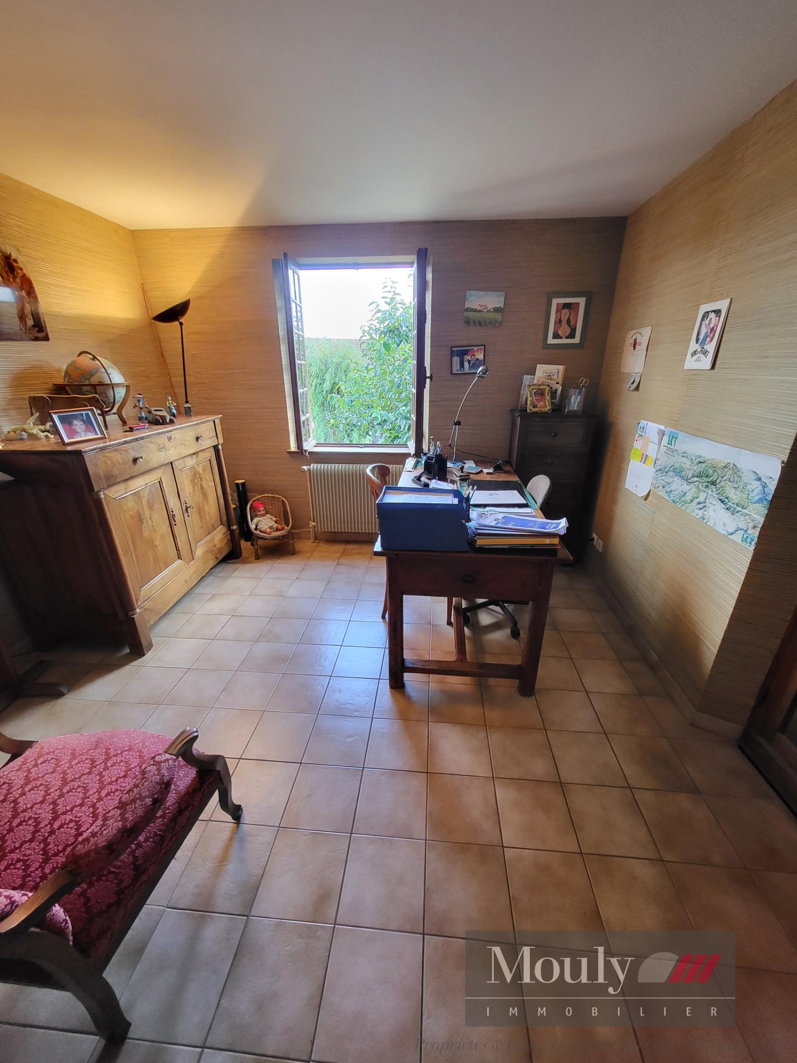 Cette propriété offre une belle salle à manger avec chauffage au sol et survitrage également un salon avec cheminée avec accès terrasse, une cuisine refaite il y a 20 ans, 3 chambres, 1 salle de douche et 1 bureau sur ce même niveau.