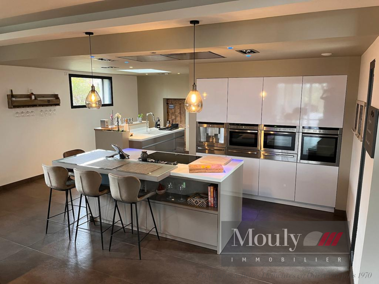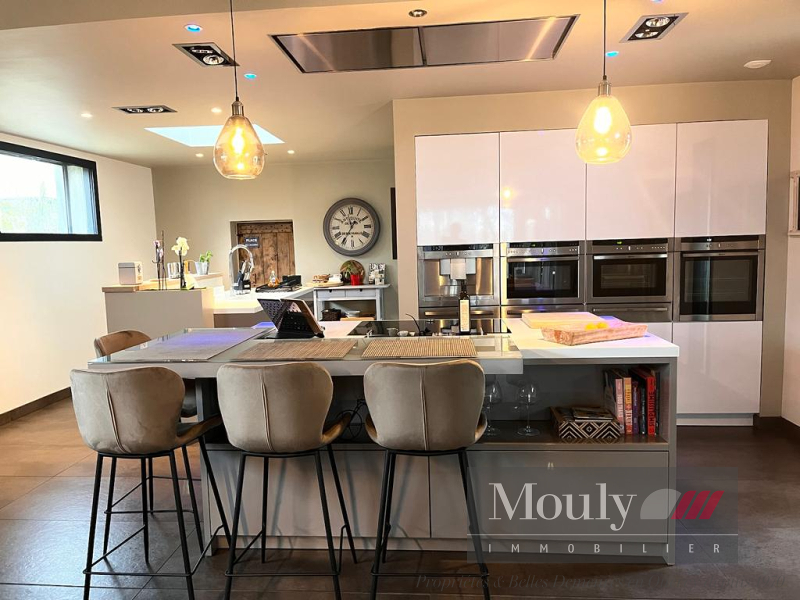 Espace de Vie Spacieux : Le rez-de-jardin comprend un vaste espace regroupant le séjour, le salon et la cuisine. La cuisine est équipée avec des matériaux de qualité, des finitions en corian et une baie vitrée à galandage, créant ainsi un espace de vie de 103 m².