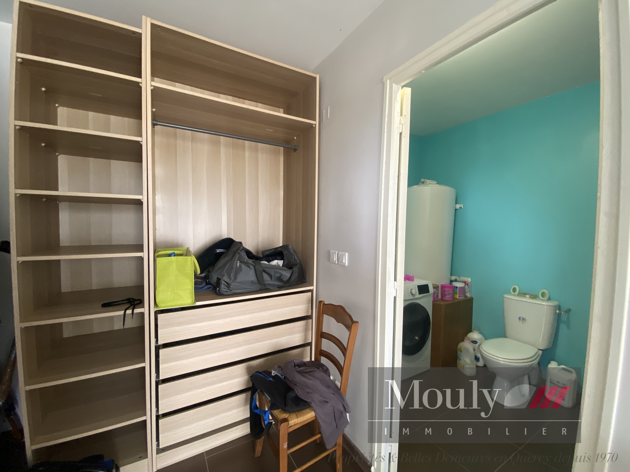 Une chambre avec dressing et salle d'eau.