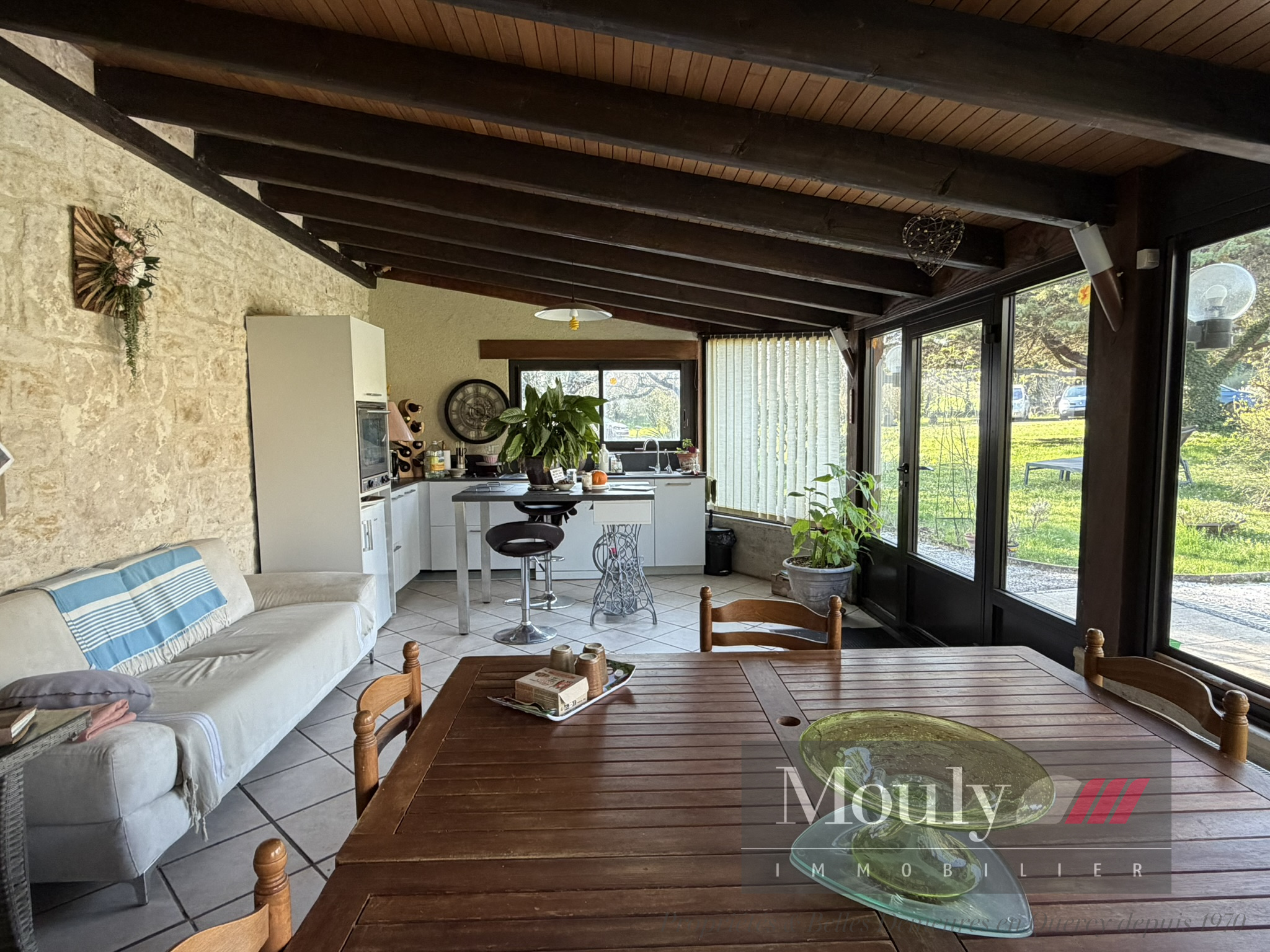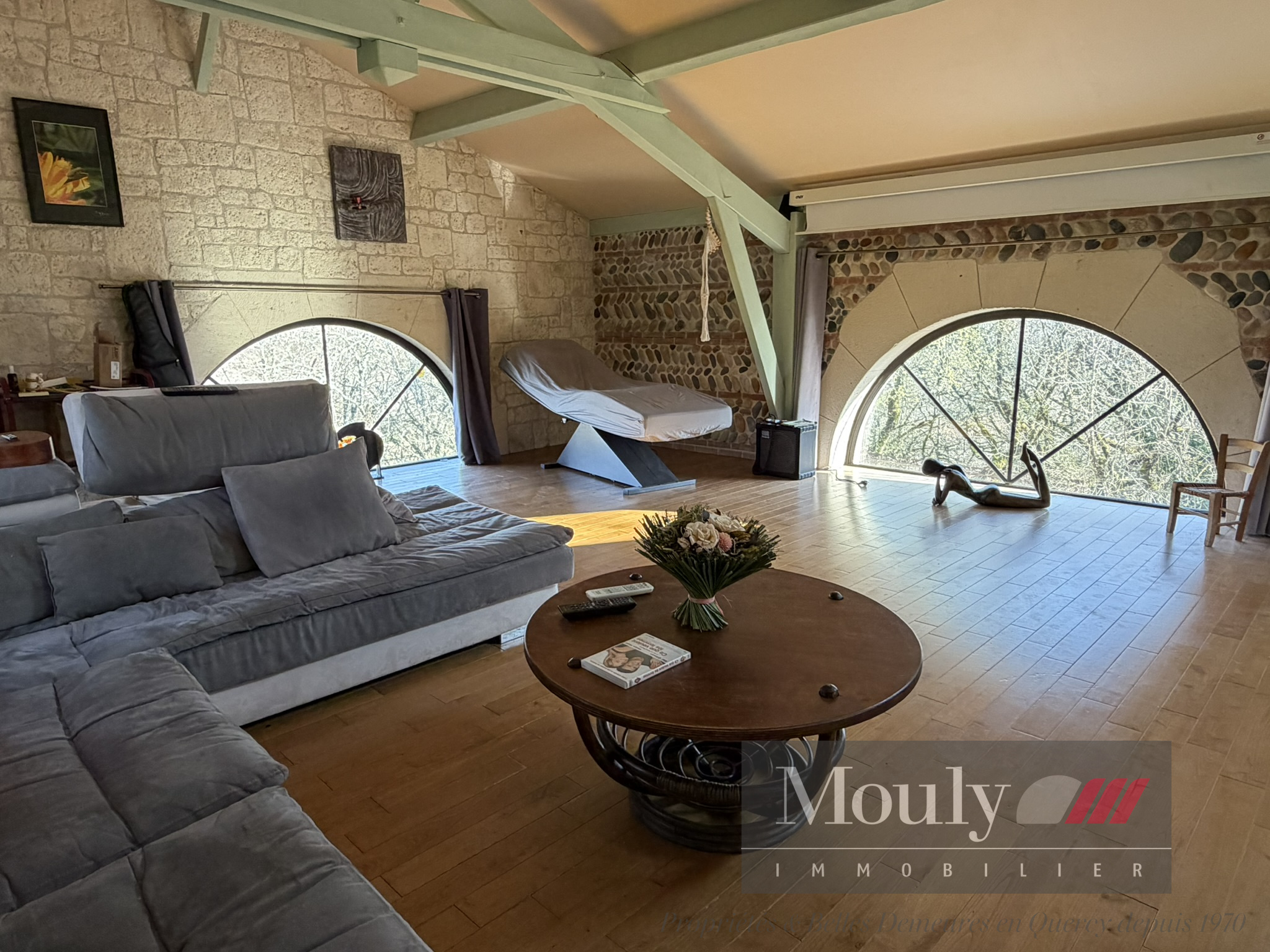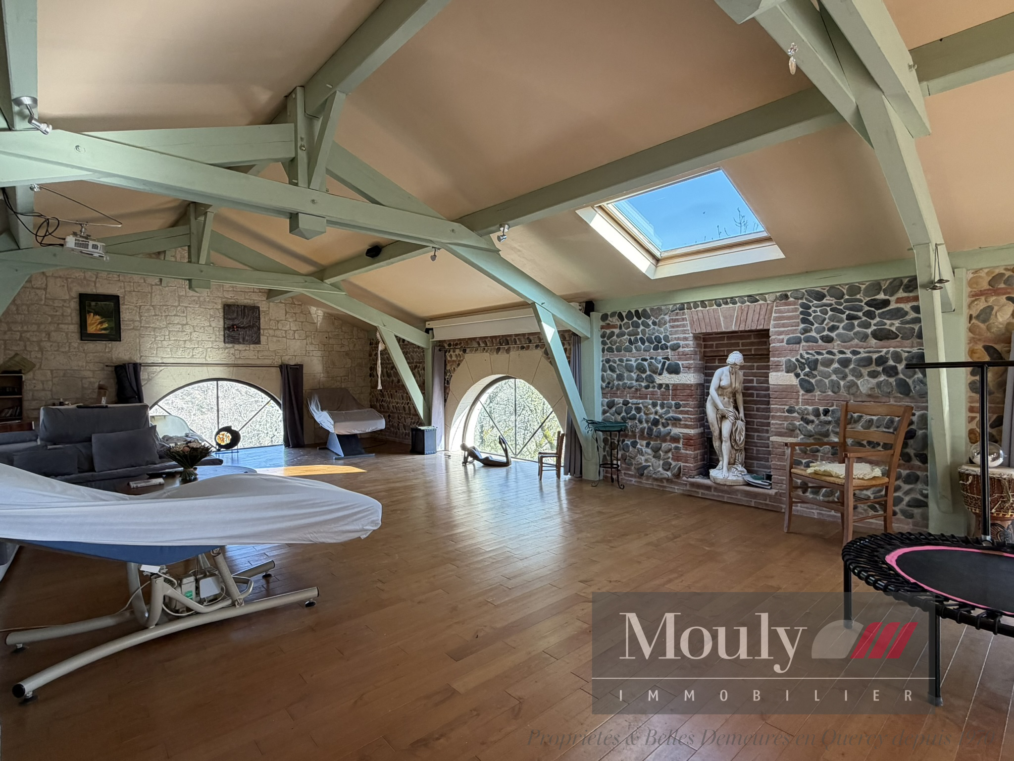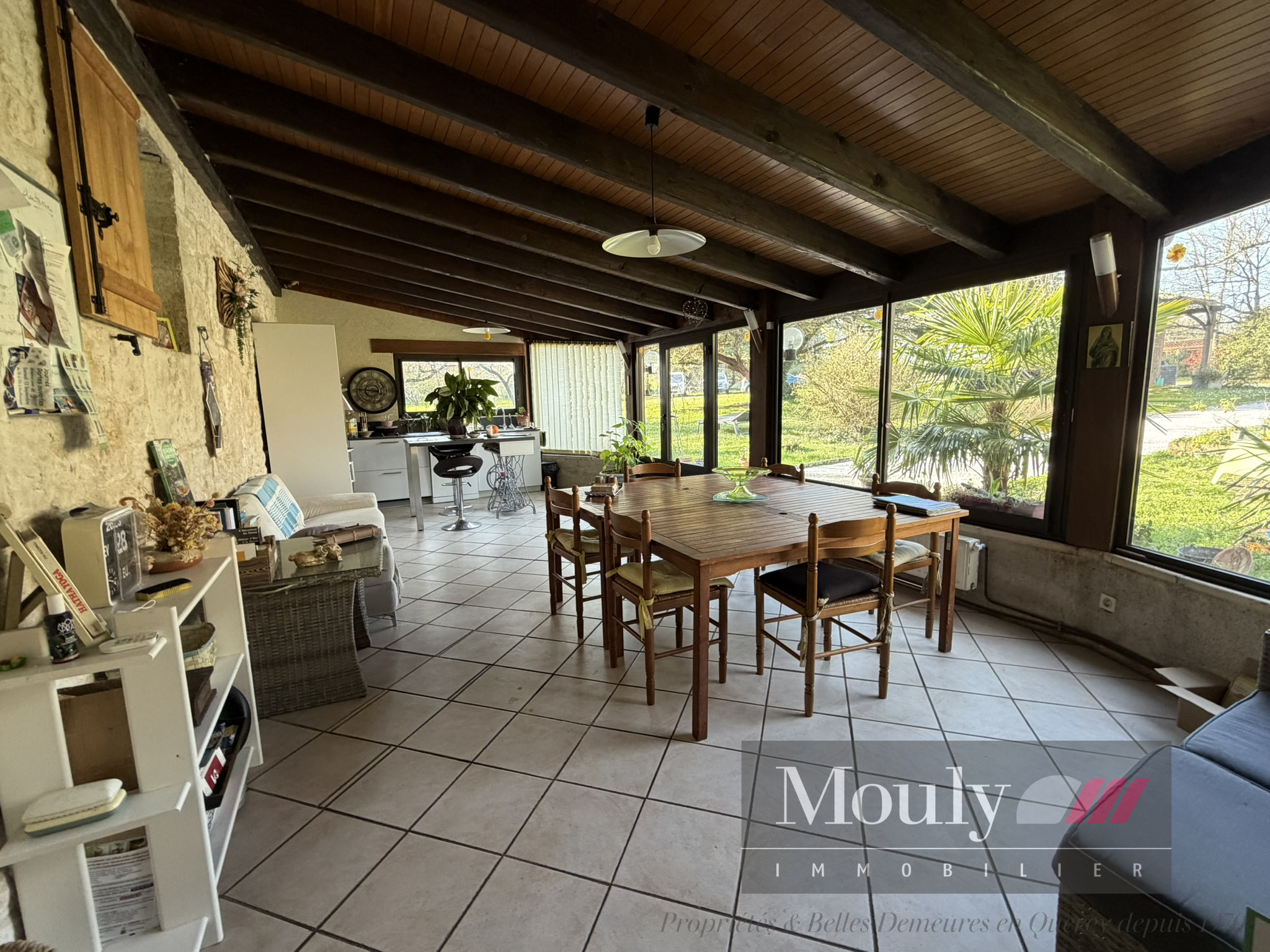 Nichée en position dominante, sans vis à vis, cette grande propriété de campagne offre un cadre naturel exceptionnel avec une vue dégagée sur le beau parc et les bois environnants. La maison Quercynoise a été agrandie avec goût et intelligence. Des vastes extensions, dont de belles terrasses fermées aménagés en cuisine, salon et séjour, créent des espaces de vie lumineux et généreux ouverts sur le jardin et un agrandissement des années 2000 comprenant deux très grandes pièces de 60 et 70 m2 la plus grande ouverte sur une spacieuse terrasse extérieure, idéale pour profiter du calme et de la nature.