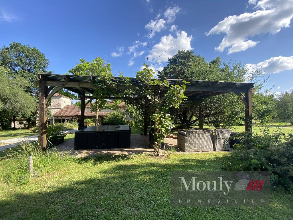 La propriété dispose également de plusieurs petites dépendances: un bâtiment de deux pièces avec terrasse, un chalet en bois, ainsi qu'un double garage. Une piscine vient compléter cet ensemble pour profiter pleinement des beaux jours dans un environnement paisible et préservé avec un beau jardin à l'orée des bois.