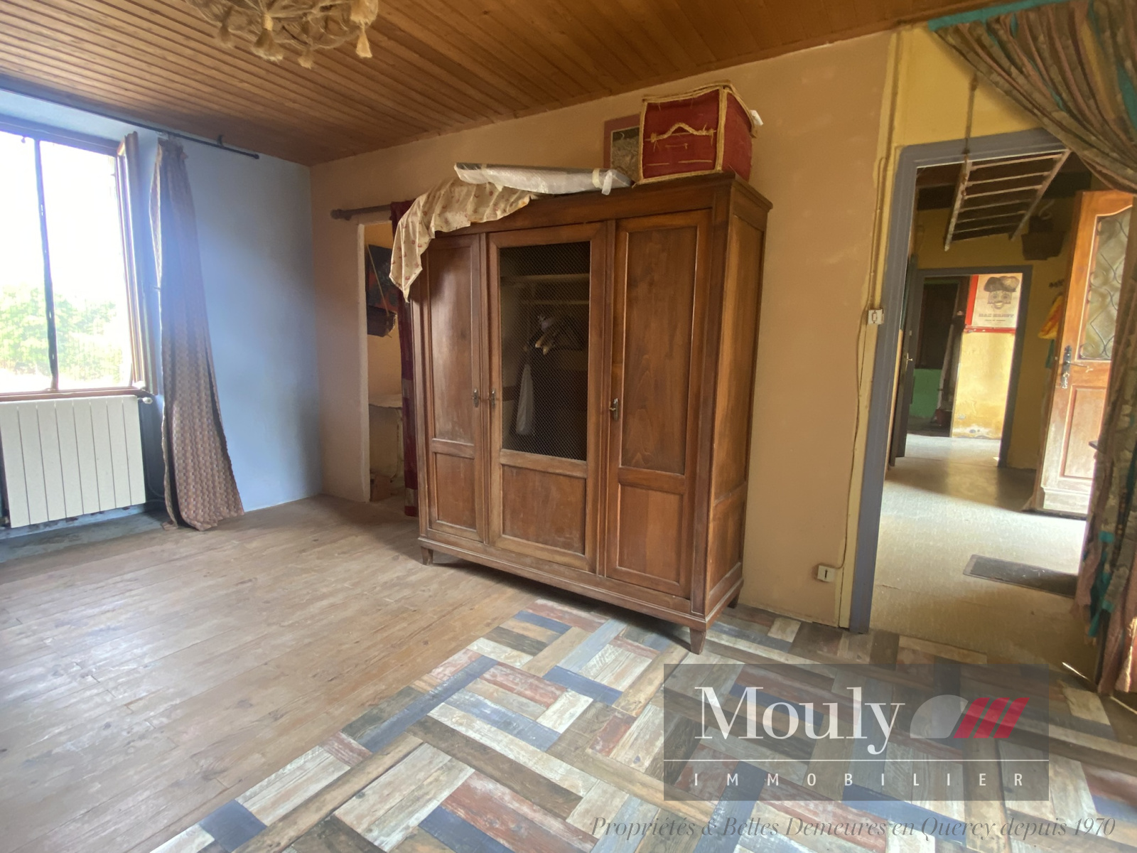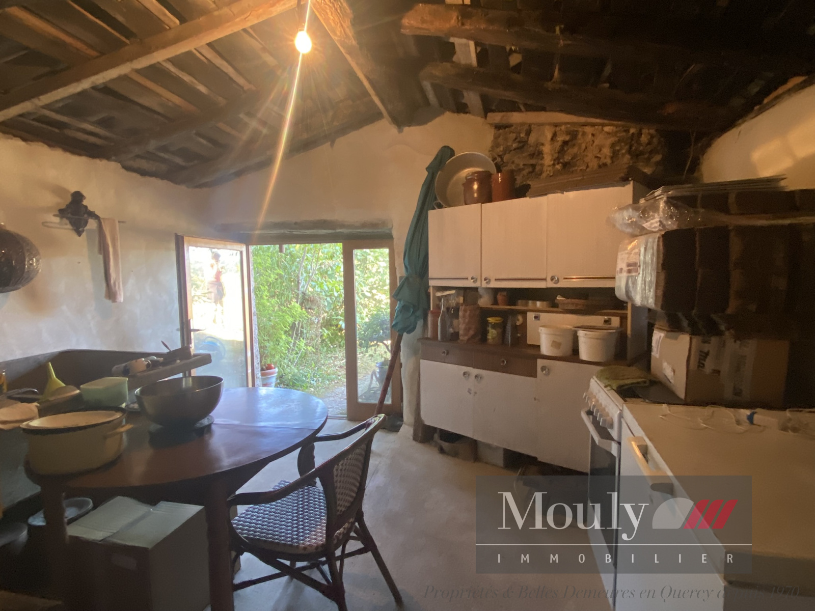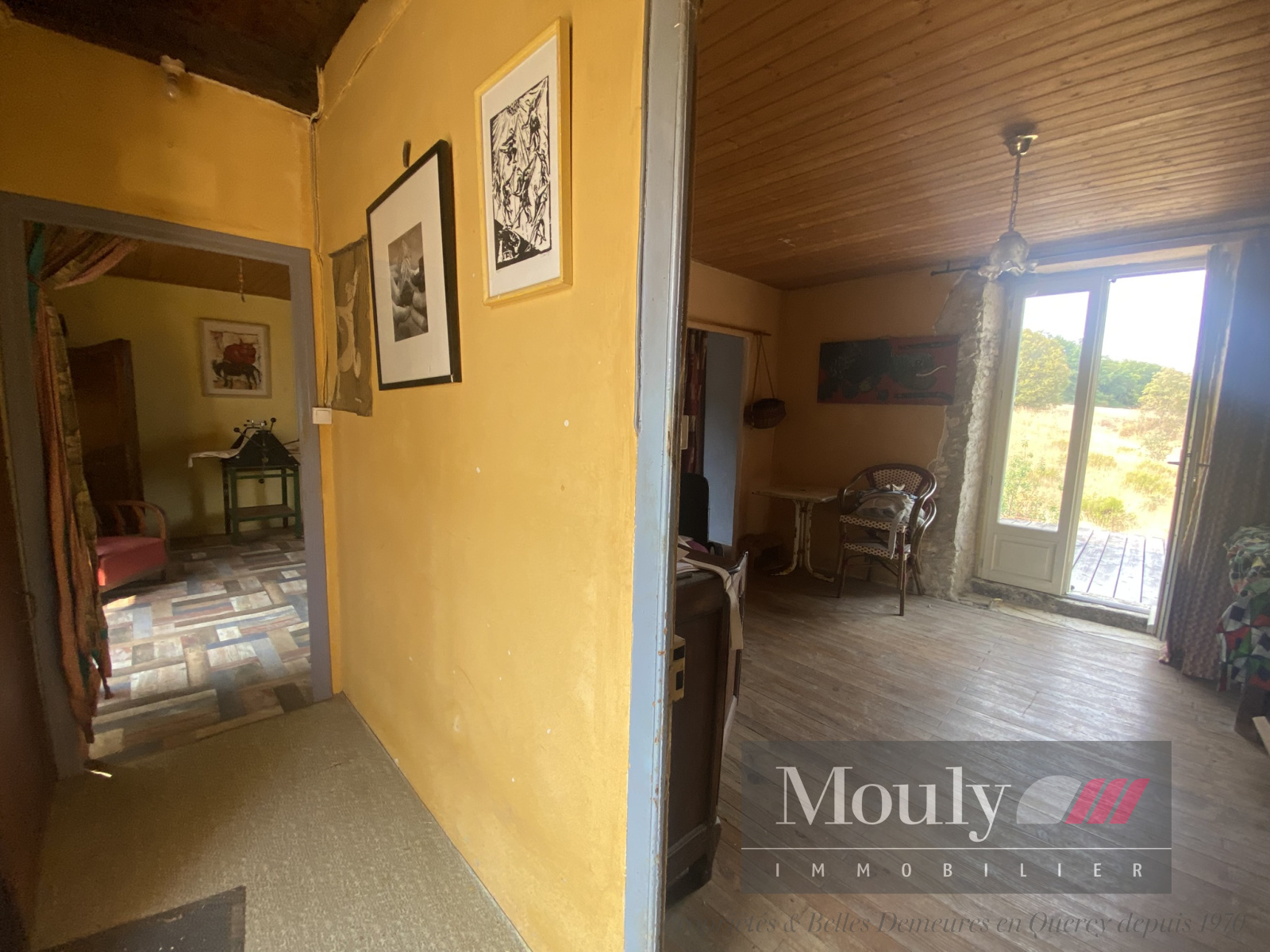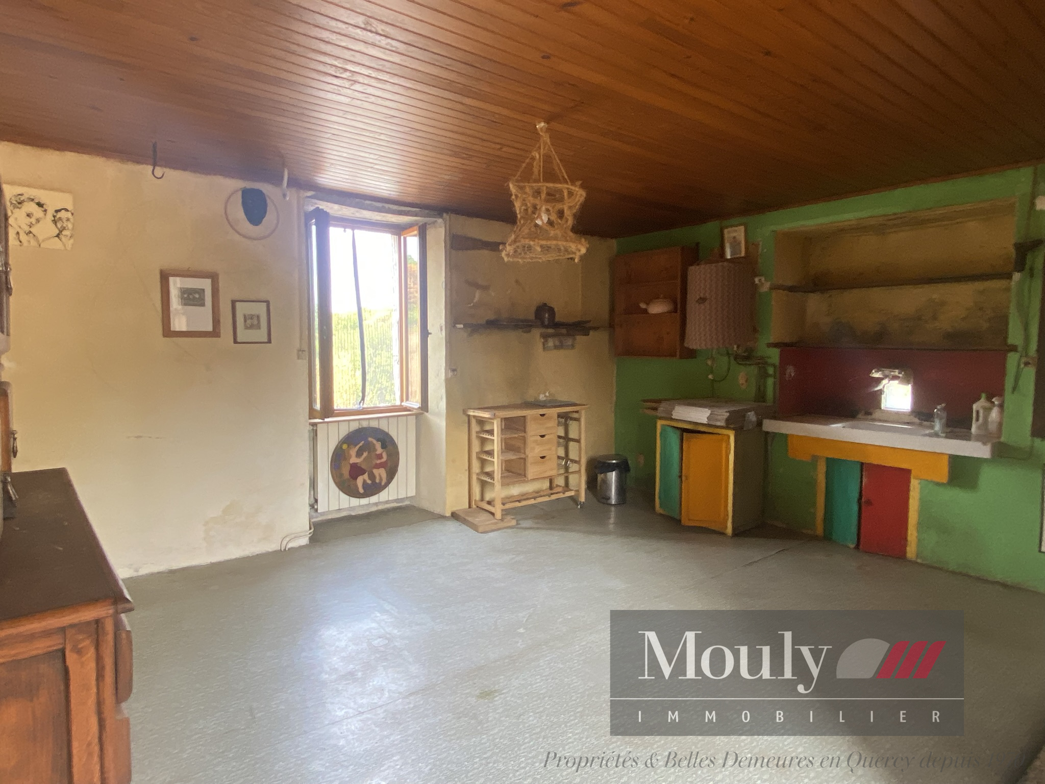 La petite Quercynoise comprend un couloir central et trois pièces principales avec une cheminée dans la cuisine, le tout sur cave.