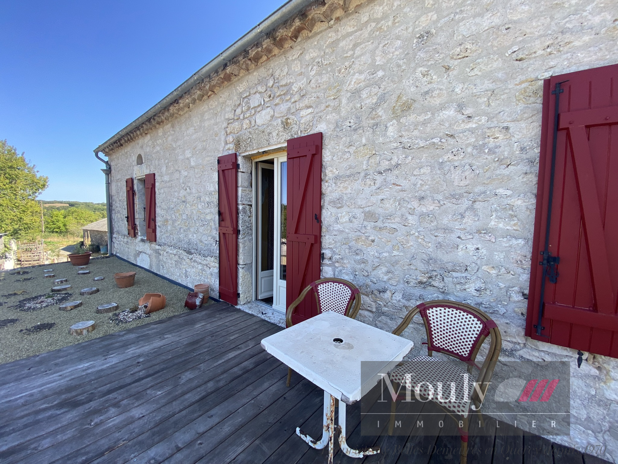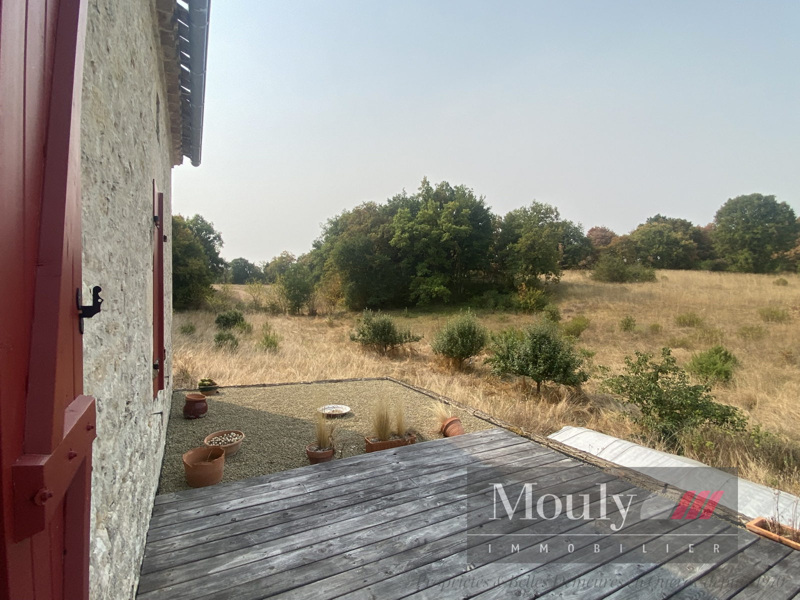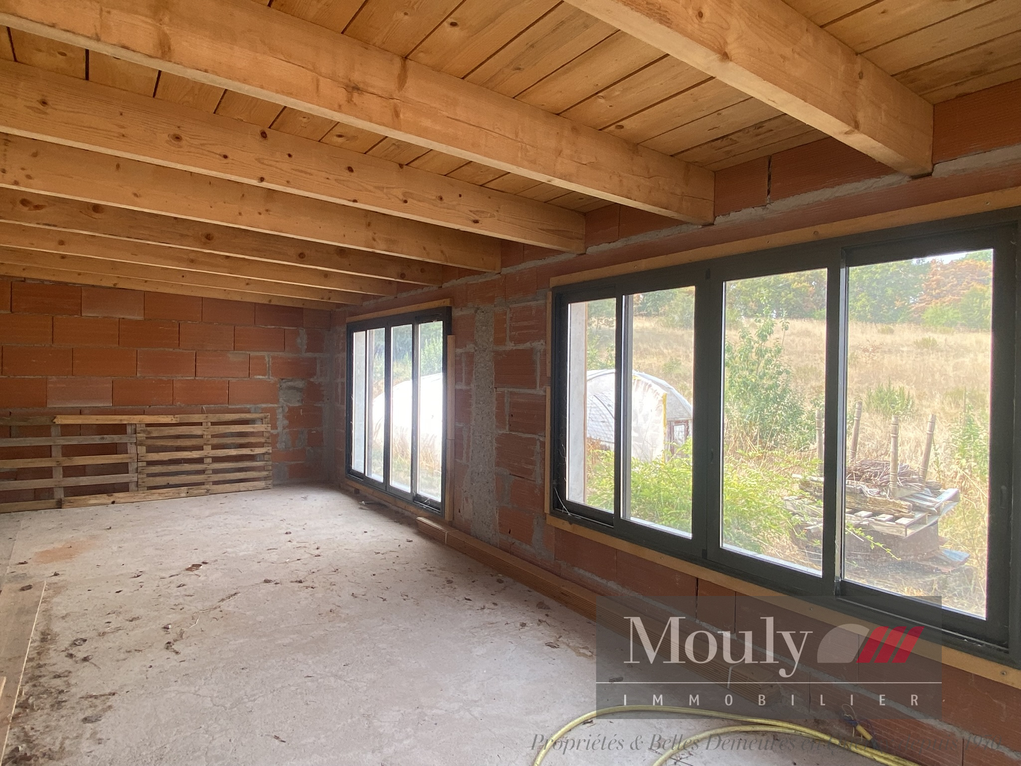 Une grande terrasse donne sur la nature et en dessous se trouve deux belles pièces donnant sur le jardin à aménager.