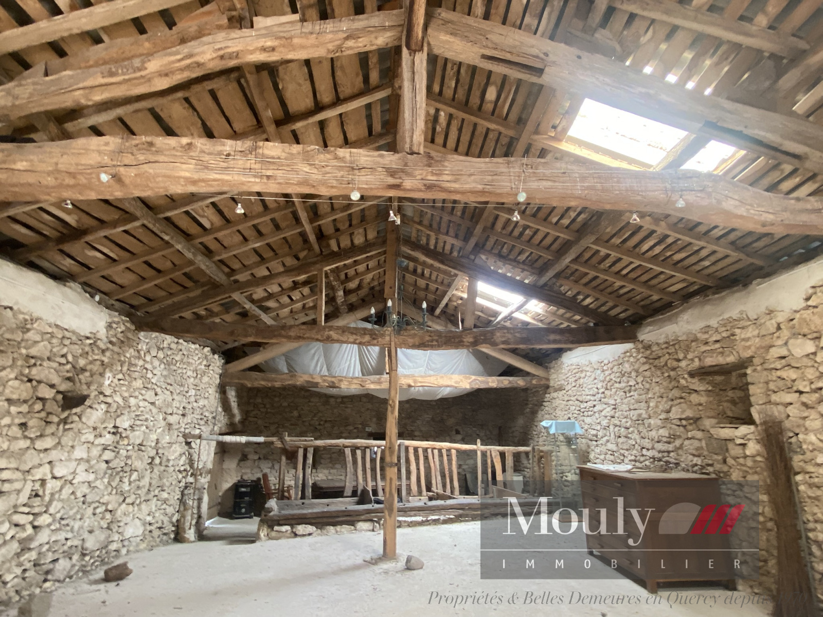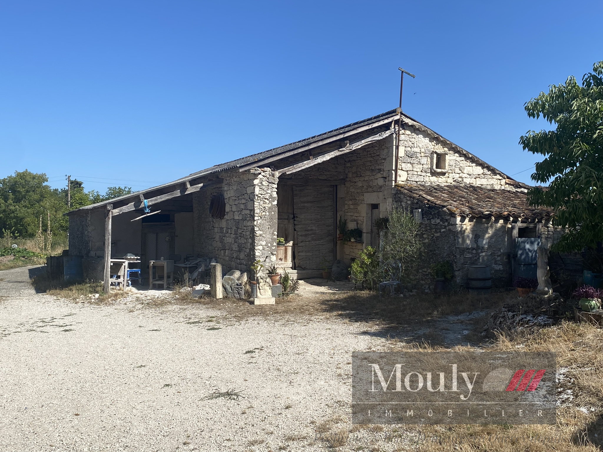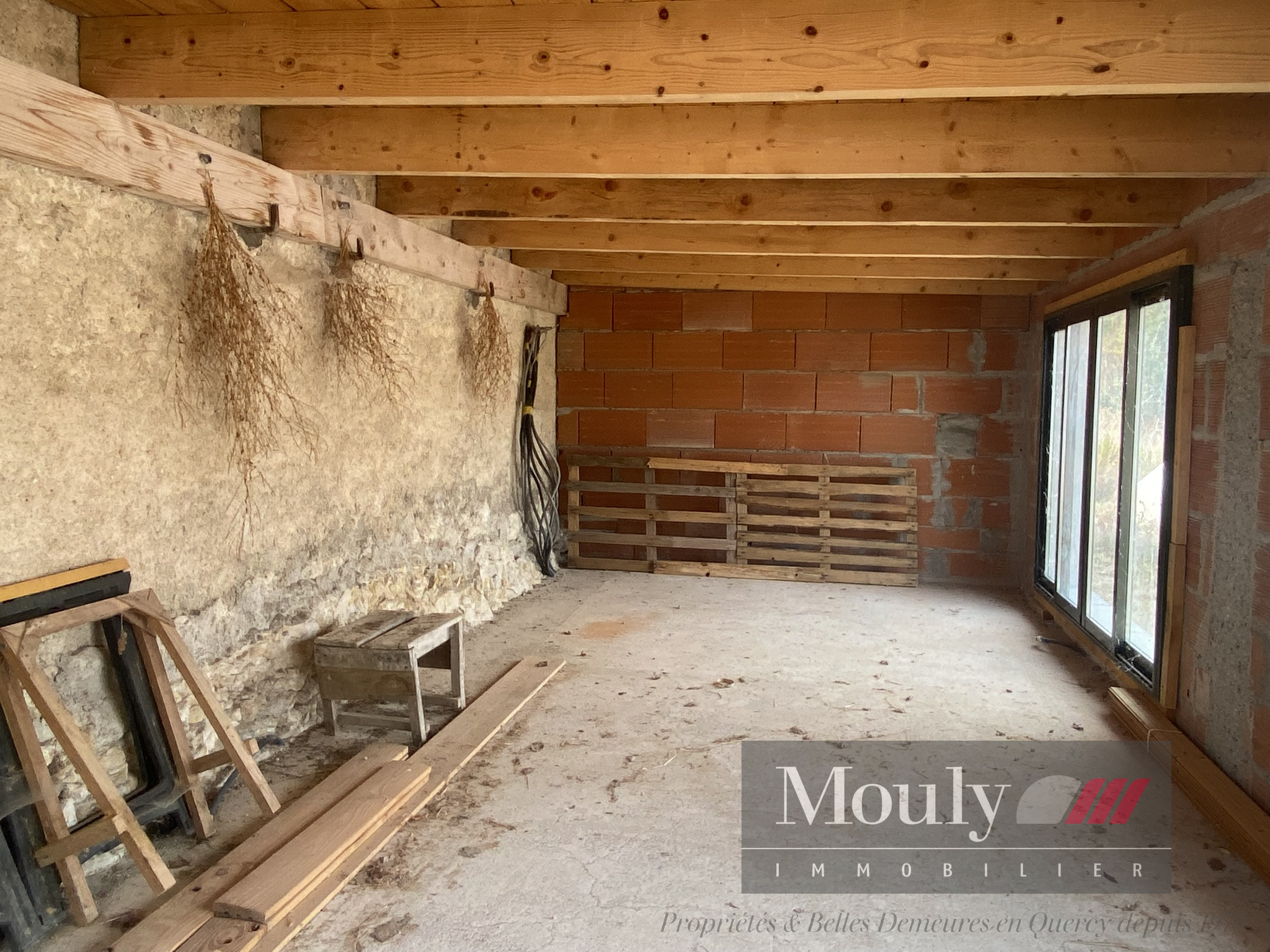 Une grande grange en pierre de plus de 100m2 de surface utile avec un appentis et des étables.