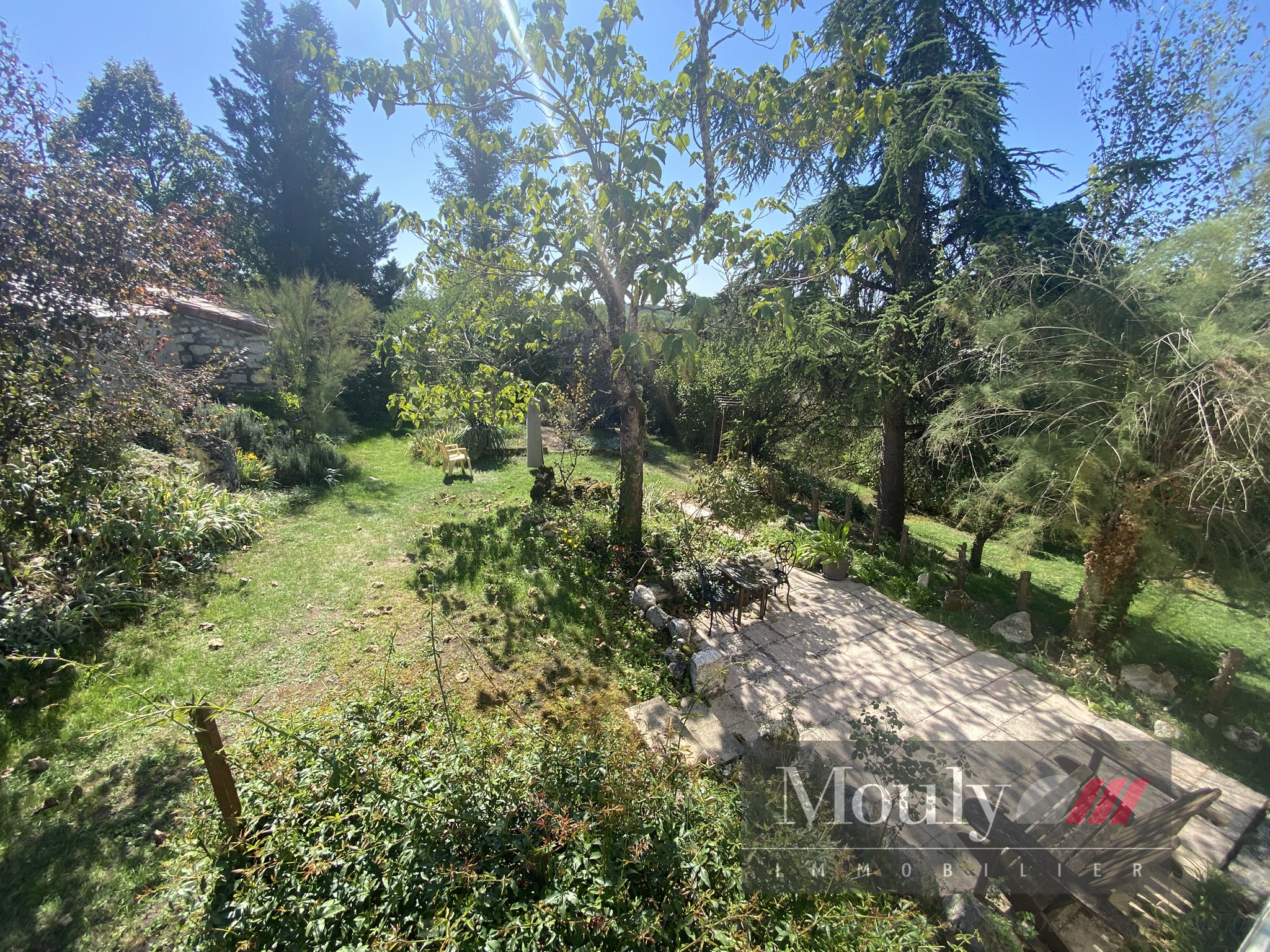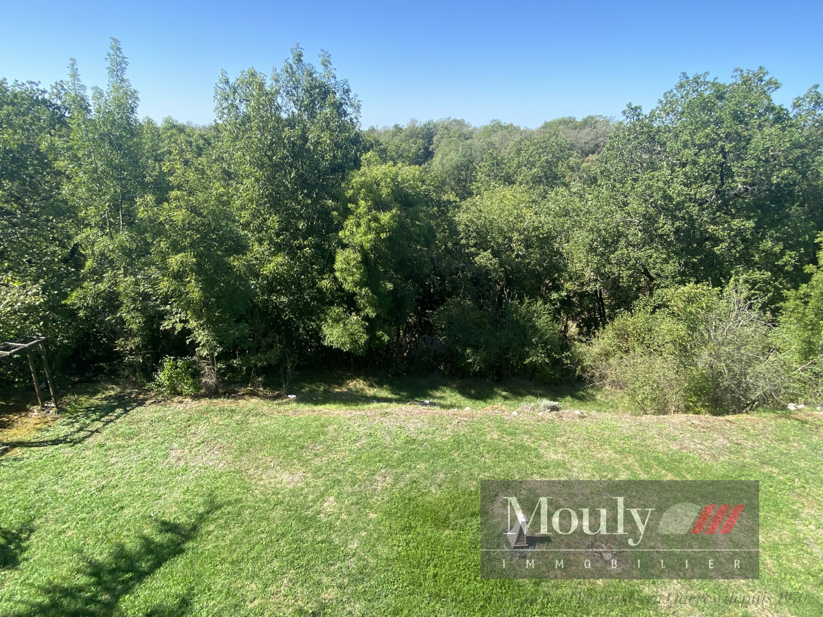 A l'extérieur, un joli jardin arboré et une terrasse en pierre offrent un cadre parfait pour profiter des beaux jours. La piscine avec ses deux bassins circulaires est parfaitement intégrée dans le jardin privé. Un terrain arboré en dessous de la piscine permettant d'ouvrir les vues sur la campagne.