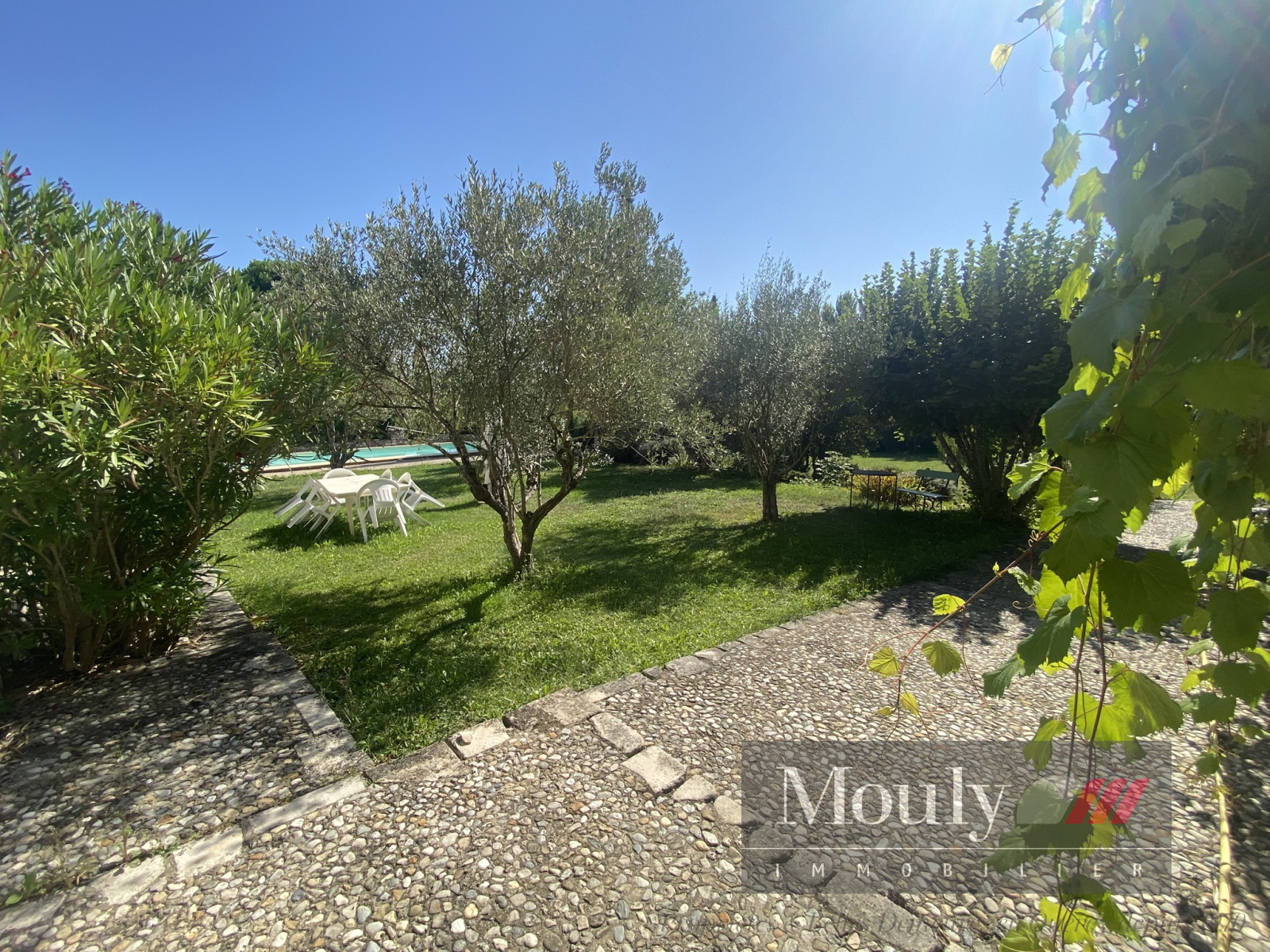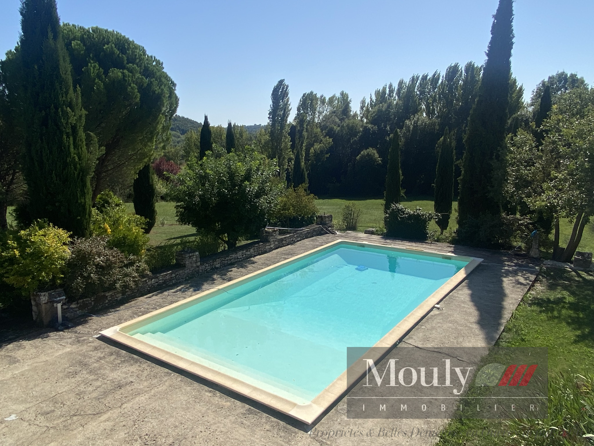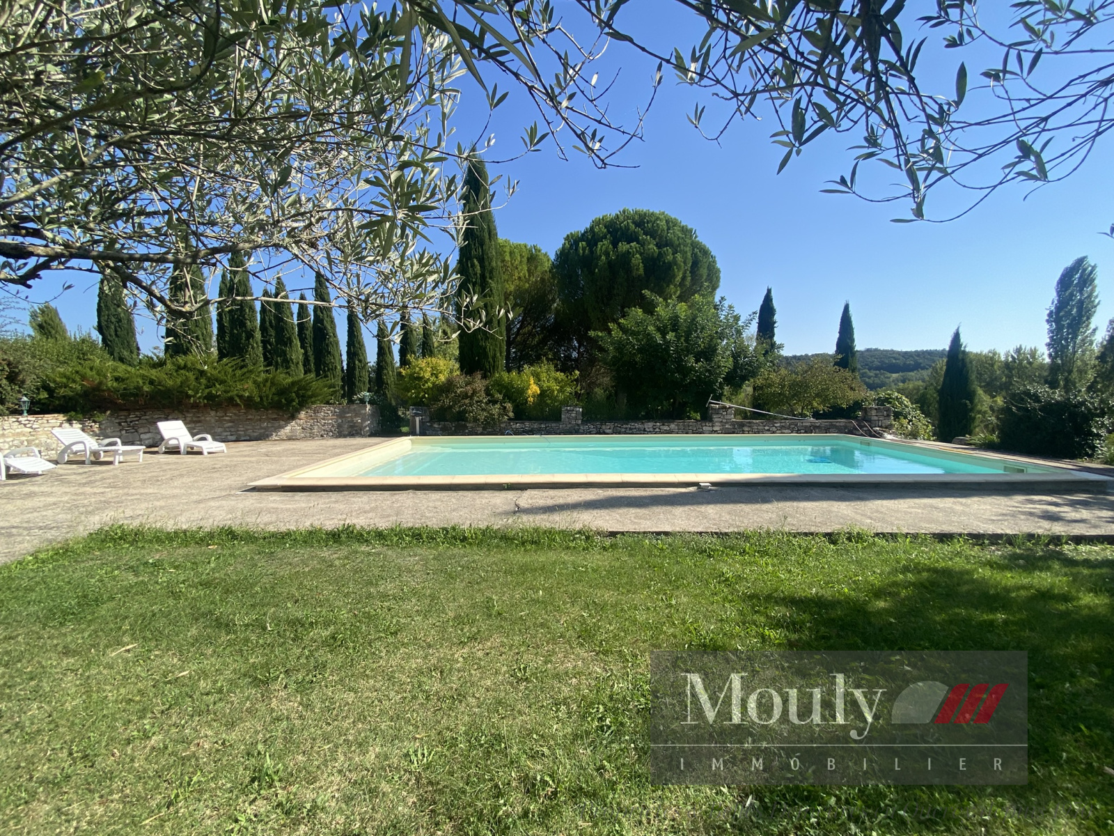 La première piscine de 12m x 6m se niche dans le jardin de la maison principale entourée d’oliviers et à proximité d’une très grande grange dans laquelle se trouve une belle salle avec cheminée et poutres magnifiques, parfait pour partager des repas de famille et faire des réunions.