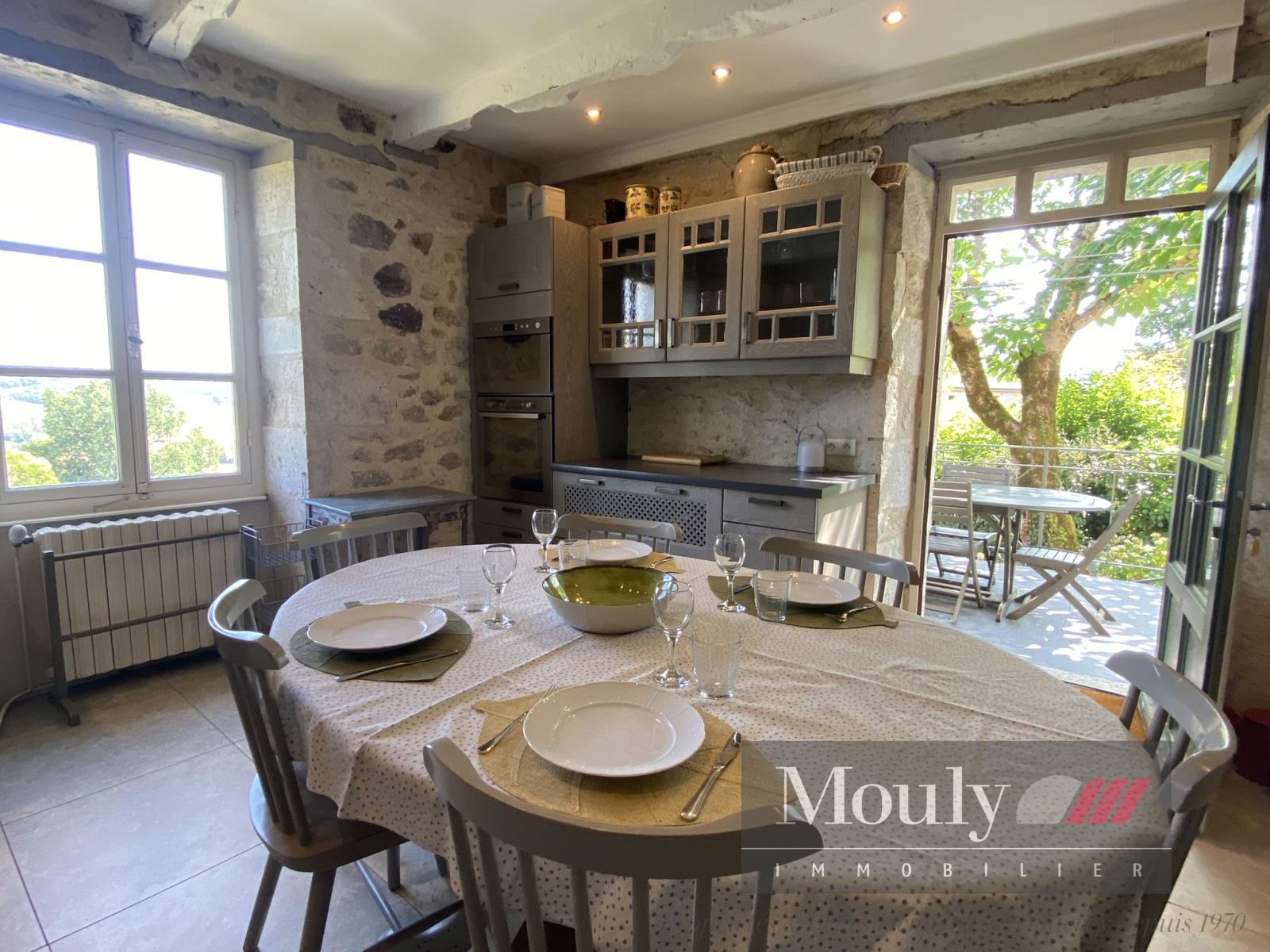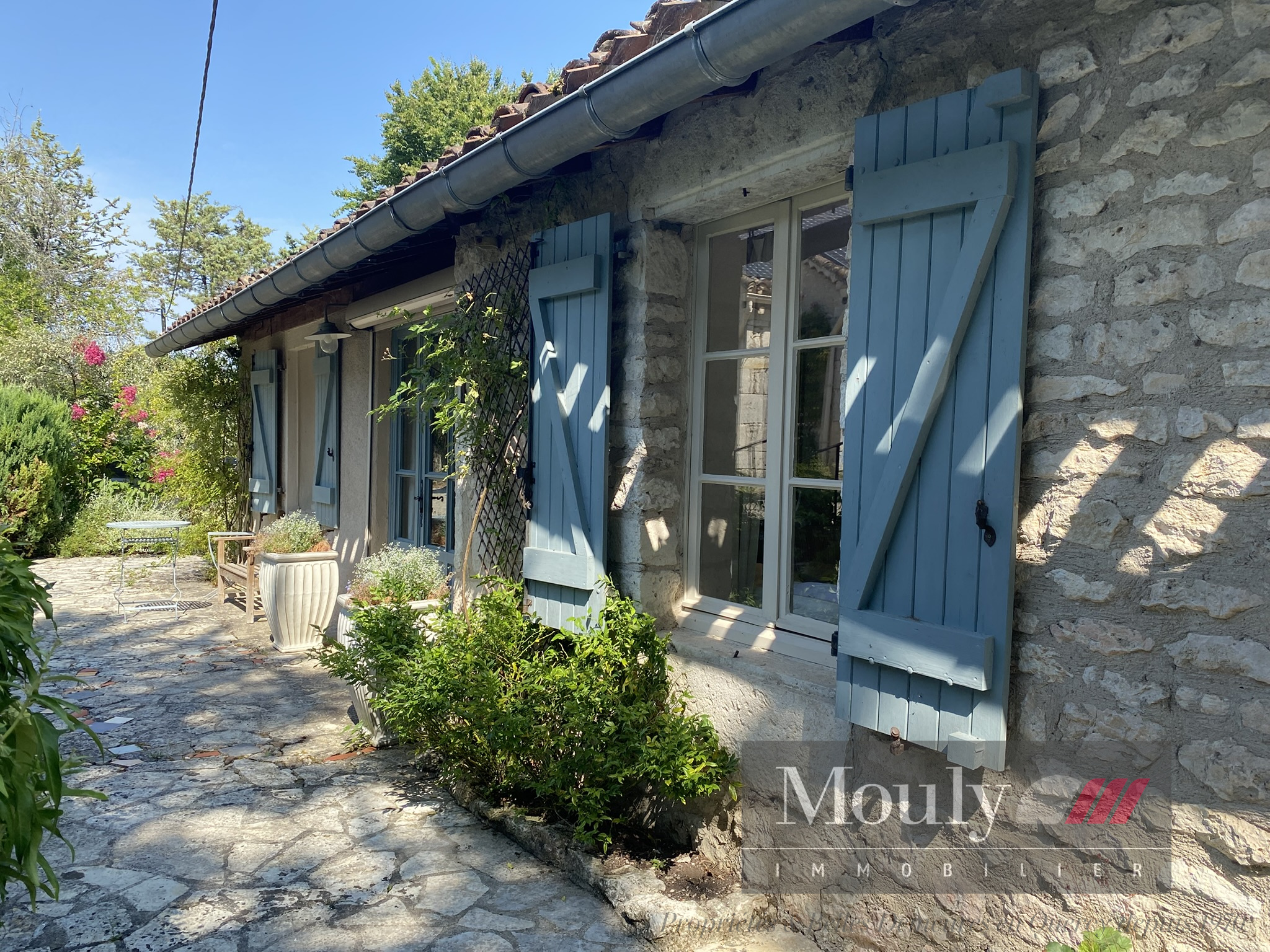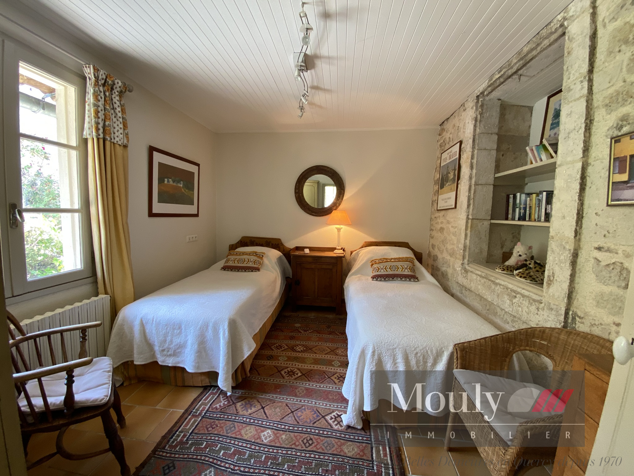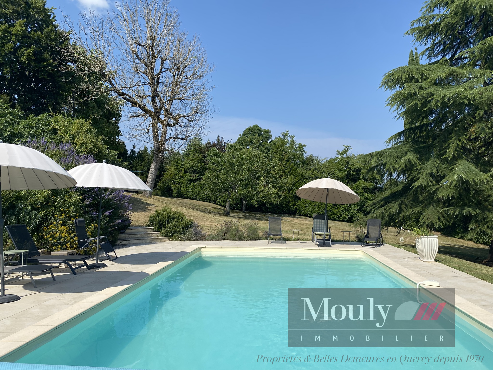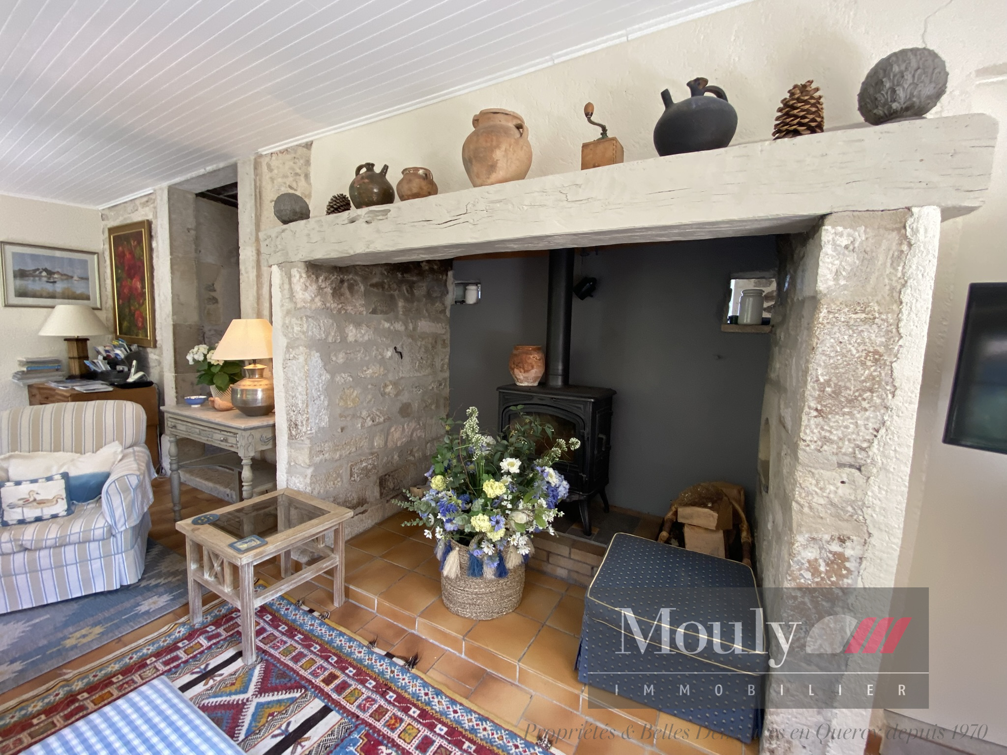 Une maison authentique qui séduit par sa vue dégagée, sa piscine ensoleillée, sa grange en pierre, et son jardin mature et richement planté. Chaque recoin invite à la détente - la terrasse repas, la terrasse séjour ombragée, la belle plage de la piscine, le coin jeu dans la grange.