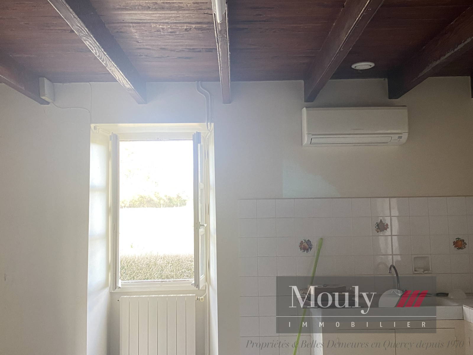 Quercynoise sur caves, dont une belle cave voutée. Une grange en pierre d'environ 140m2 au sol, un garage en parpaings.