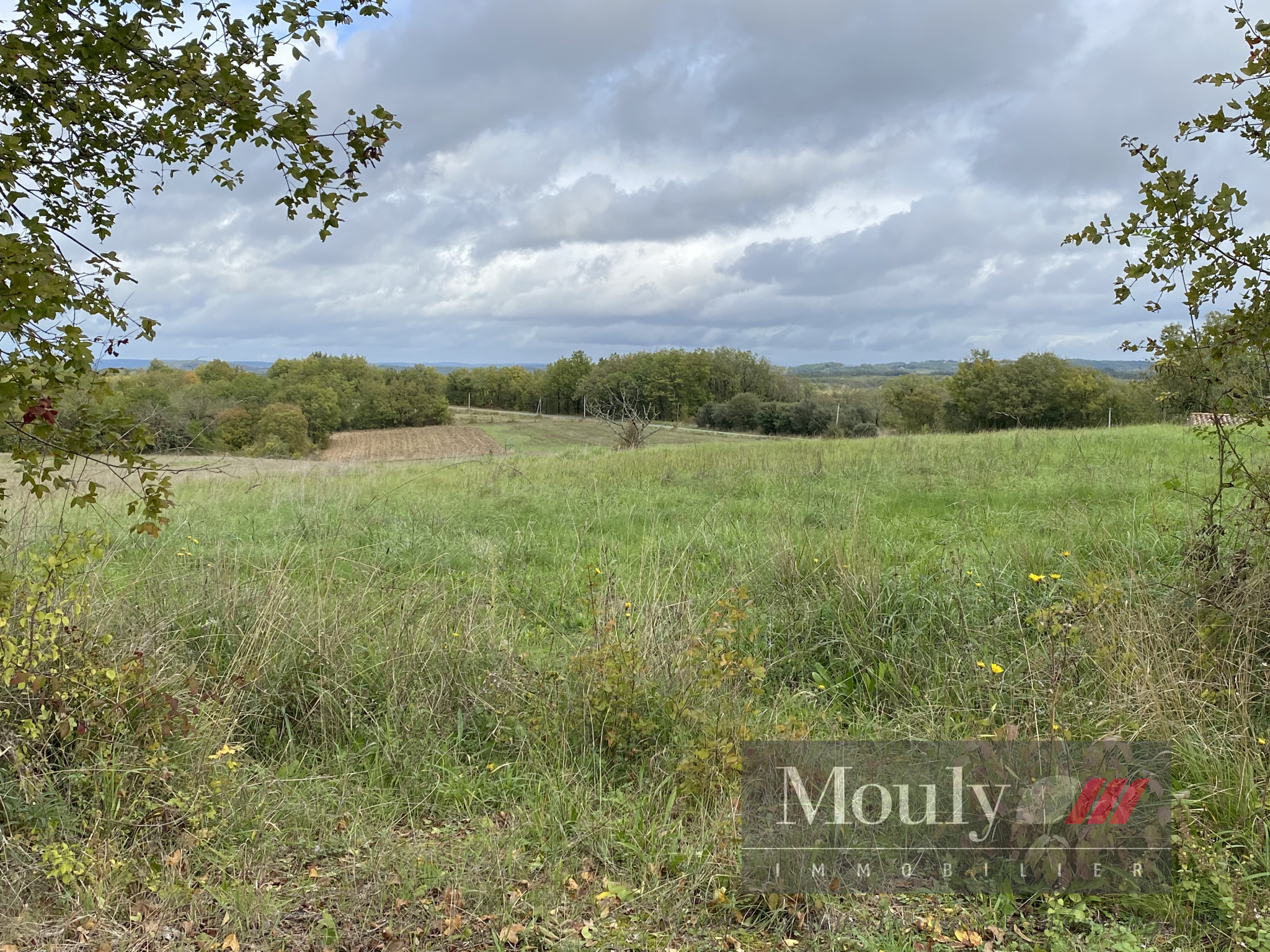 Un terrain constructible de 1 800 m2 situé à 15 minutes de Montcuq, en hauteur et offrant une vue dégagée et dominante sur la campagne environnante.