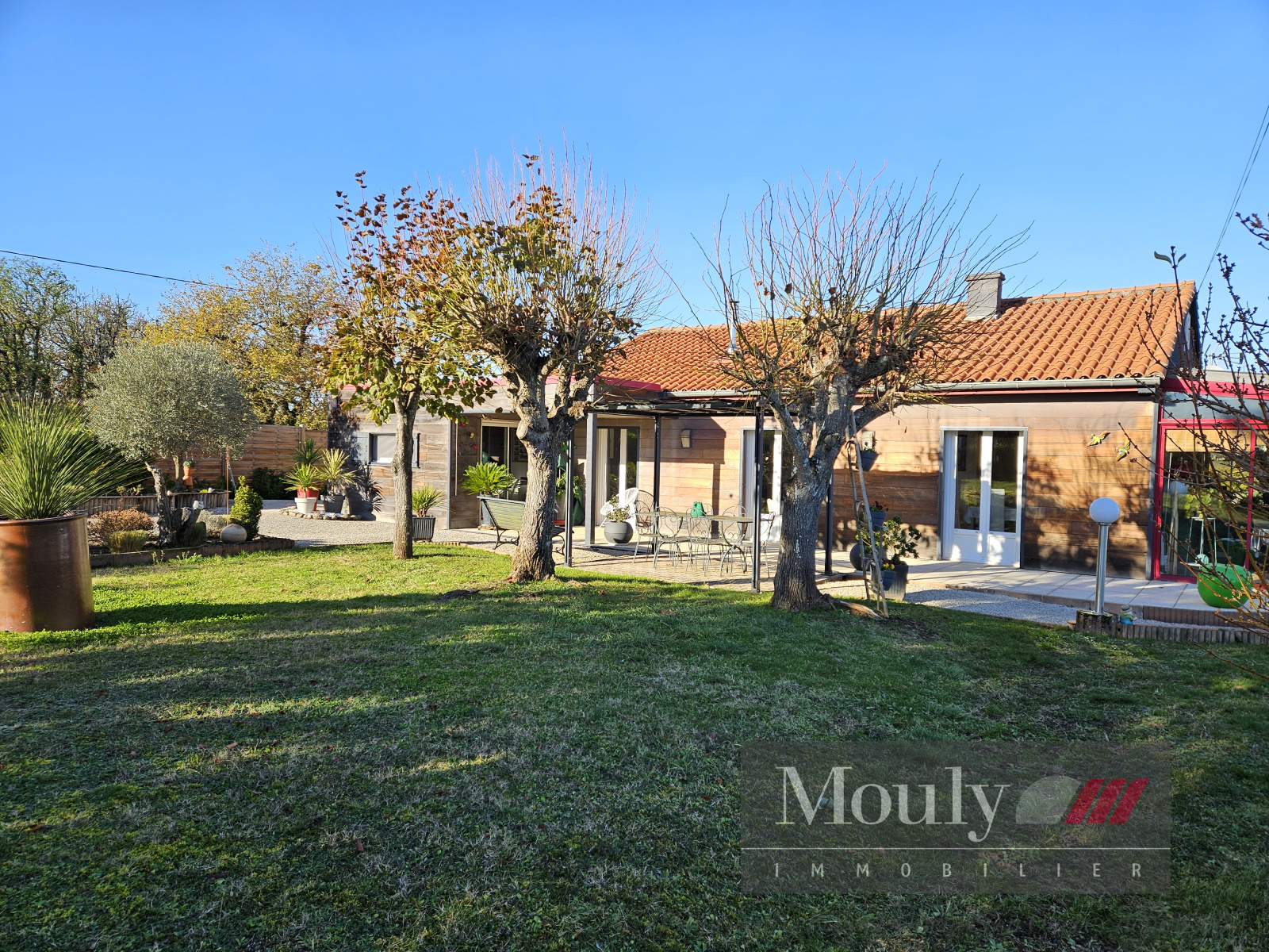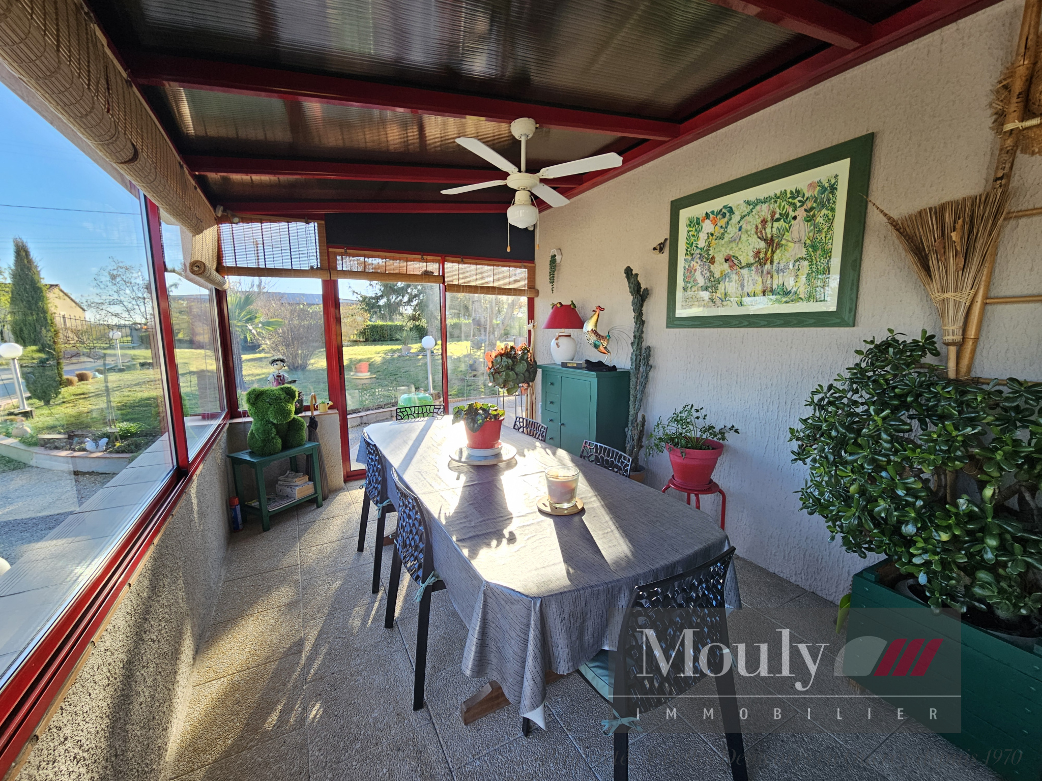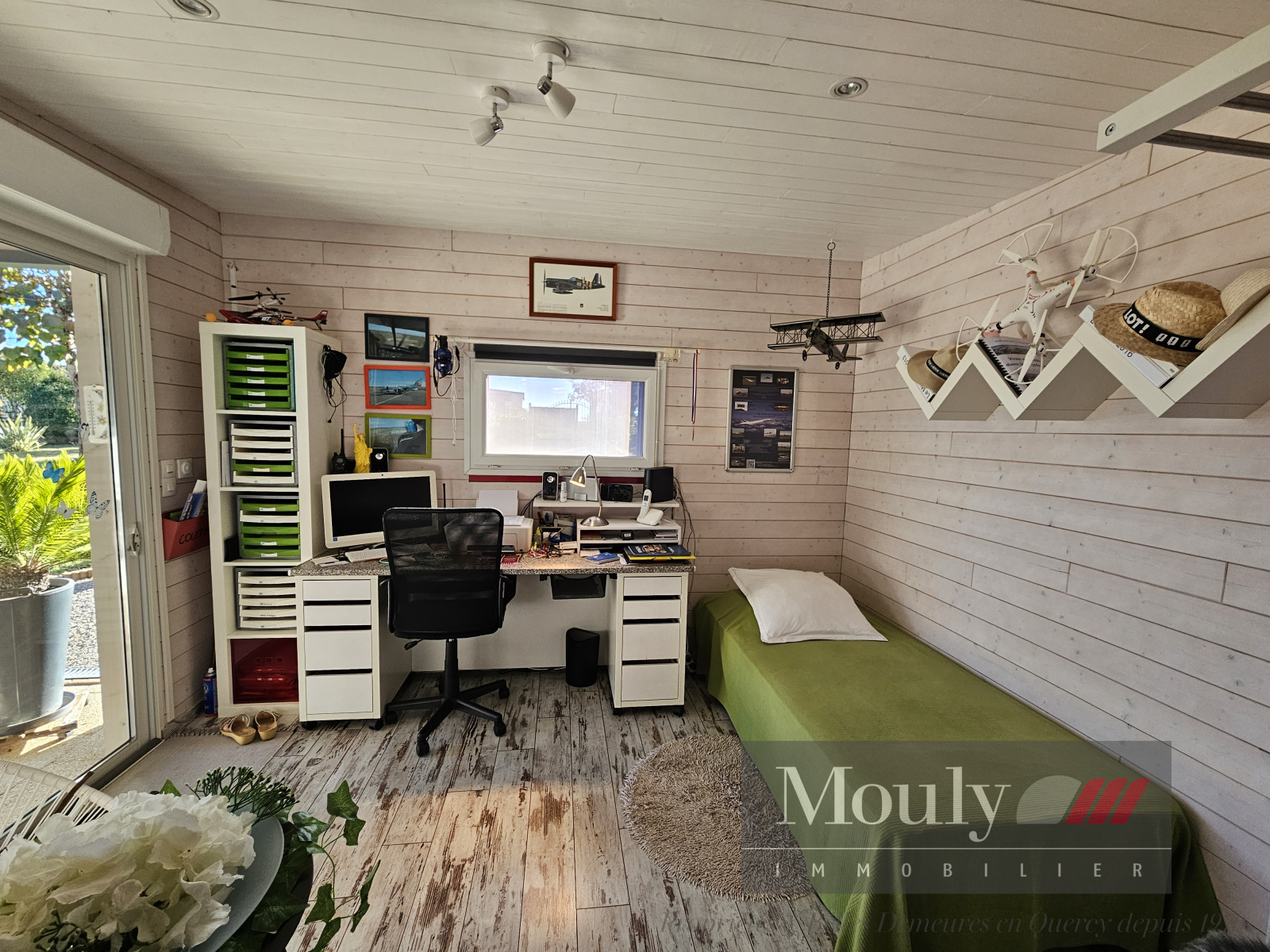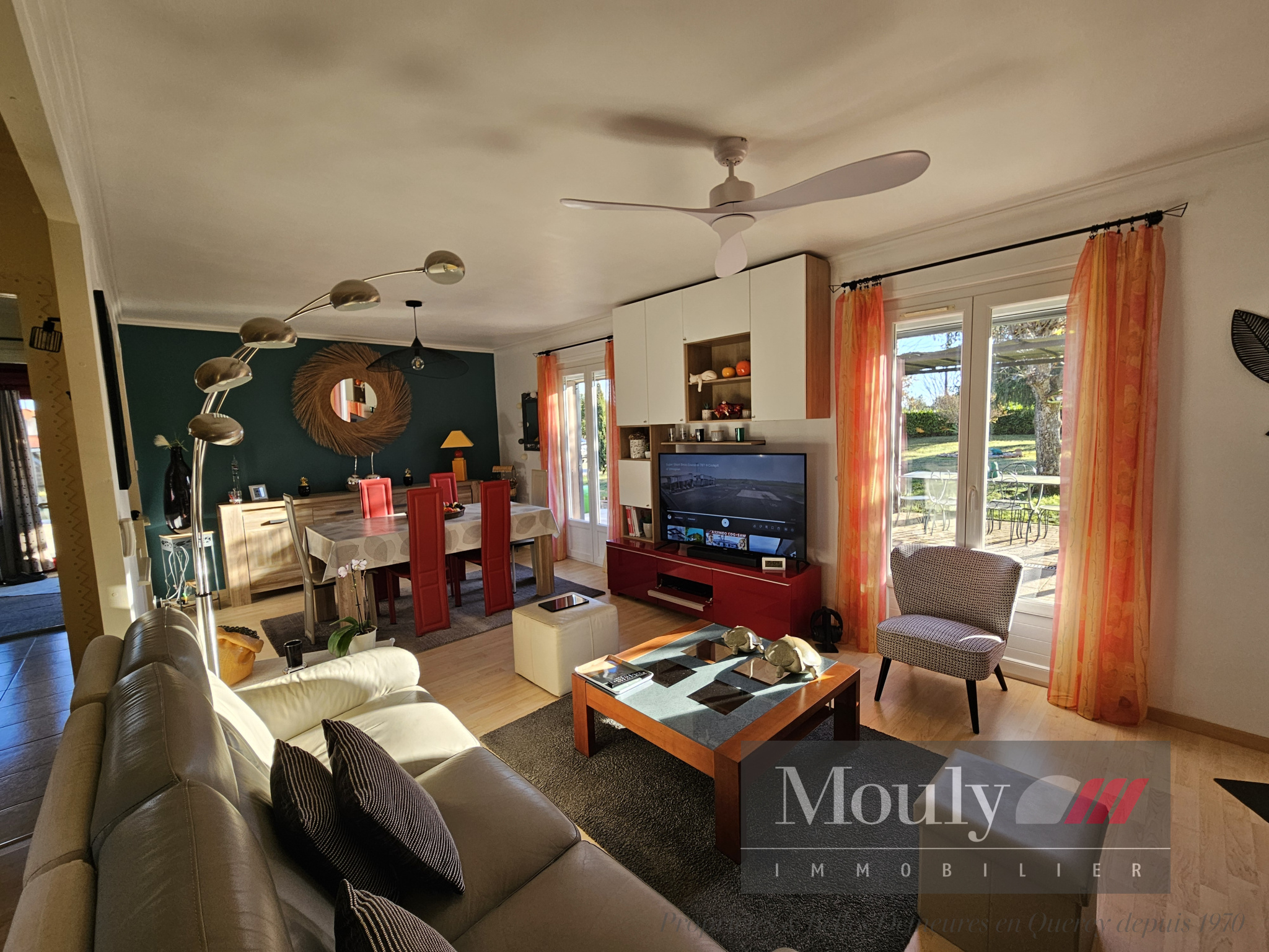 Construction de 1976 bardage bois avec veranda et piscine couverte sur terrain plat entièrement clôturé dans un quartier calme et résidentiel à seulement 10 minutes de Cahors.