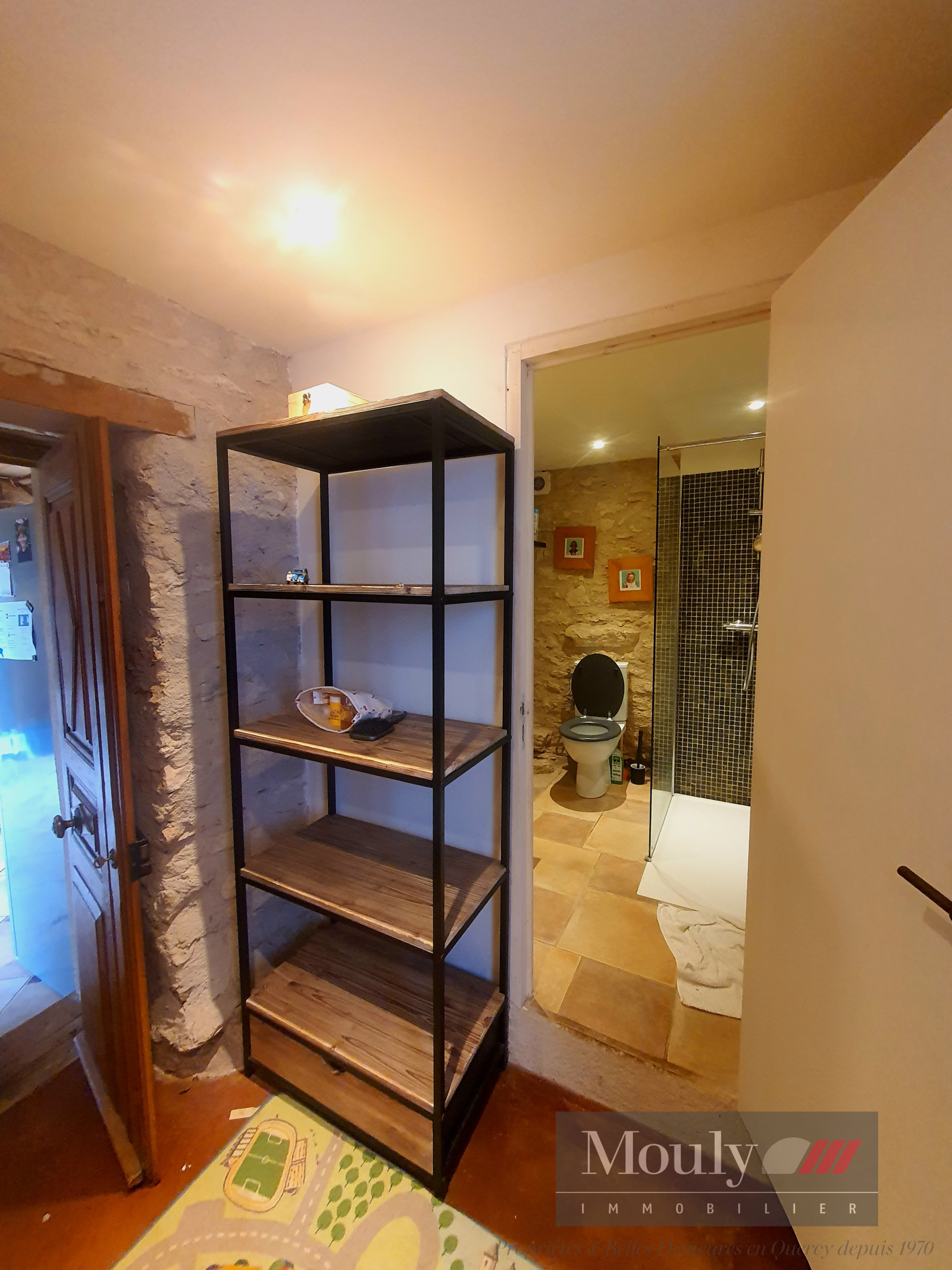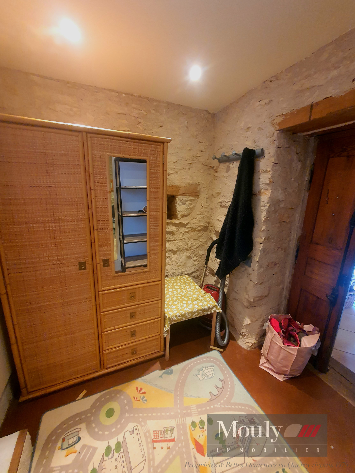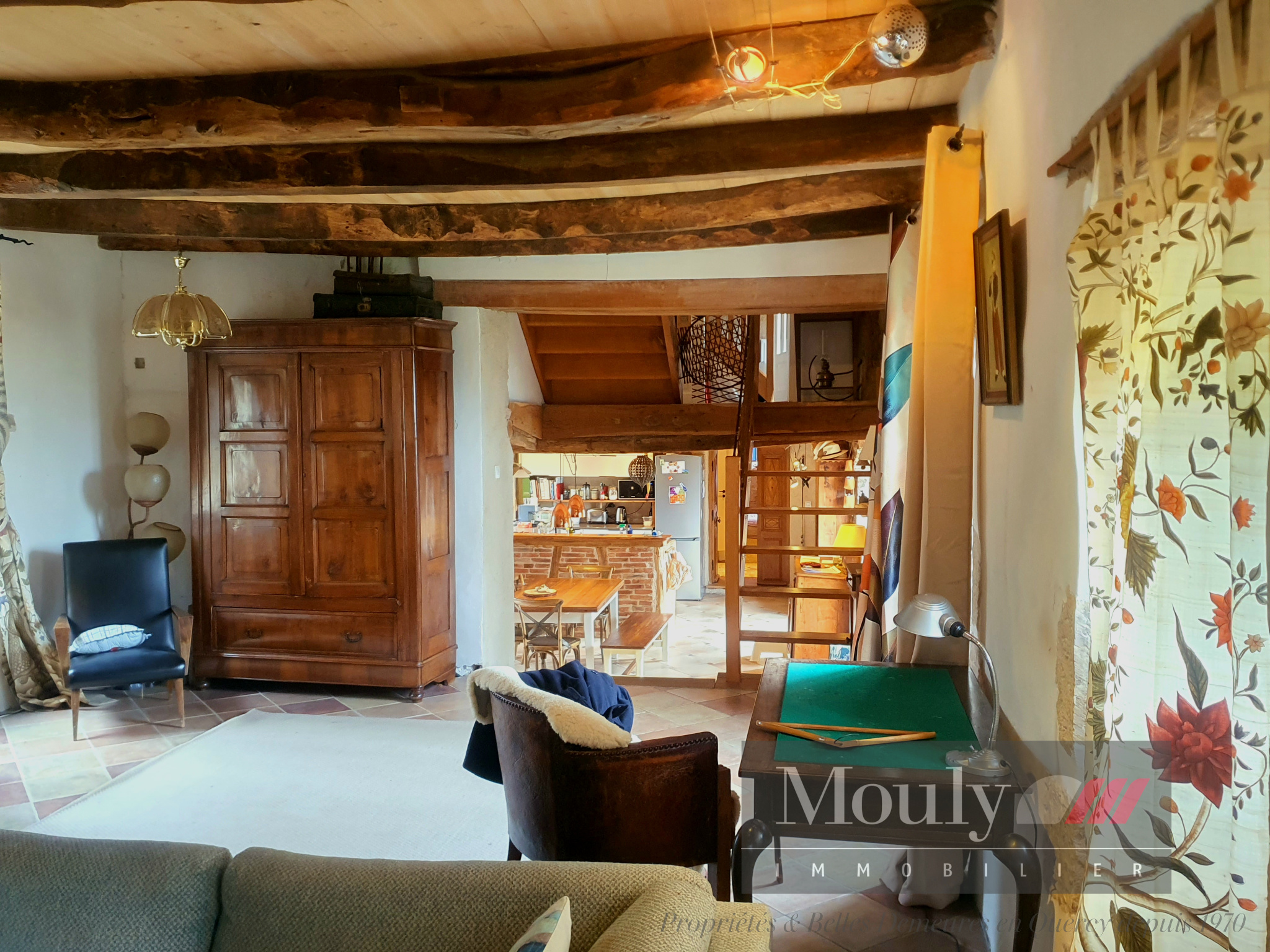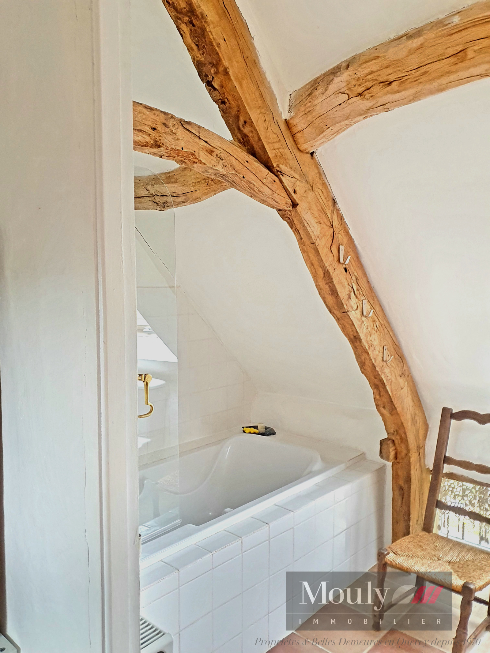 La maison se compose d’un séjour-salon chaleureux avec cheminée, d’une cuisine de plain-pied avec accès direct à une belle terrasse, parfaite pour les repas en extérieur.