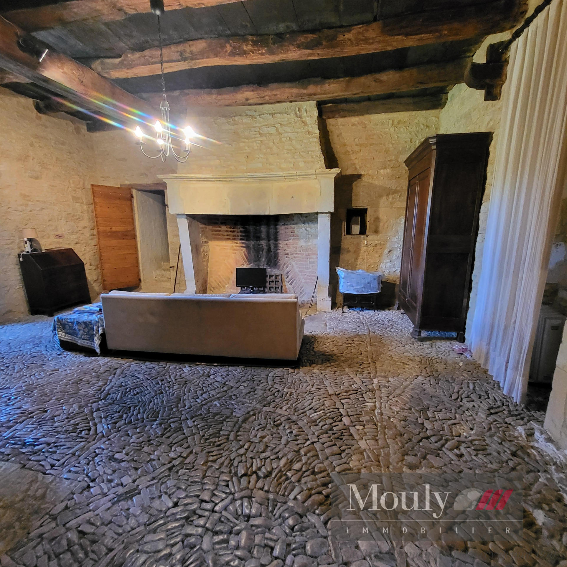 Deux chambres de 35 m² chacune, dotées de très beaux sols en pisé, une hauteur sous plafond de 4 mètres avec de très belles cheminées monumentales.