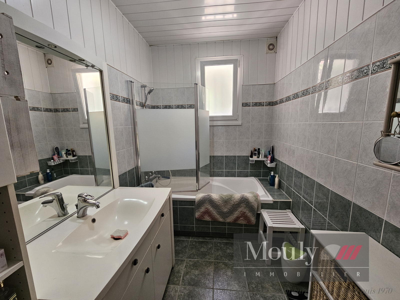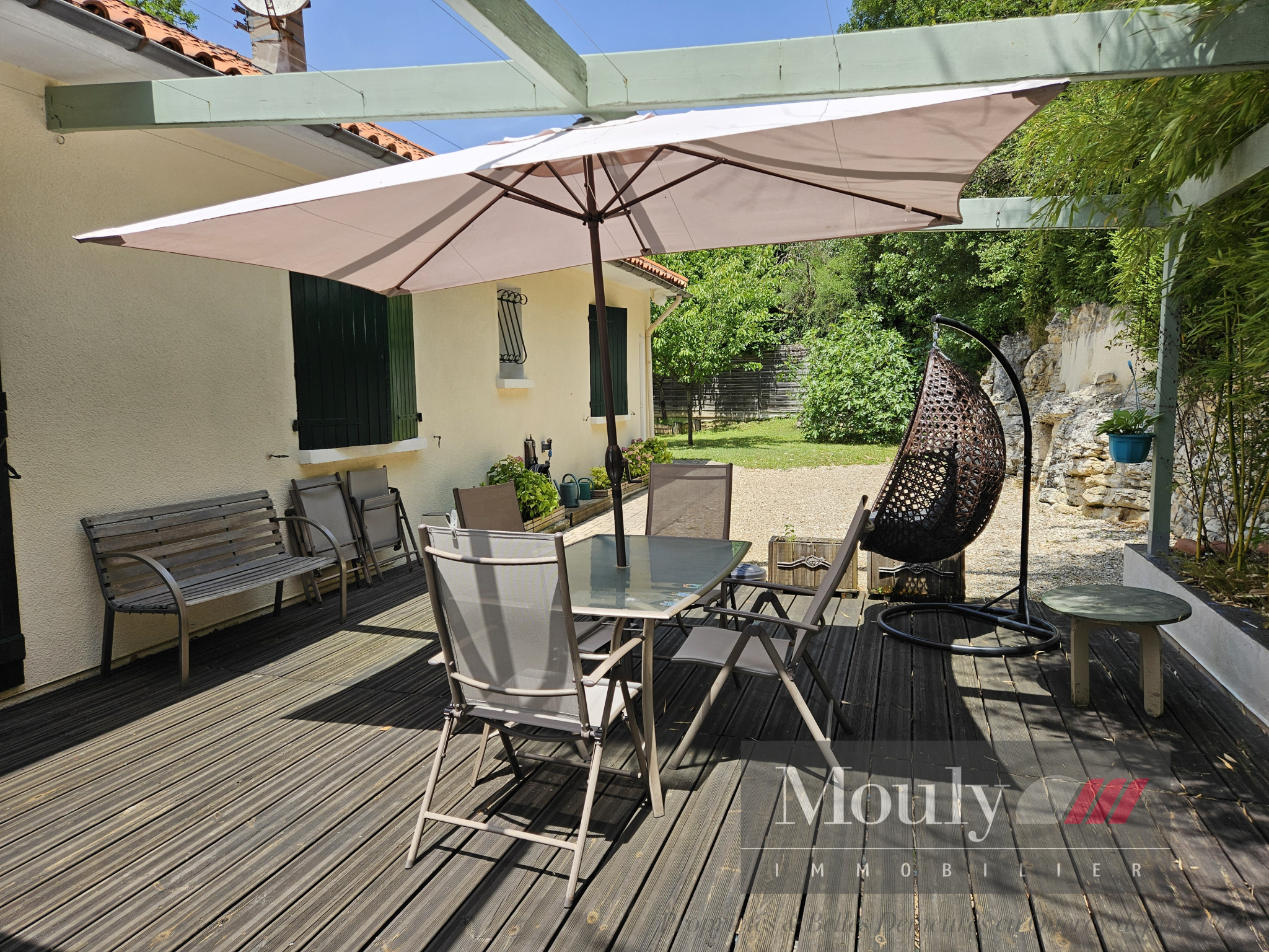 1er étage: cuisine équipée séparée donnant sur une jolie terrasse, salon/salle à manger (50m2 exposé plein ouest) avec poêle à granulés et accès balcon, 2 chambres (dont une climatisée), salle de bains, wc.