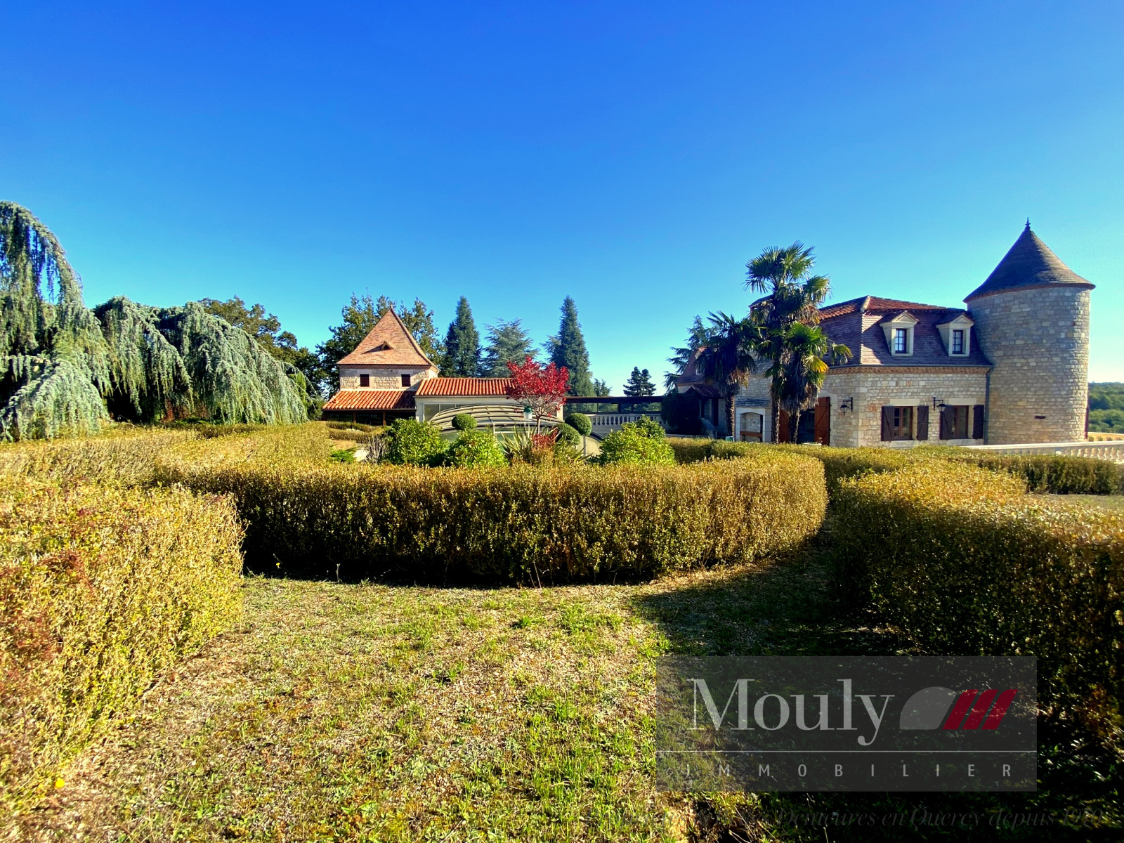 Profitez des 17 hect de terrain avec des essences d'arbres variées (Ginko Biloba, labyrinthe de buis).